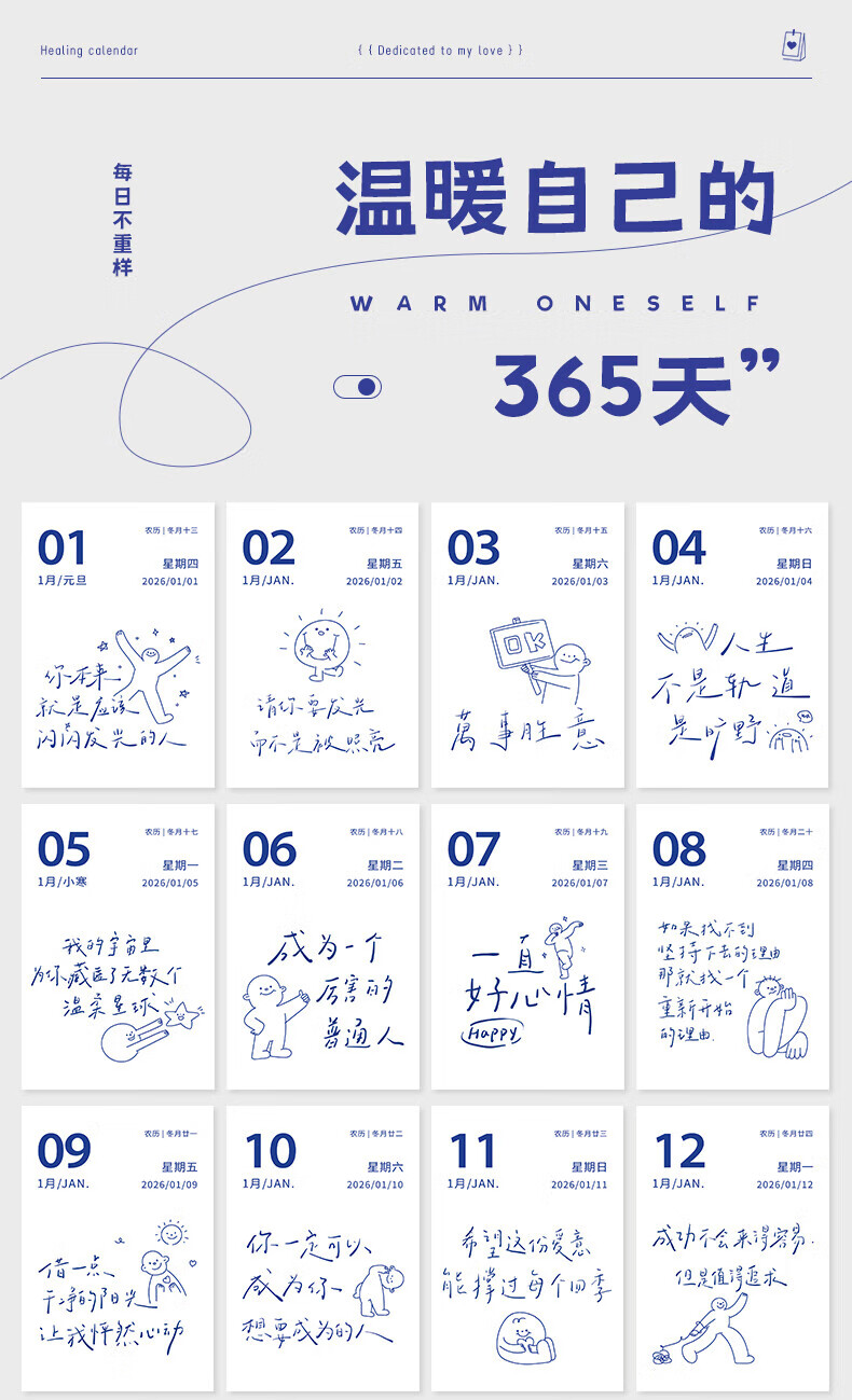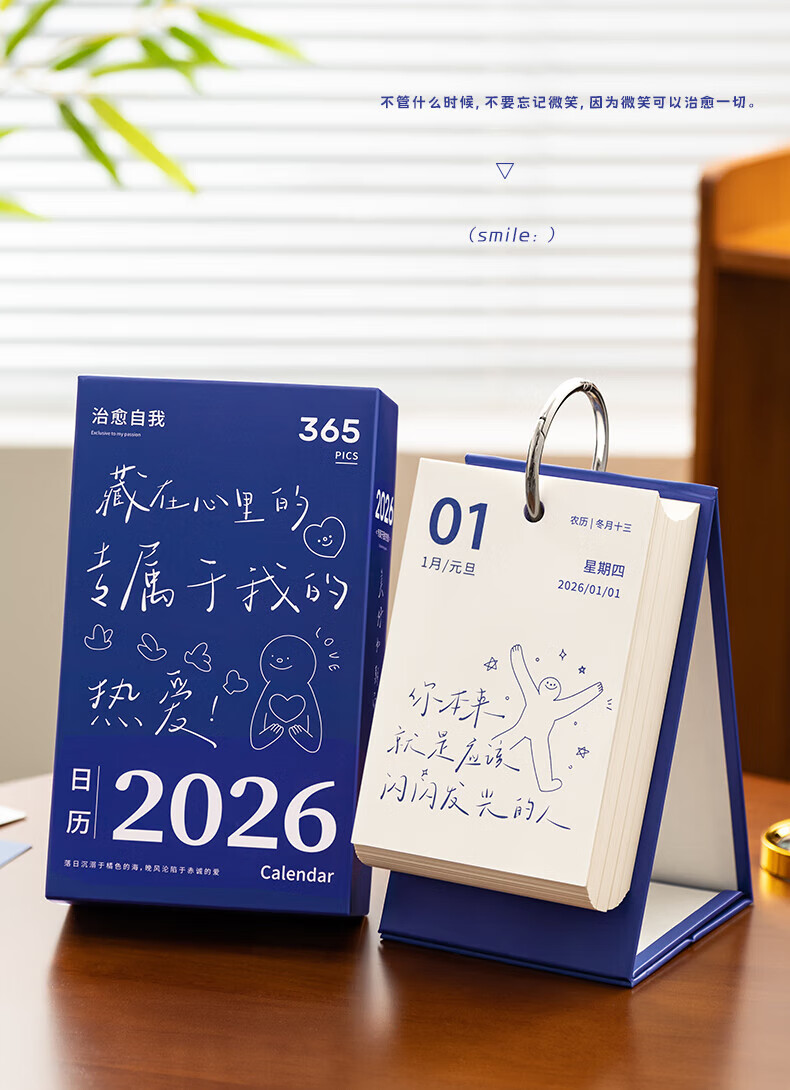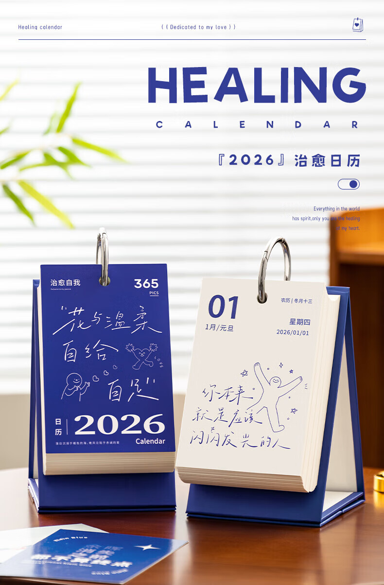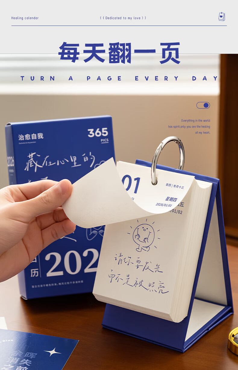 AILUKI日本暖心治愈系日历365天24桌面创意摆件每天一页解压台历定制插画手绘手撕年历趣味打工人自律记 2026年每日治愈日历(礼盒款)
