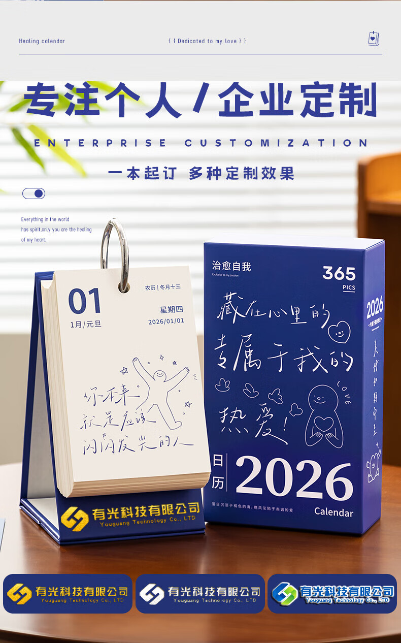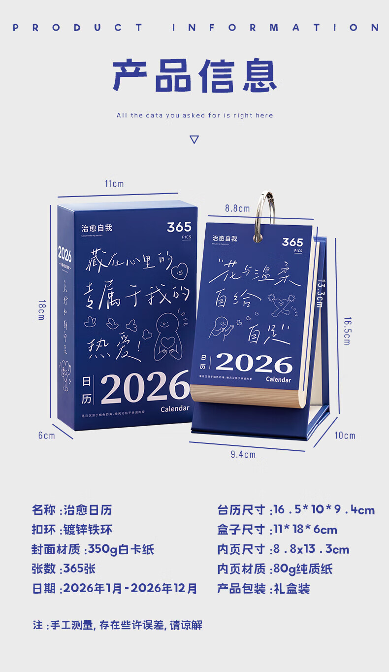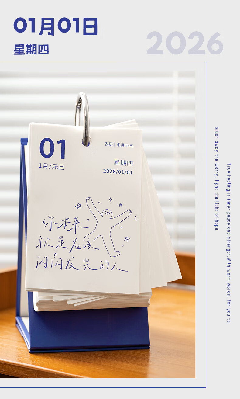 AILUKI日本暖心治愈系日历365天24桌面创意摆件每天一页解压台历定制插画手绘手撕年历趣味打工人自律记 2026年每日治愈日历(礼盒款)
