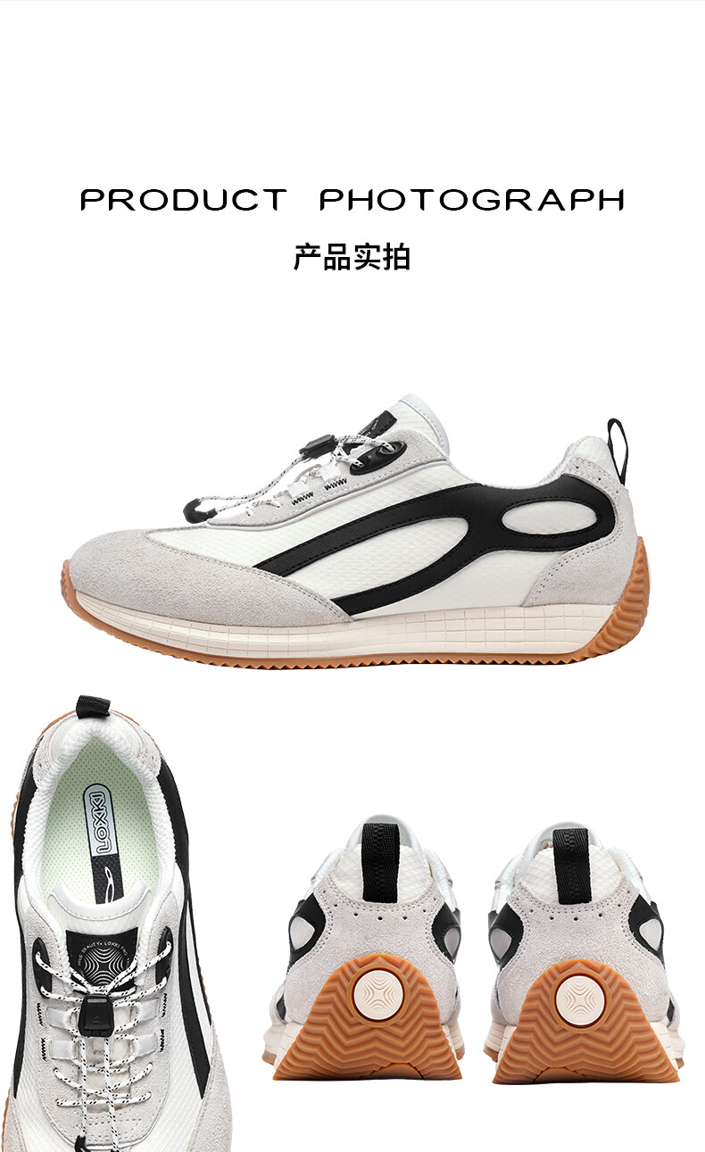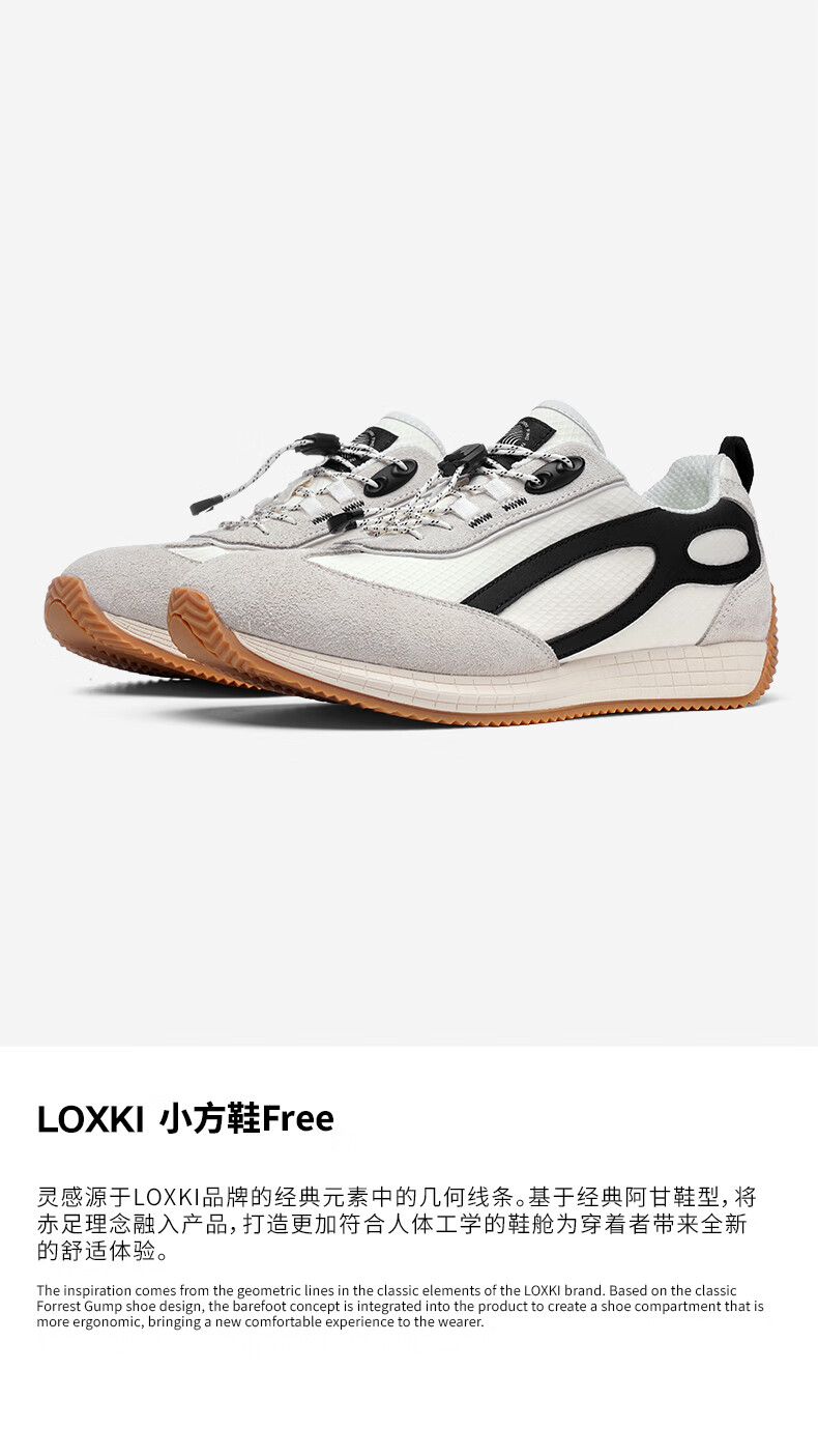 LOXKI/洛克斯基休闲男鞋25年秋冬新品厚底增高复古阿甘鞋宽头鞋 小方鞋 白黑 40