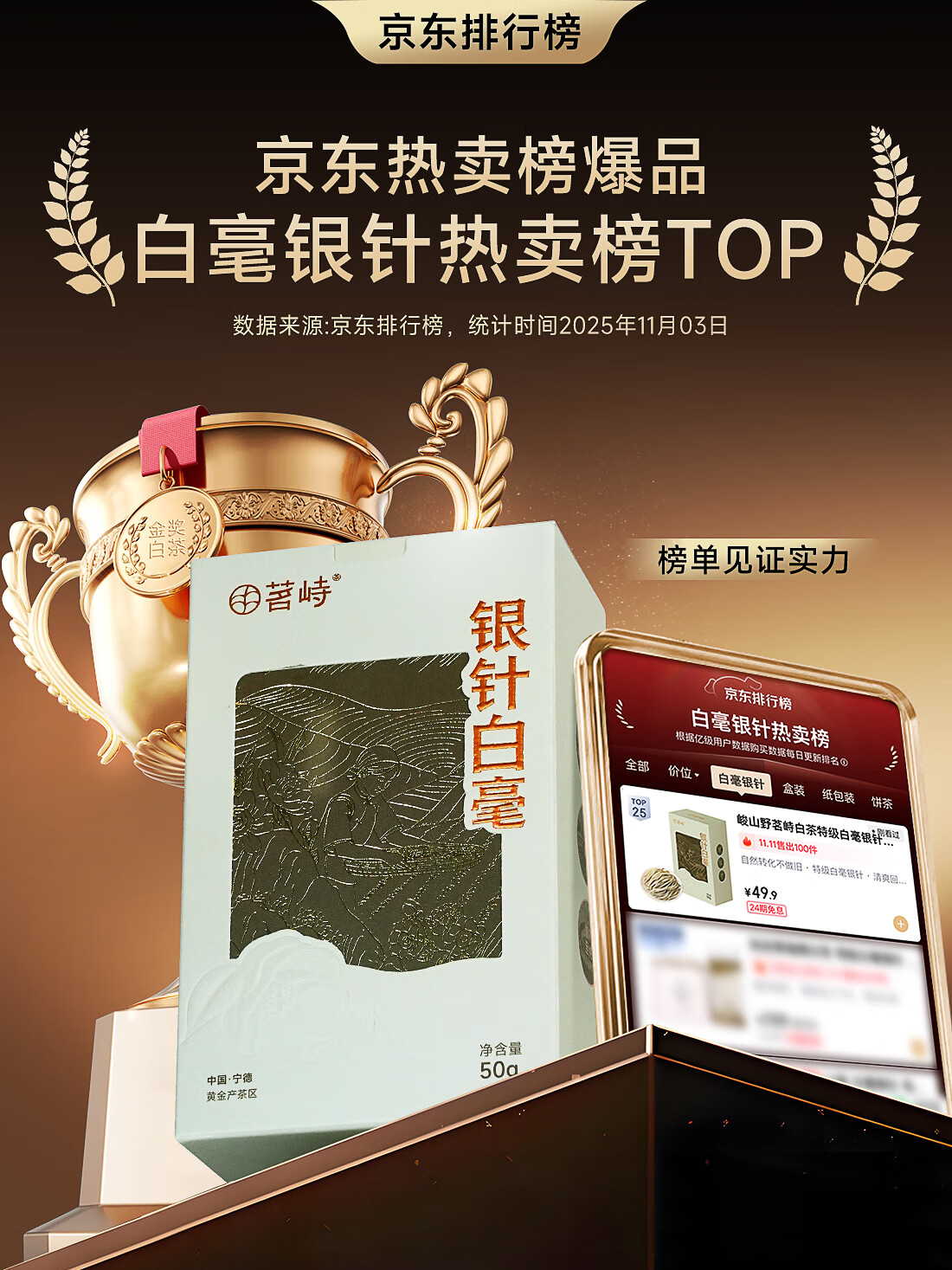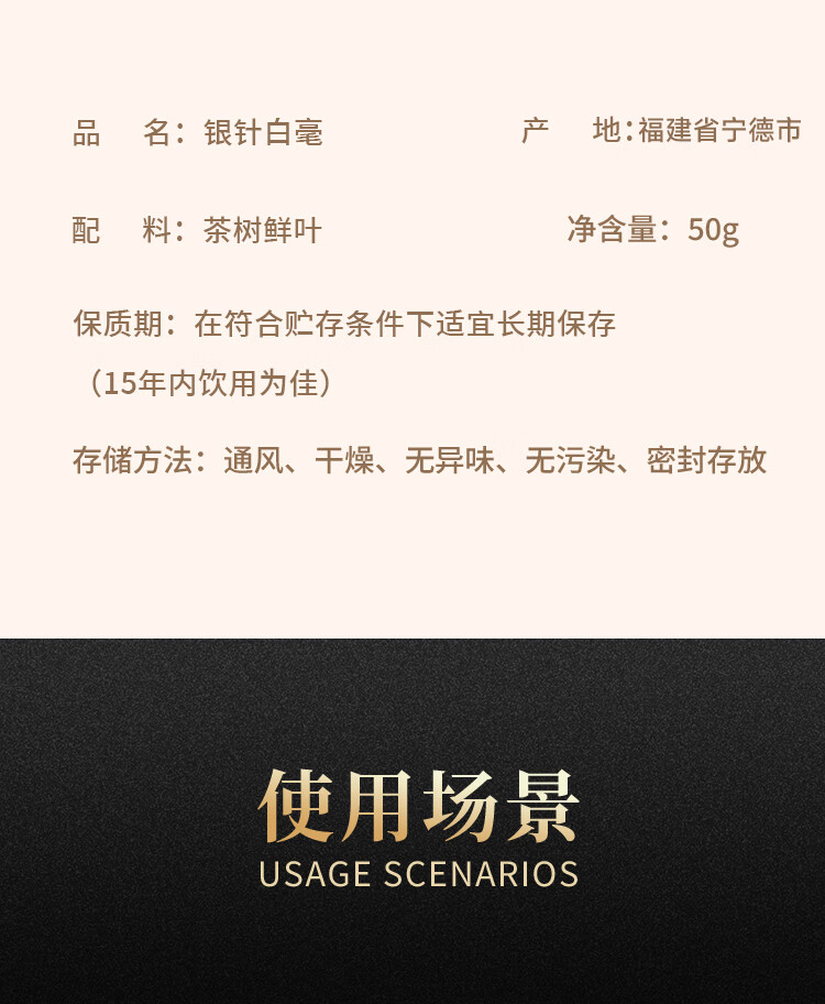 峻山野茗峙白茶特级白毫银针散装50g茶叶品鉴正宗自己喝古树便携送礼盒 白毫银针50g