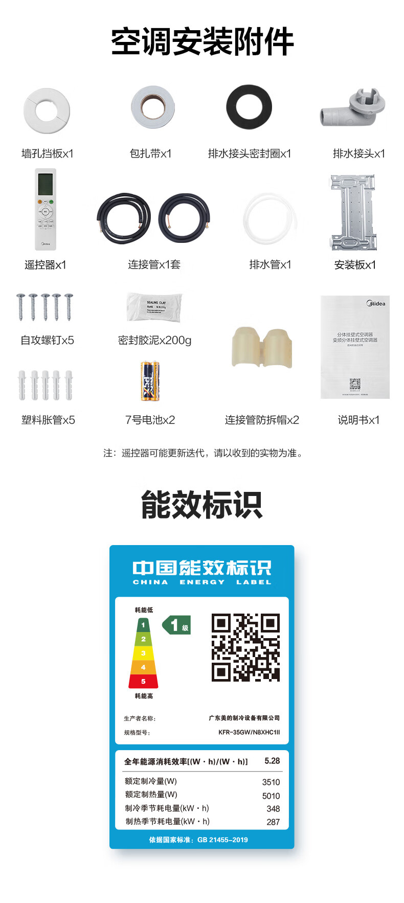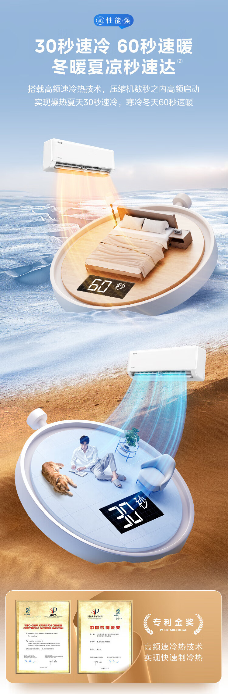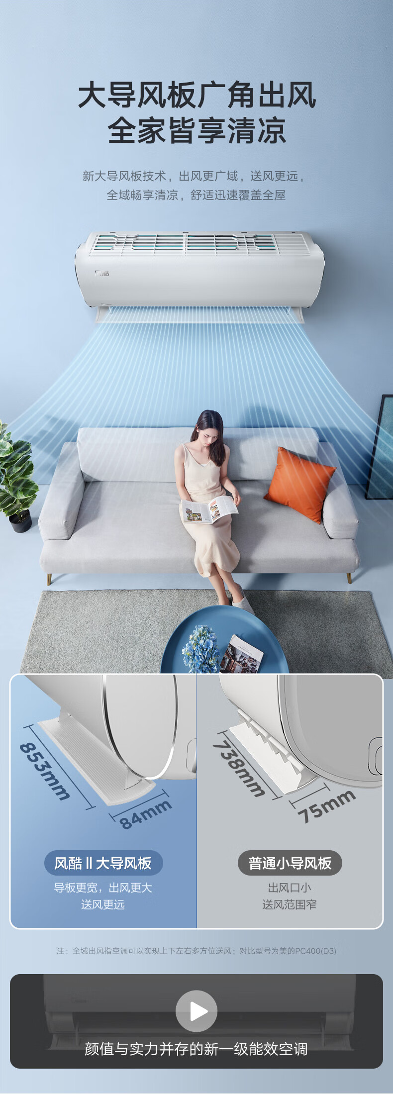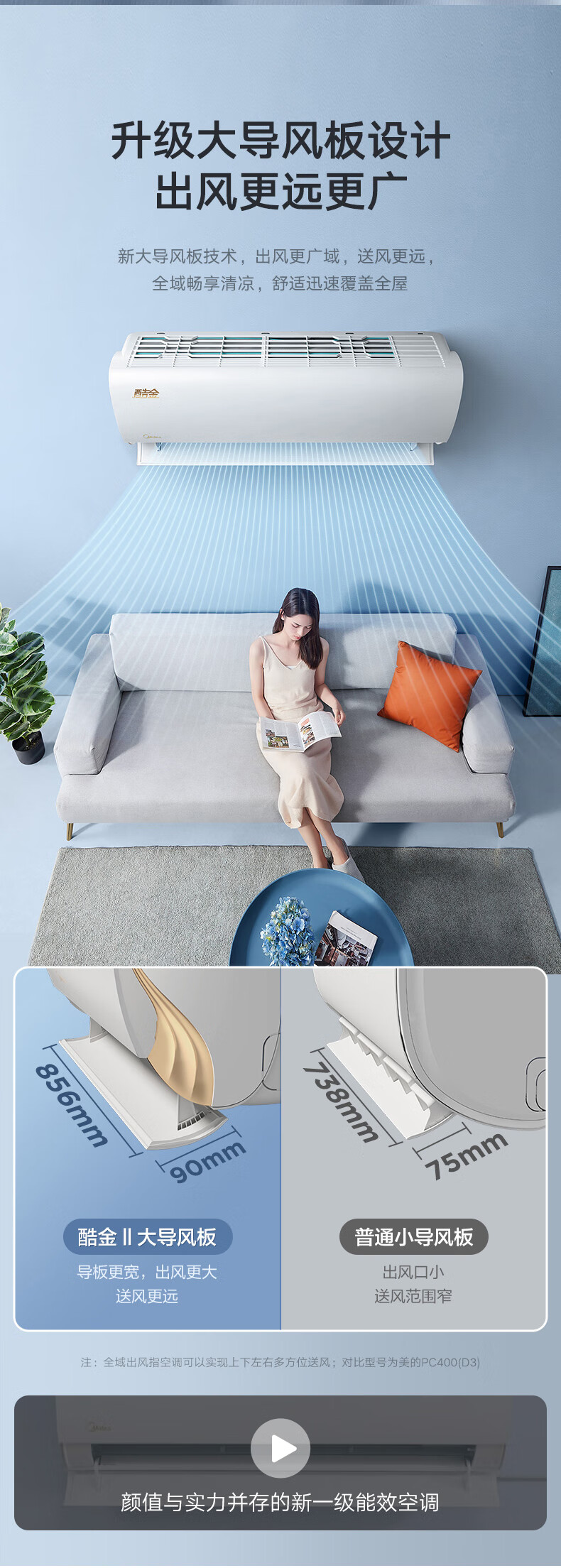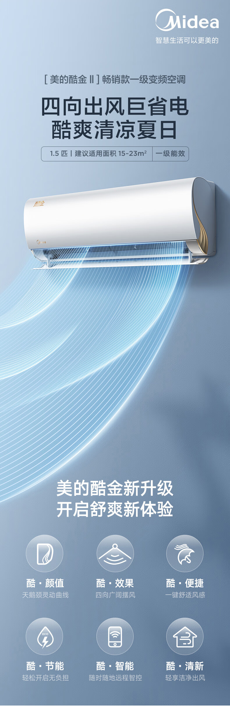 美的(Midea)空调挂机1.5匹挂机 新一级能效变频冷暖卧室壁挂式家用大风口 国家补贴20%智能家电以旧换新 大1.5匹 一级能效 35XA1P 【制冷王】