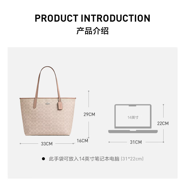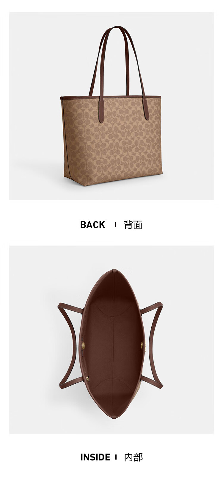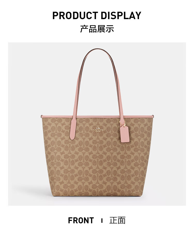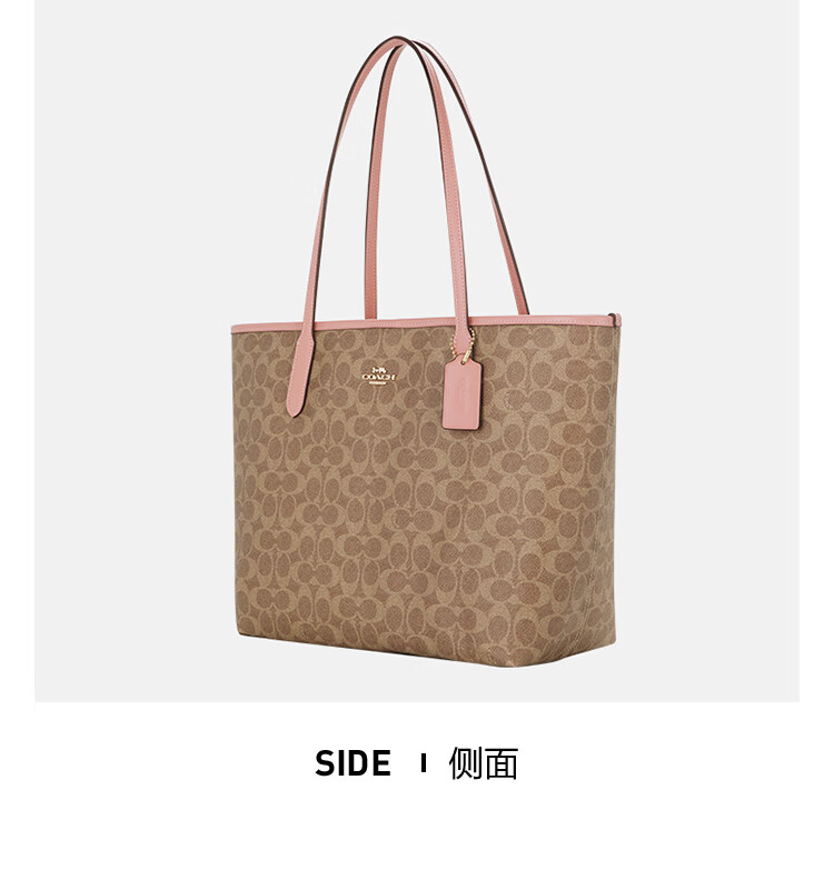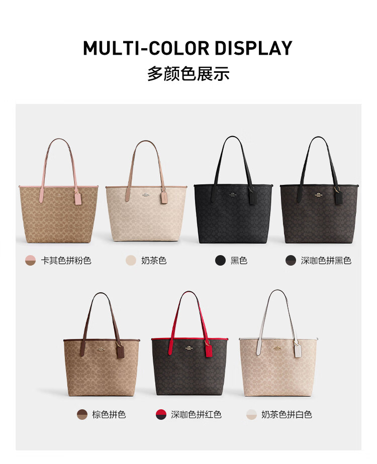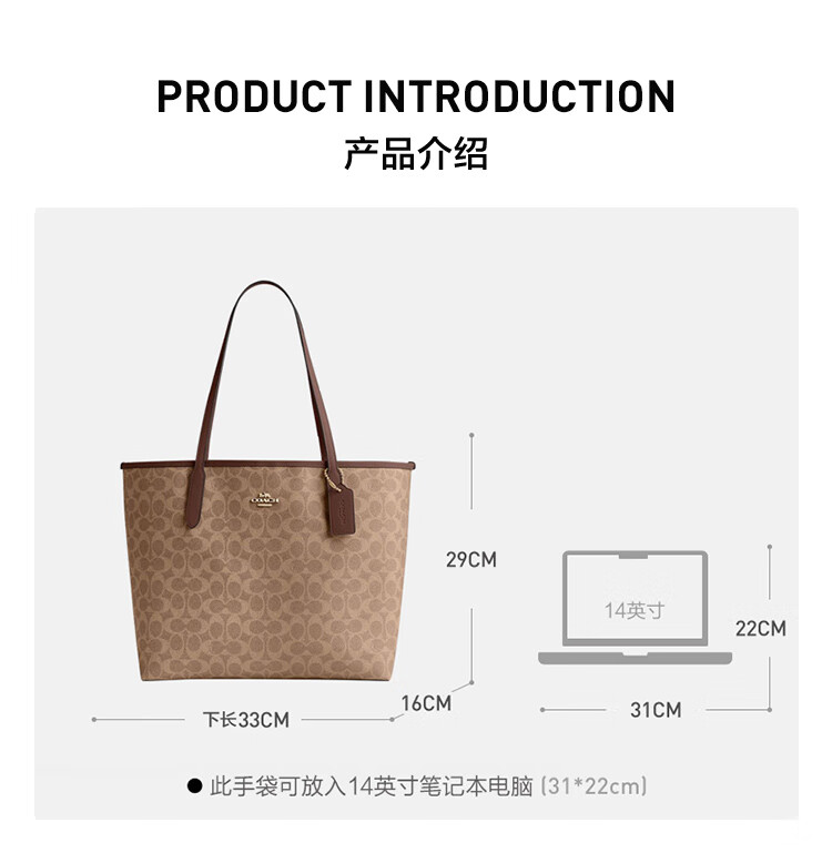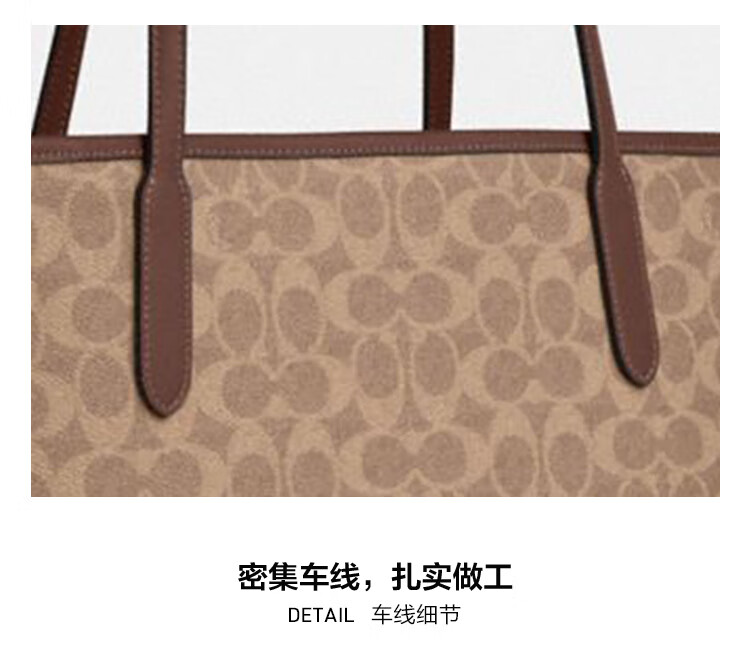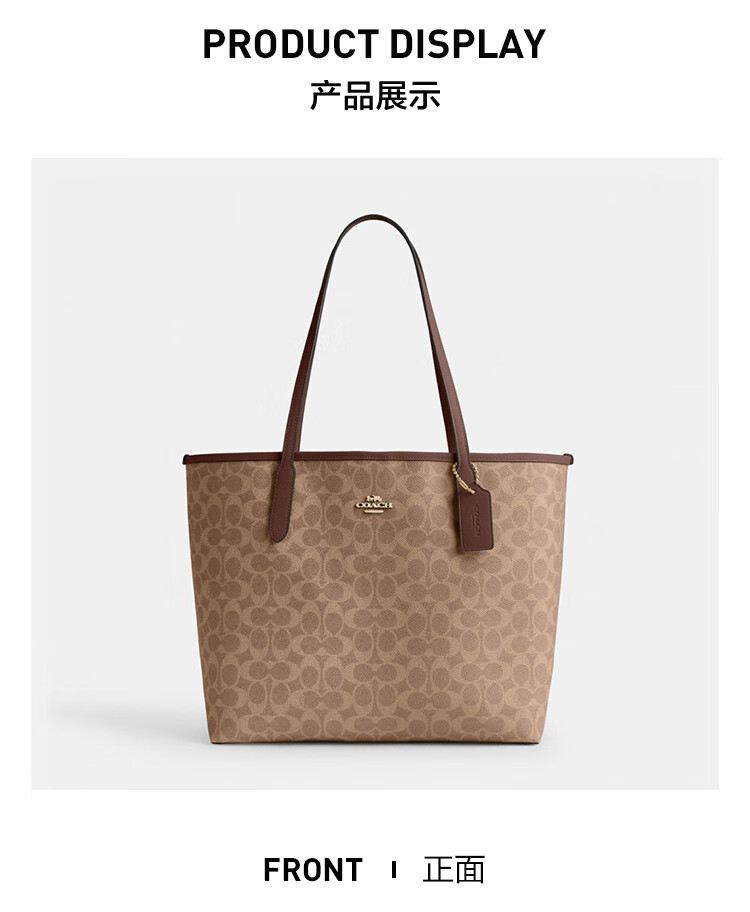 蔻驰(COACH)【品牌直供】女士CITY33经典标志大号托特包单肩包棕色拼色CV976