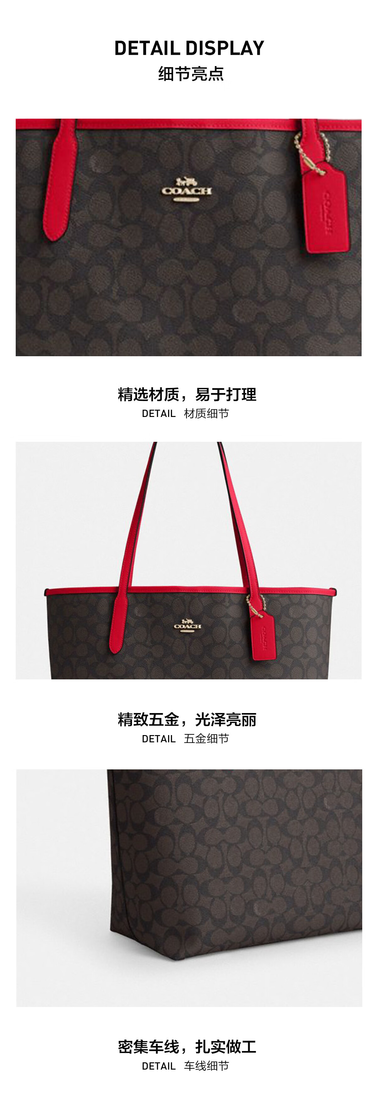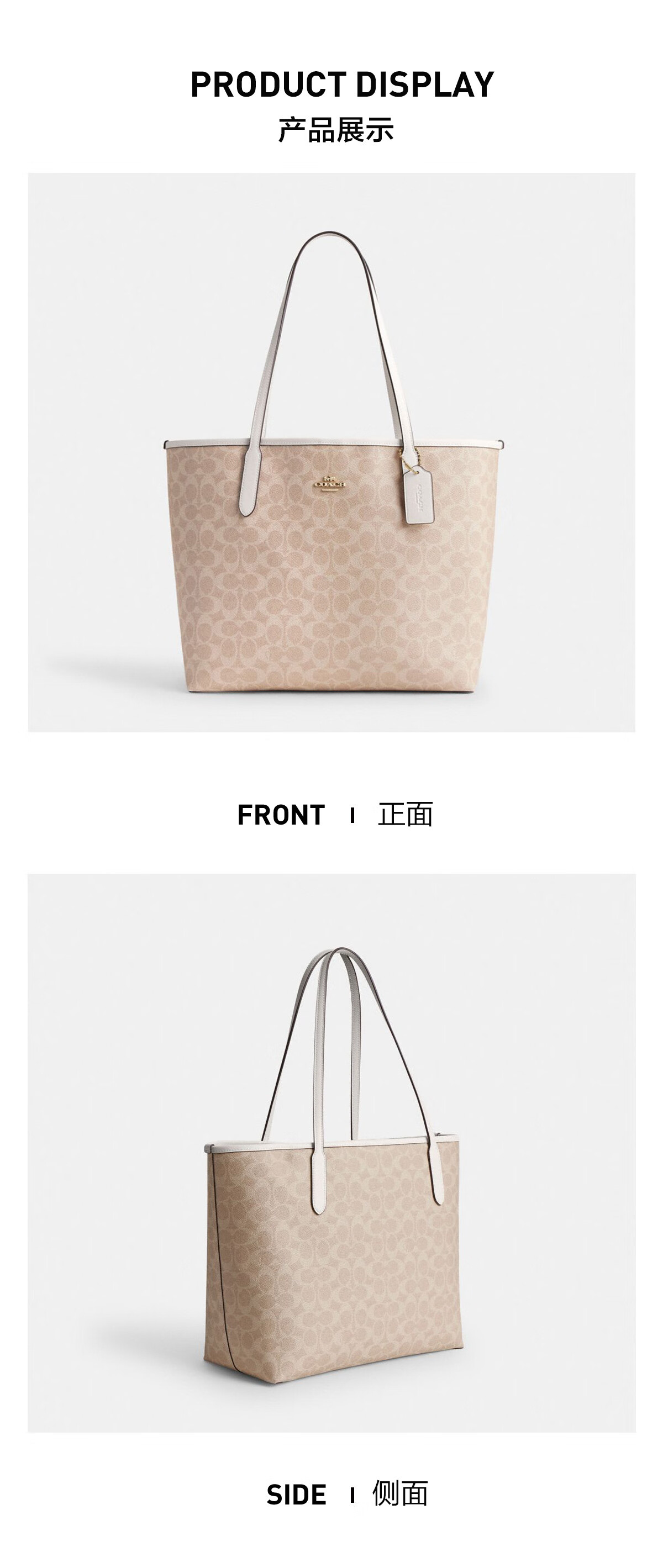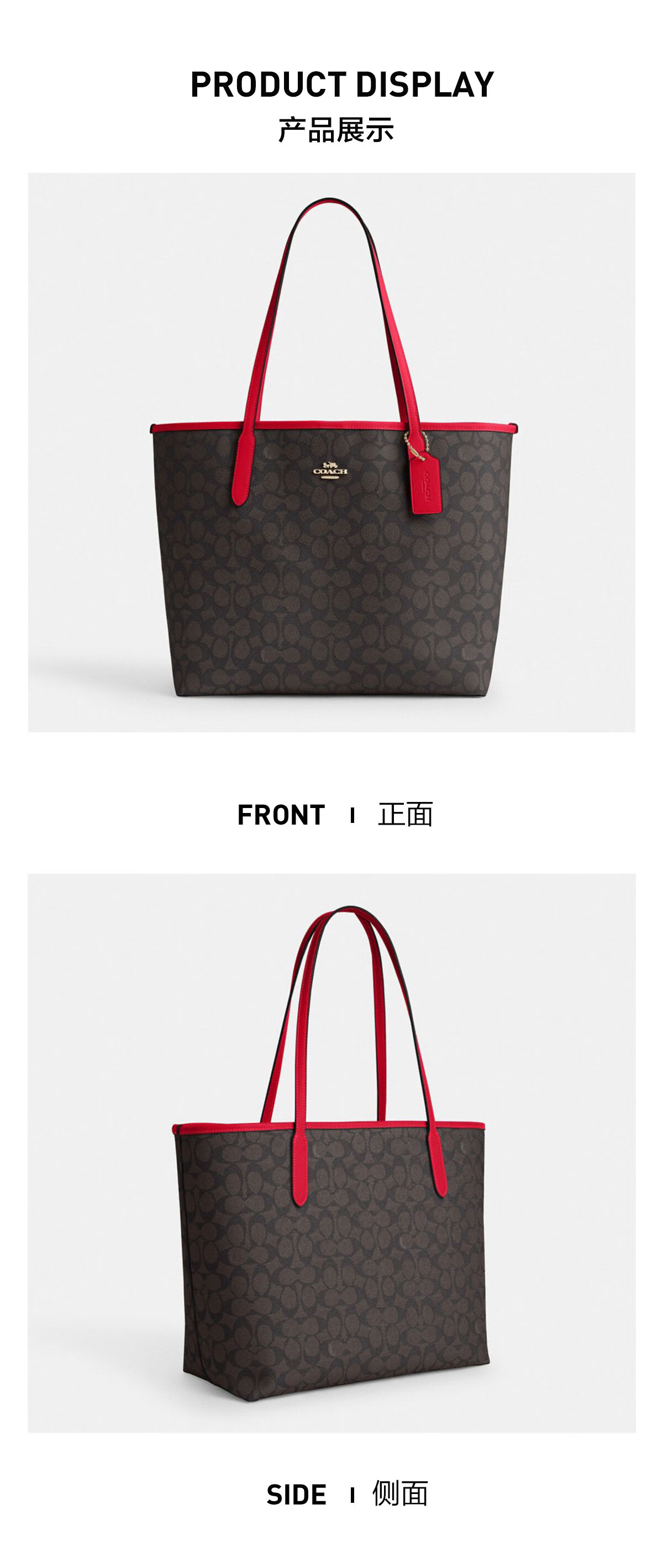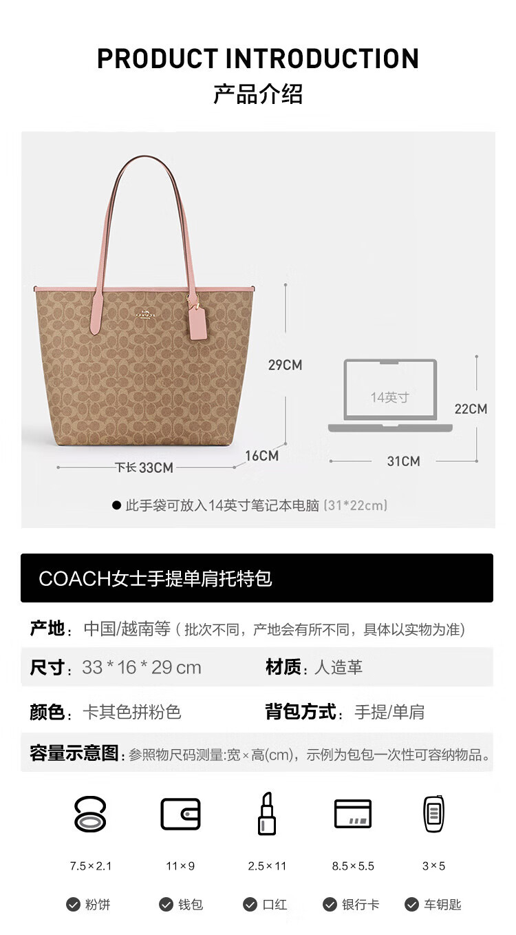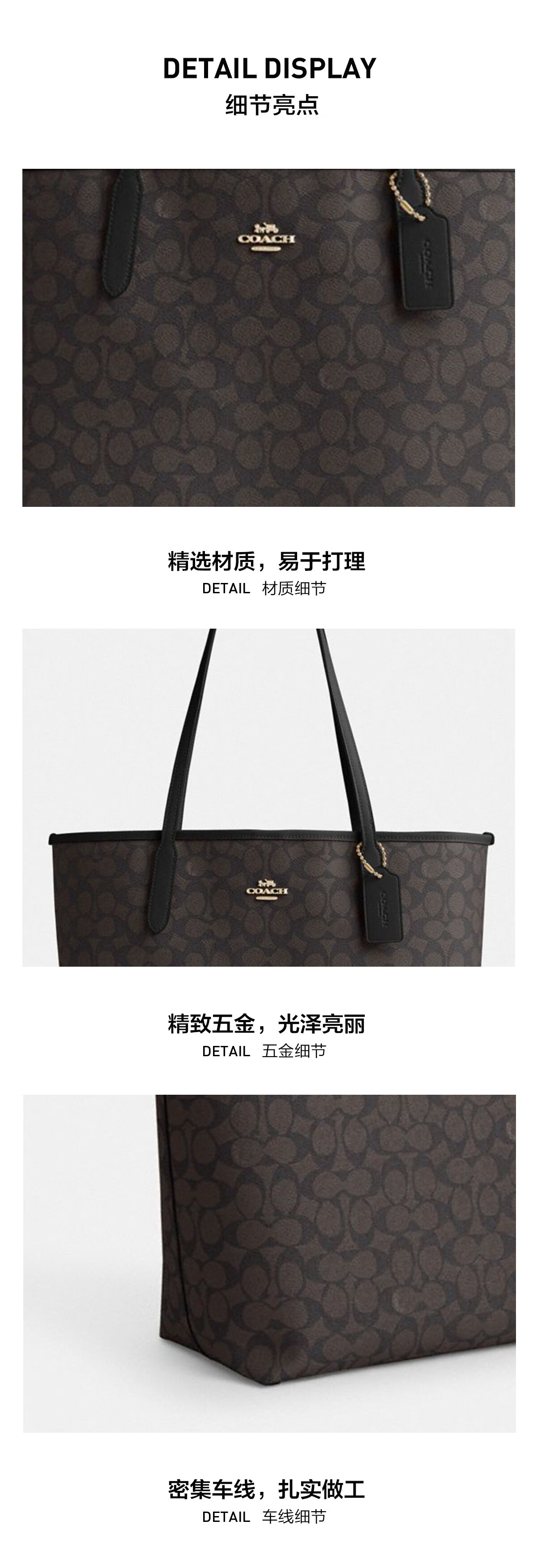 蔻驰(COACH)【品牌直供】女士CITY33经典标志大号托特包单肩包棕色拼色CV976