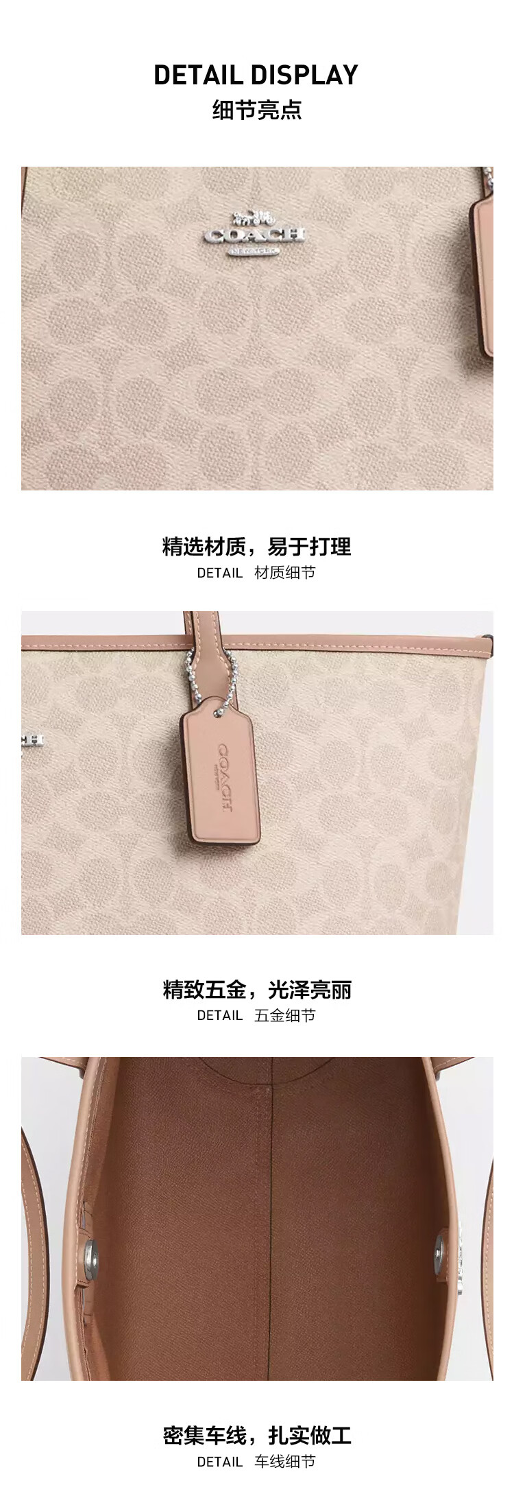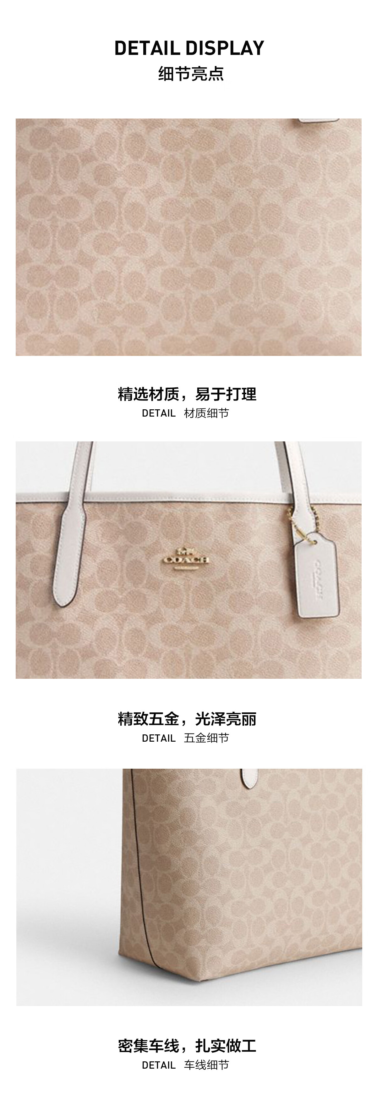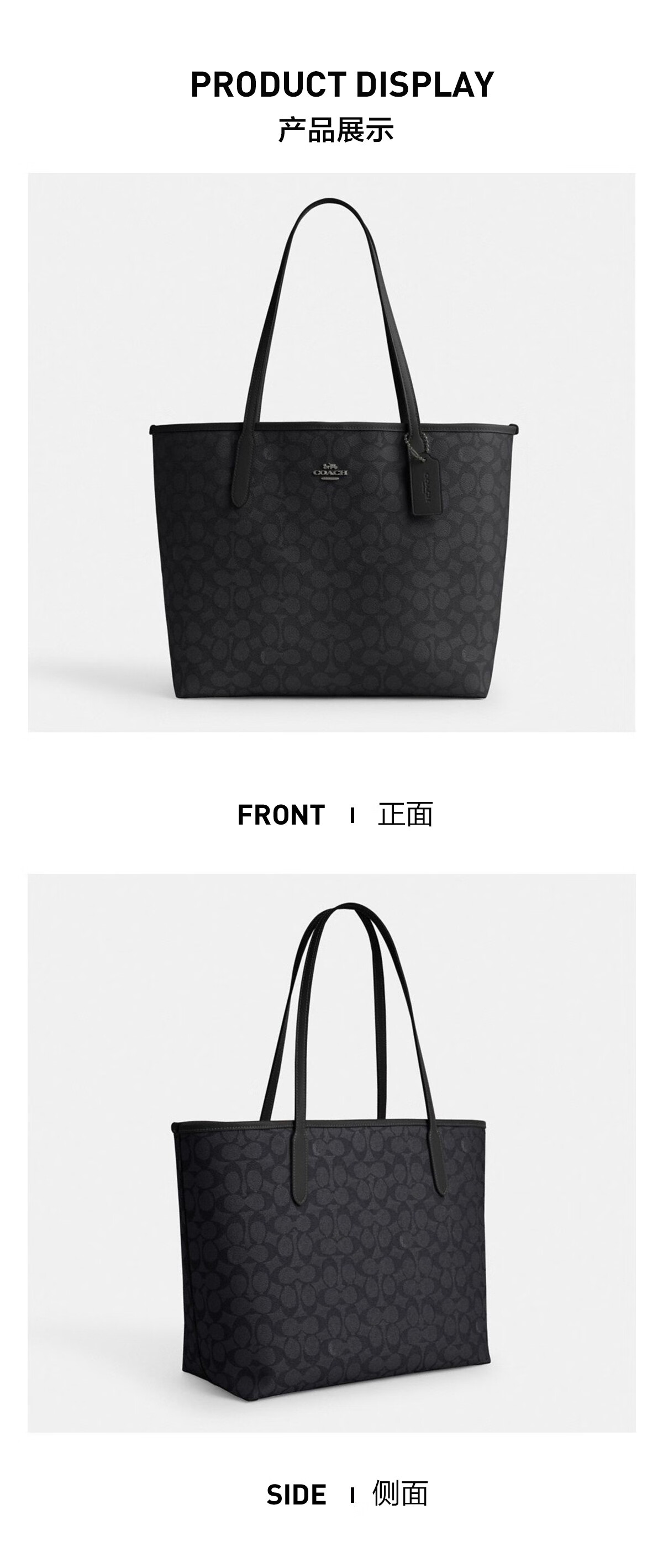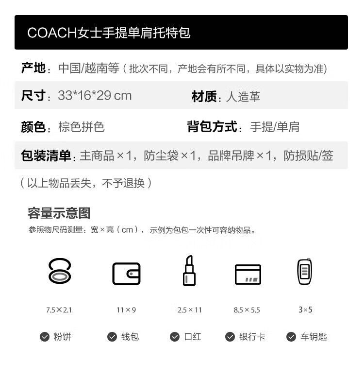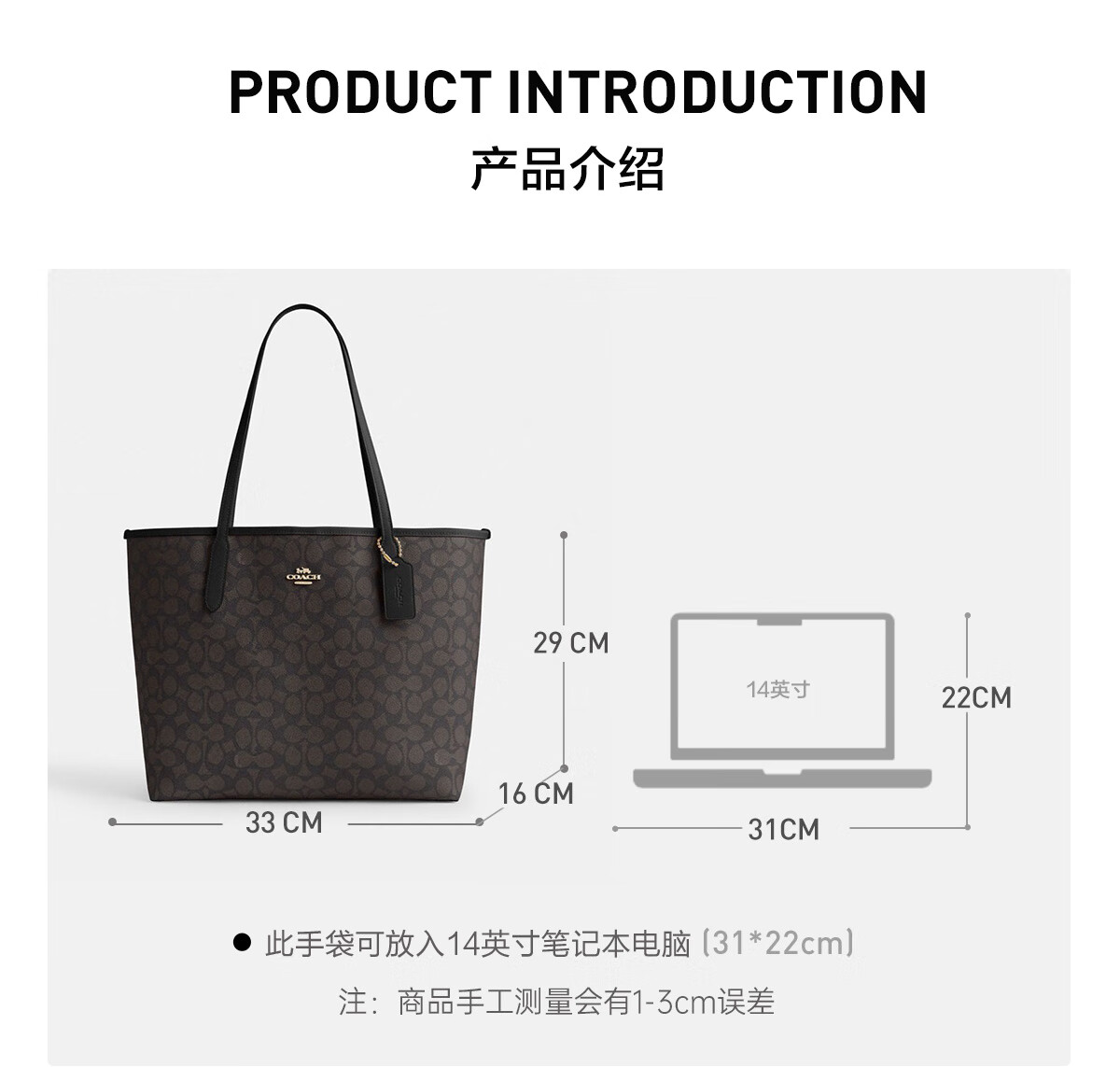 蔻驰(COACH)【品牌直供】女士CITY33经典标志大号托特包单肩包棕色拼色CV976
