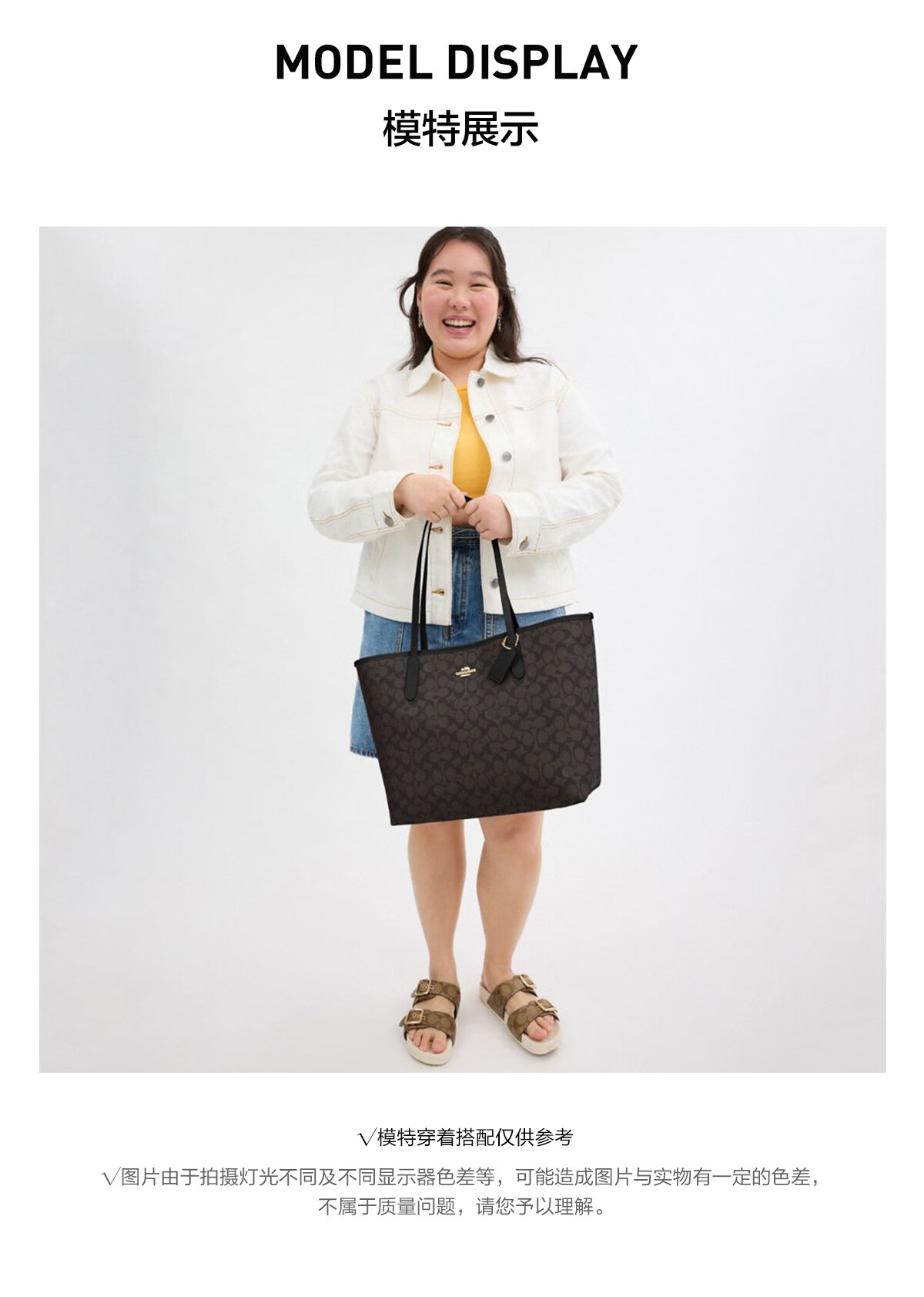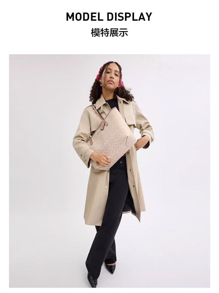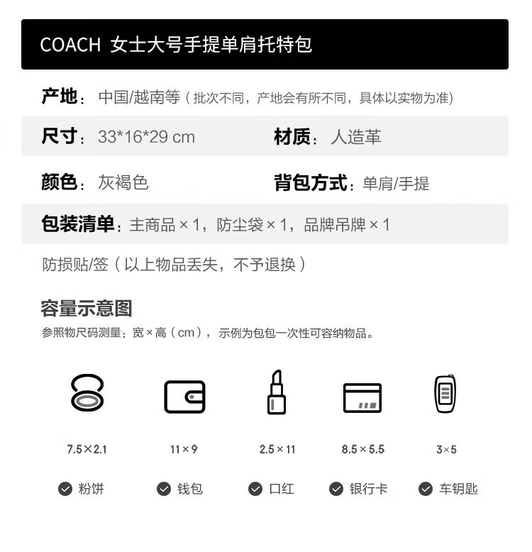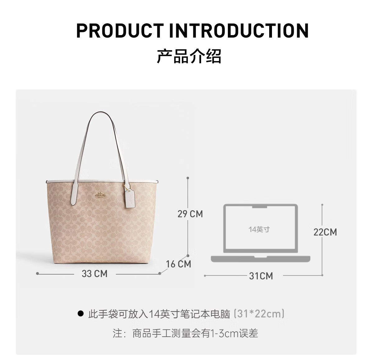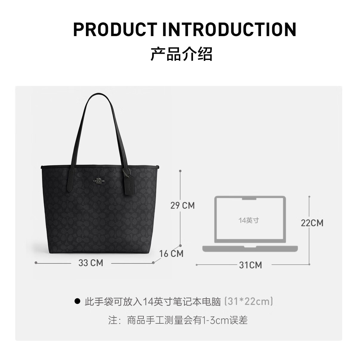 蔻驰(COACH)【品牌直供】女士CITY33经典标志大号托特包单肩包棕色拼色CV976