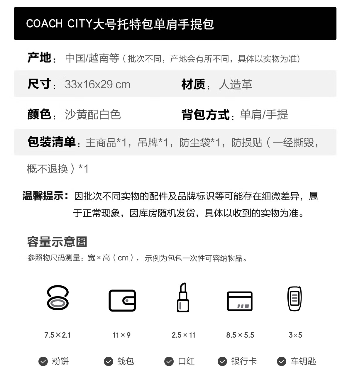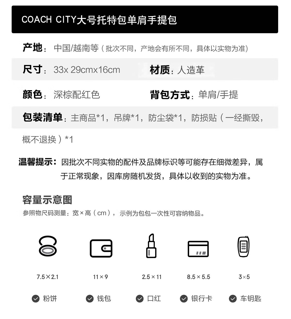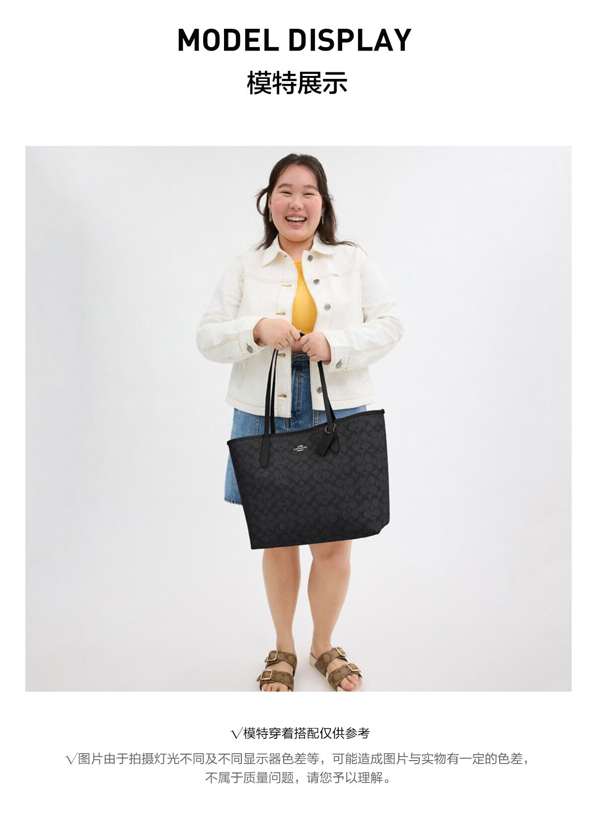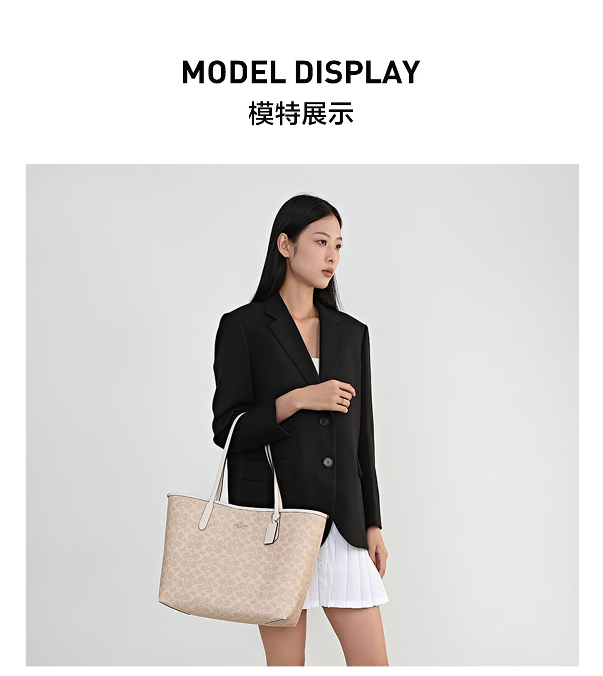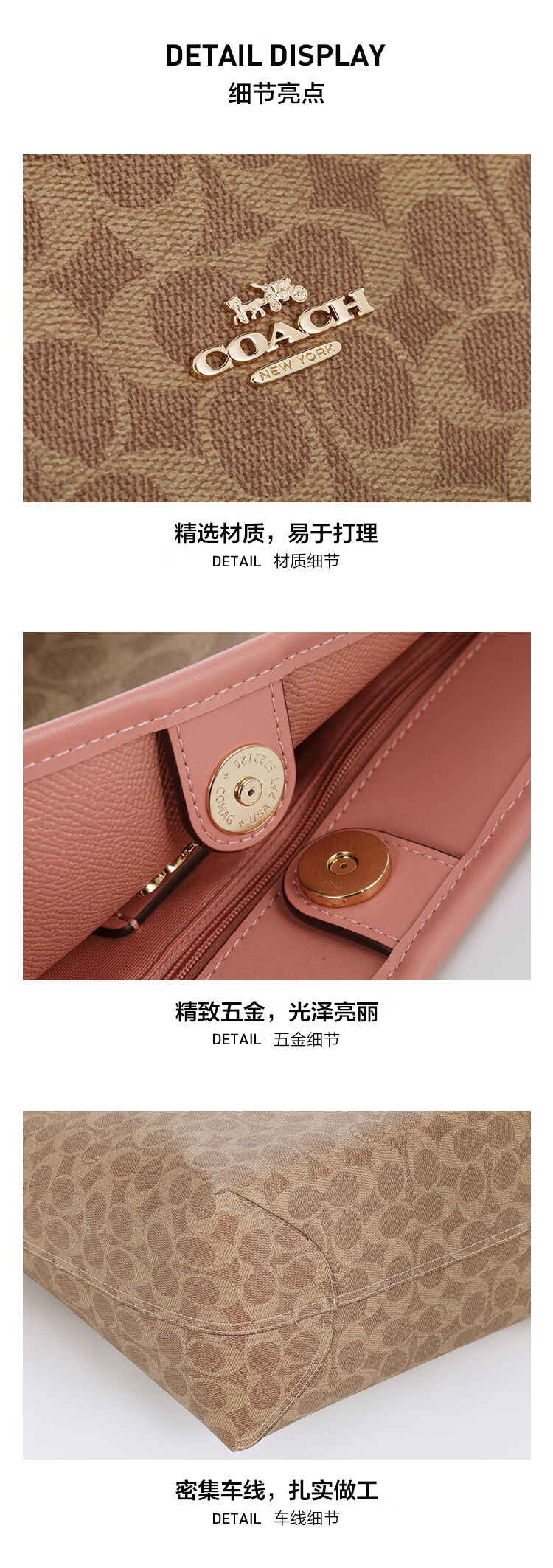 蔻驰(COACH)【品牌直供】女士CITY33经典标志大号托特包单肩包棕色拼色CV976
