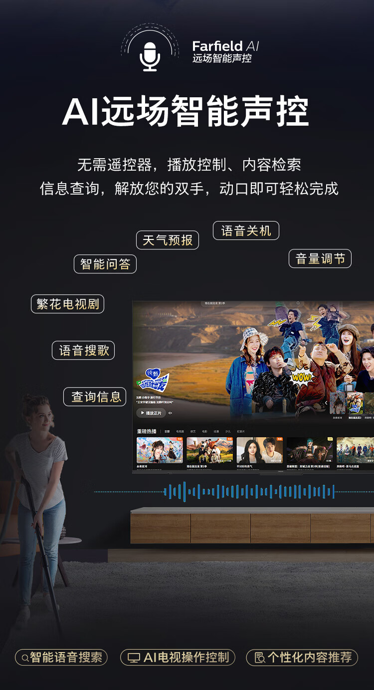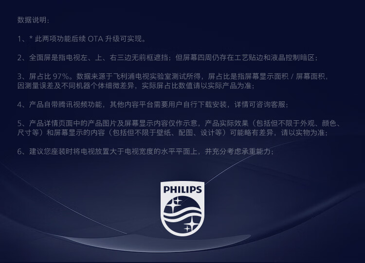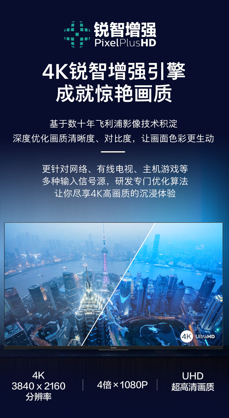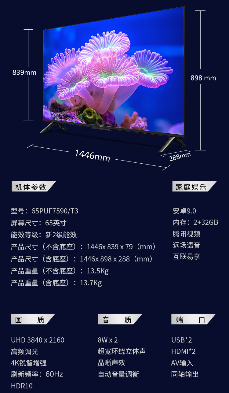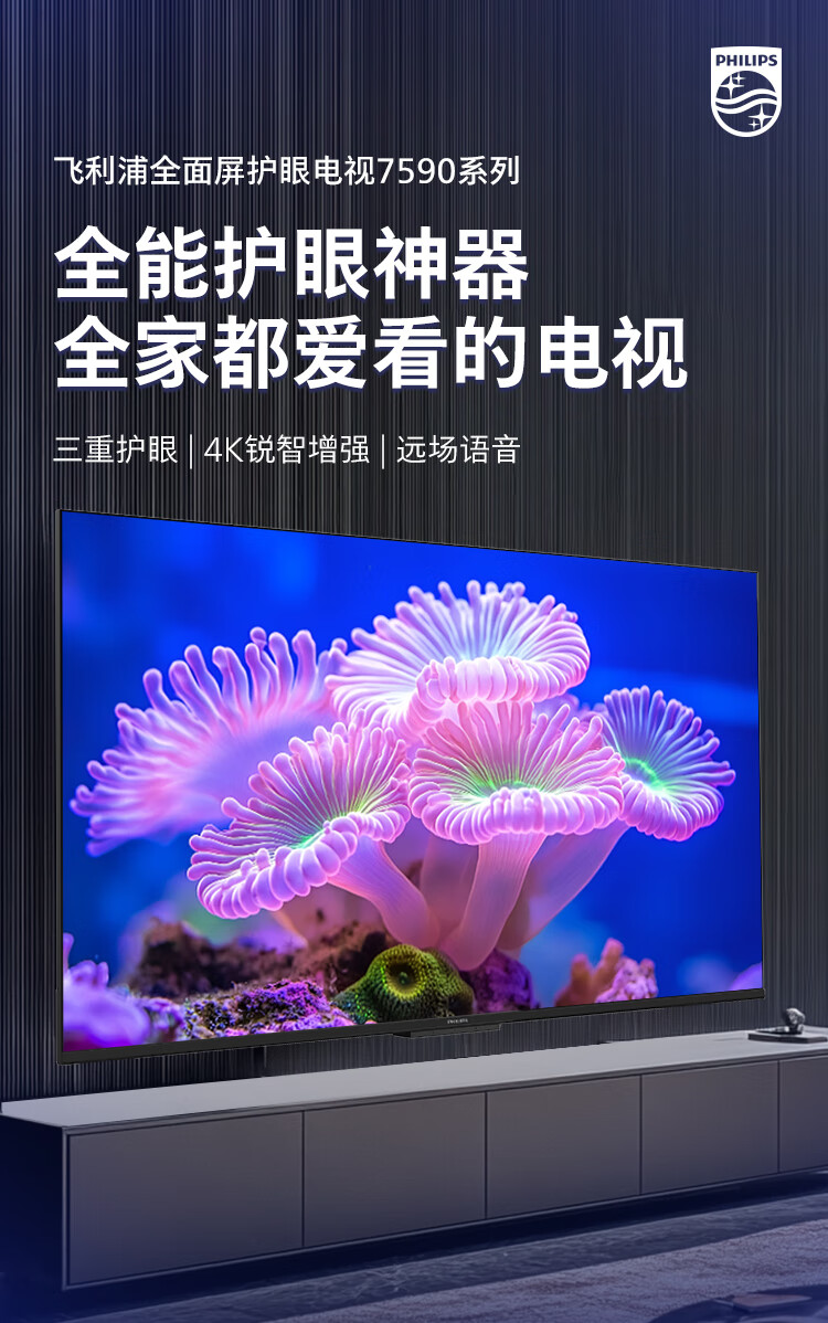 飞利浦(PHILIPS)7590系列65英寸【包安装版-固定挂架送装一体】65英寸4K护眼全面屏液晶平板电视机65PUF7590/T3