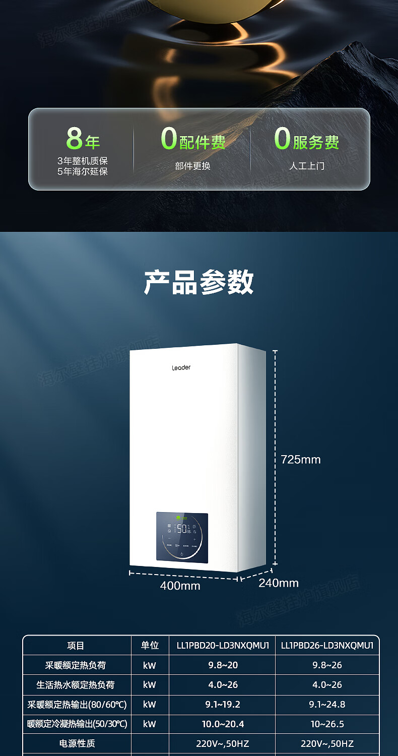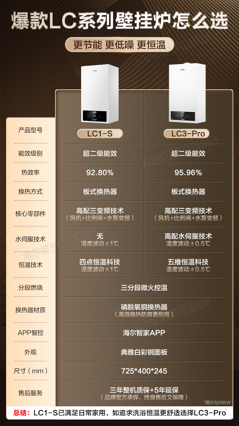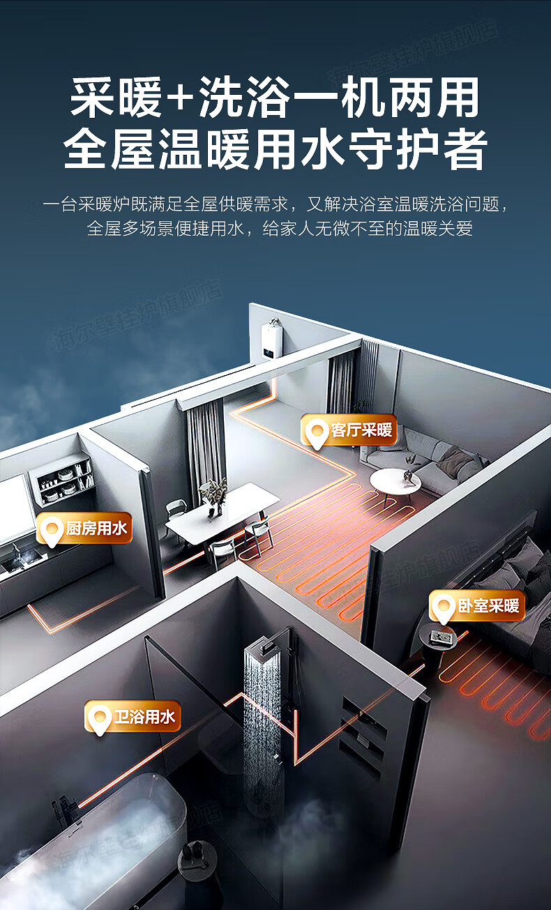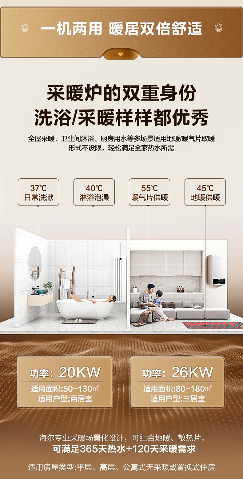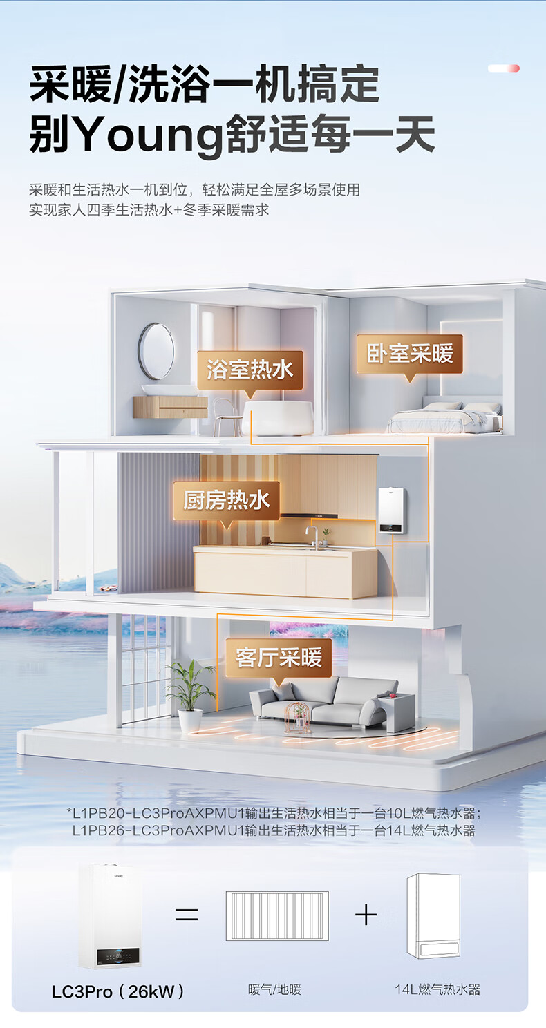 海尔(Haier)【冠军单品】壁挂炉天然气家用燃气壁挂炉采暖炉供暖暖气片地暖锅炉热水器以旧换新壁挂炉十大品牌 26KW 三变频节能省气/高配低价LC1-S