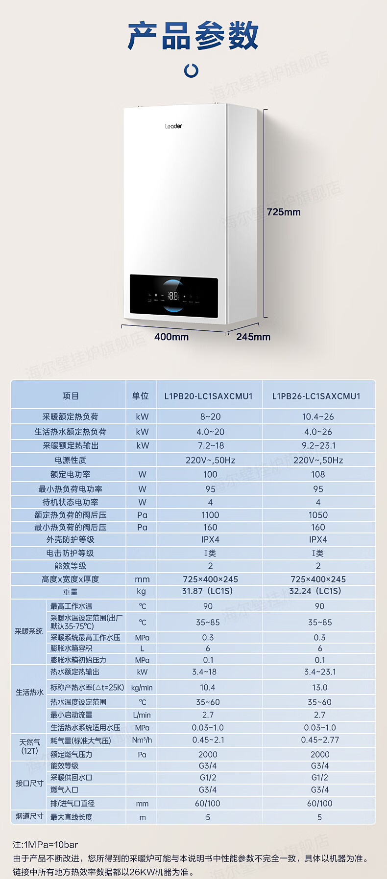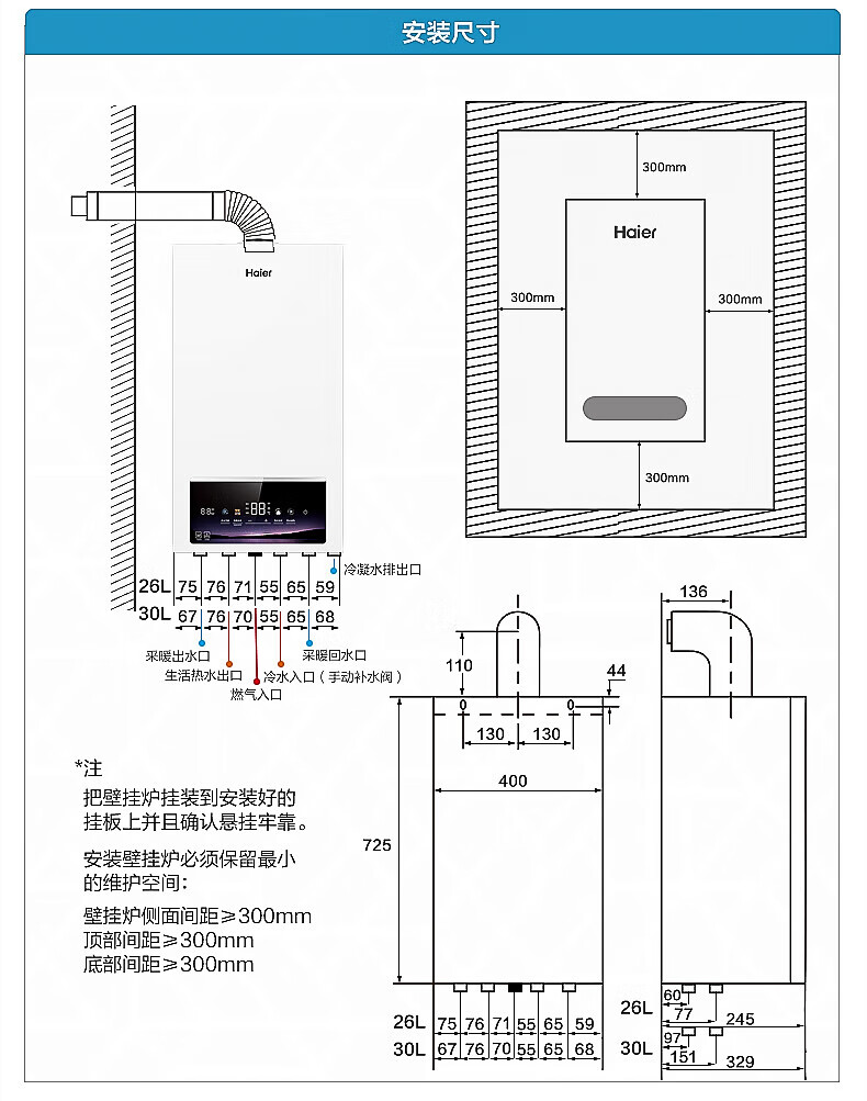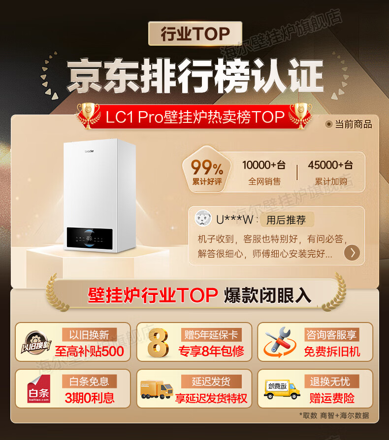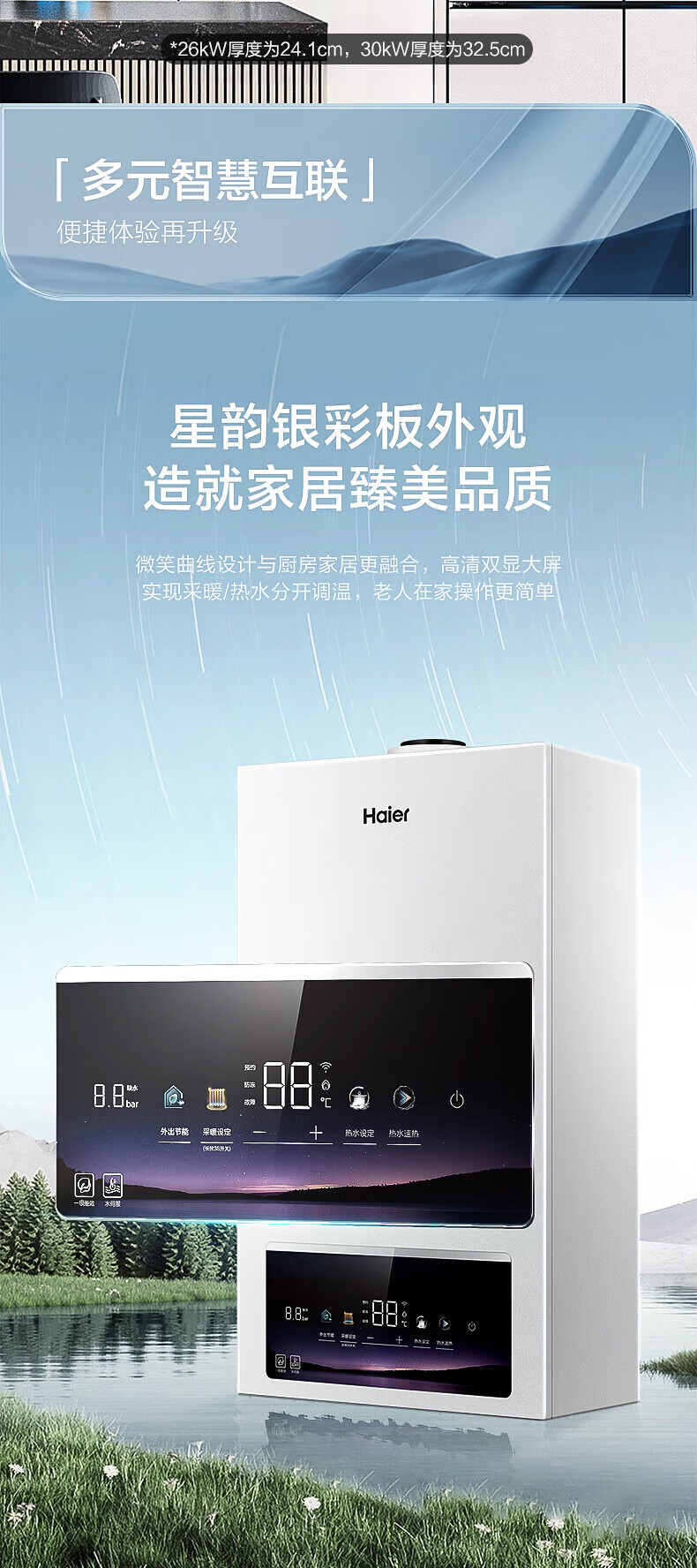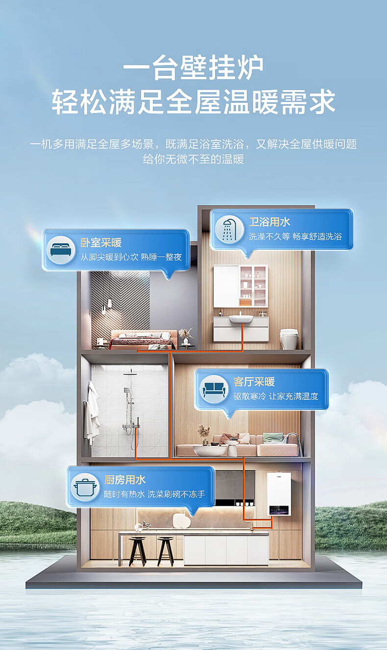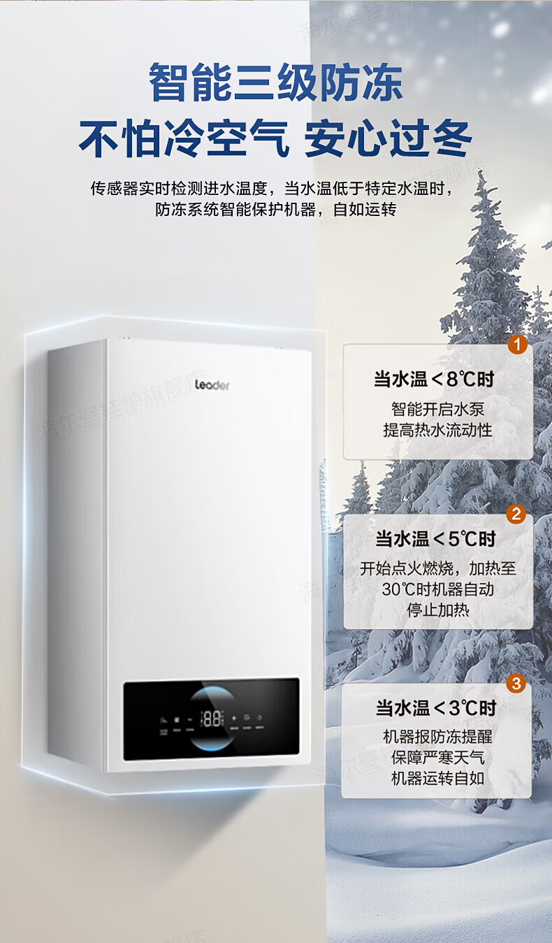 海尔(Haier)【冠军单品】壁挂炉天然气家用燃气壁挂炉采暖炉供暖暖气片地暖锅炉热水器以旧换新壁挂炉十大品牌 26KW 三变频节能省气/高配低价LC1-S