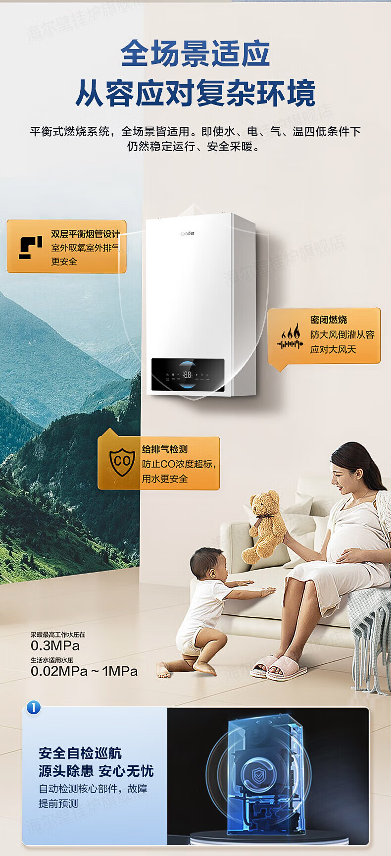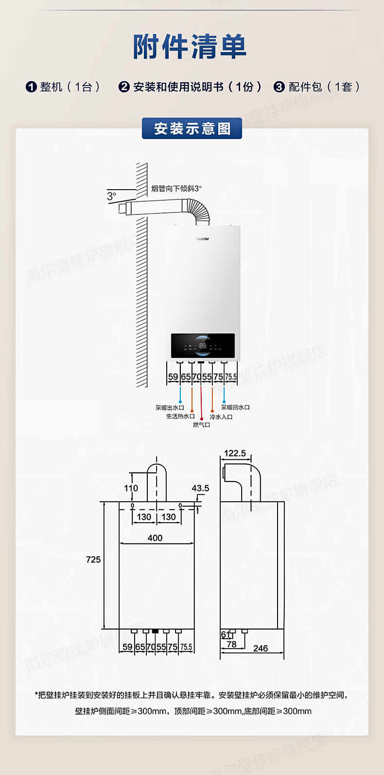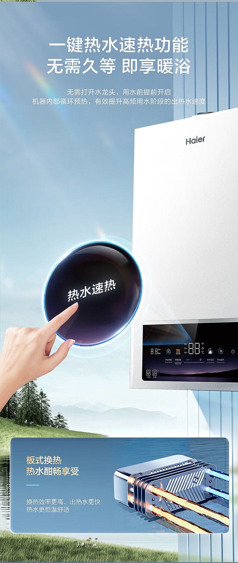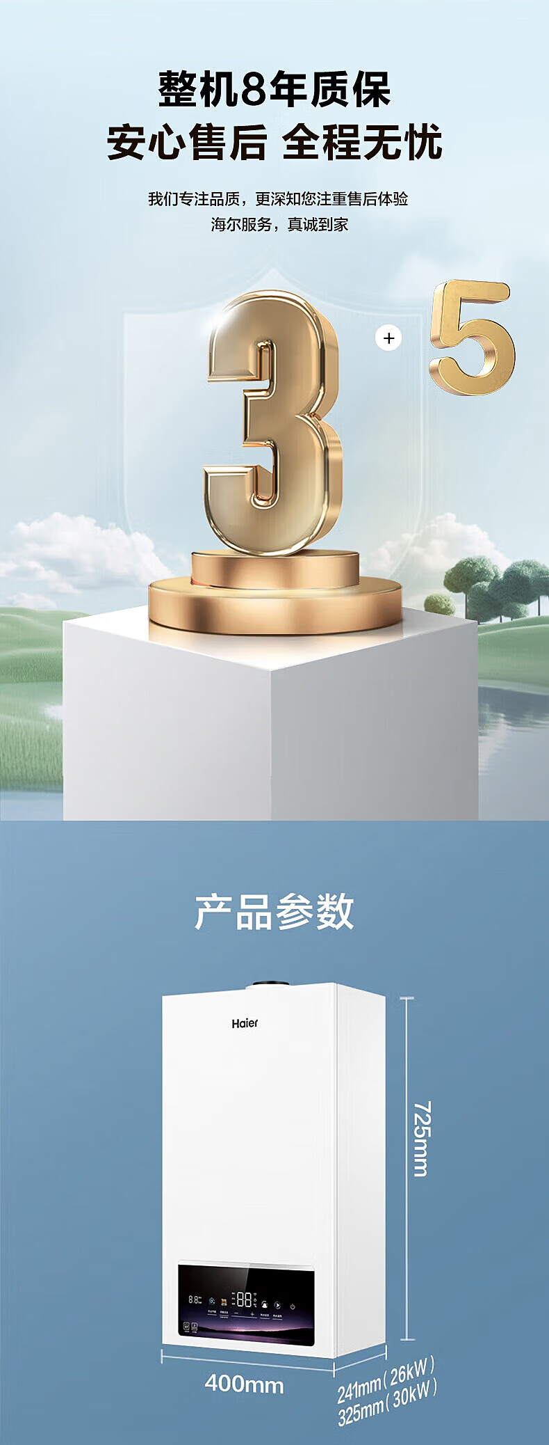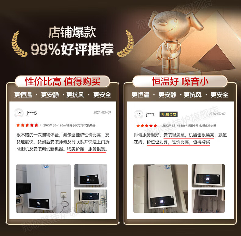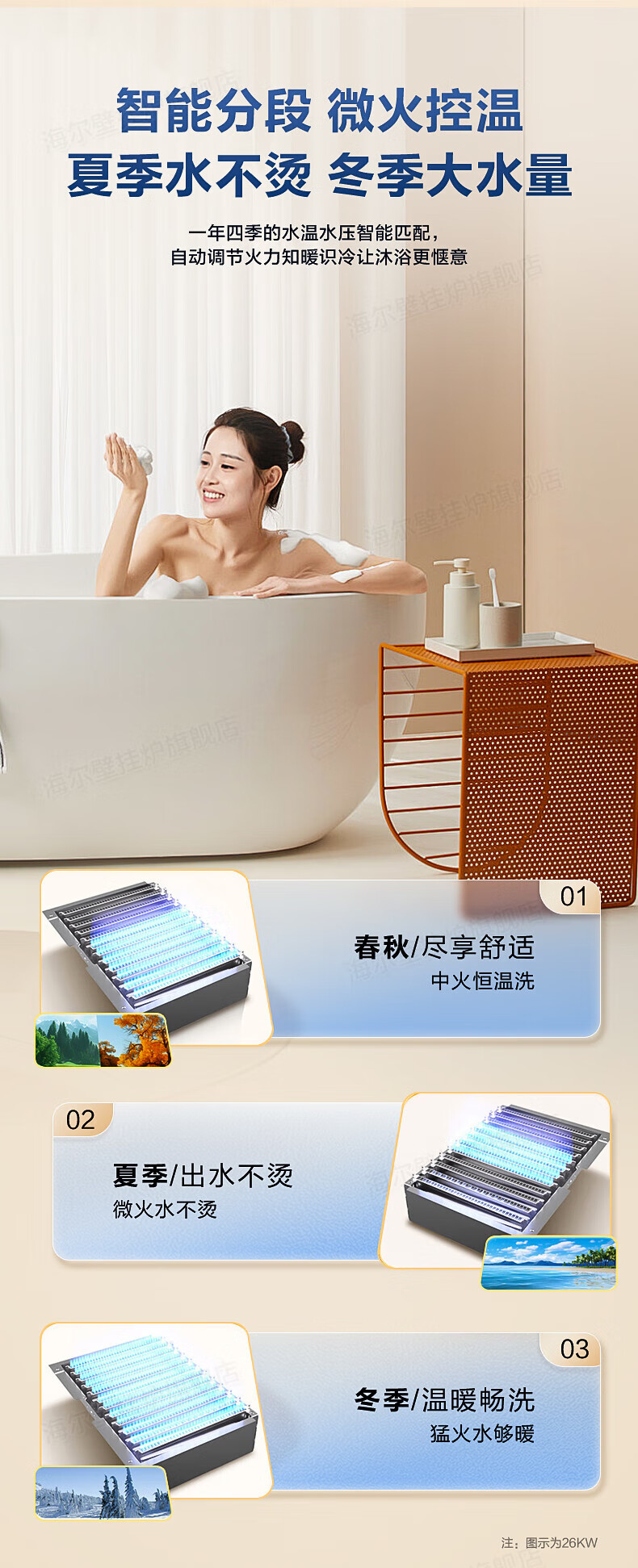 海尔(Haier)【冠军单品】壁挂炉天然气家用燃气壁挂炉采暖炉供暖暖气片地暖锅炉热水器以旧换新壁挂炉十大品牌 26KW 三变频节能省气/高配低价LC1-S