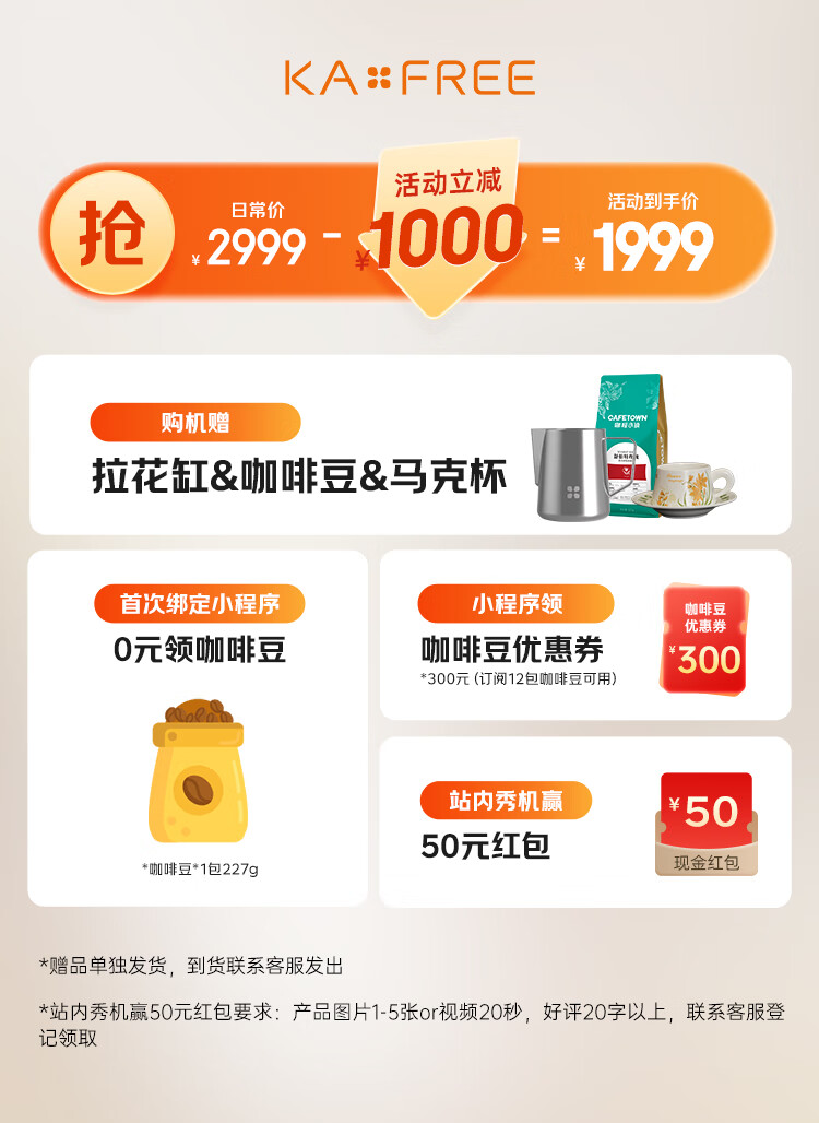 咖啡自由(KAxFREE)【政府补贴】冷萃咖啡机全自动意式家用全自动咖啡机研磨一体 蒸汽打奶泡 A2 墨黑