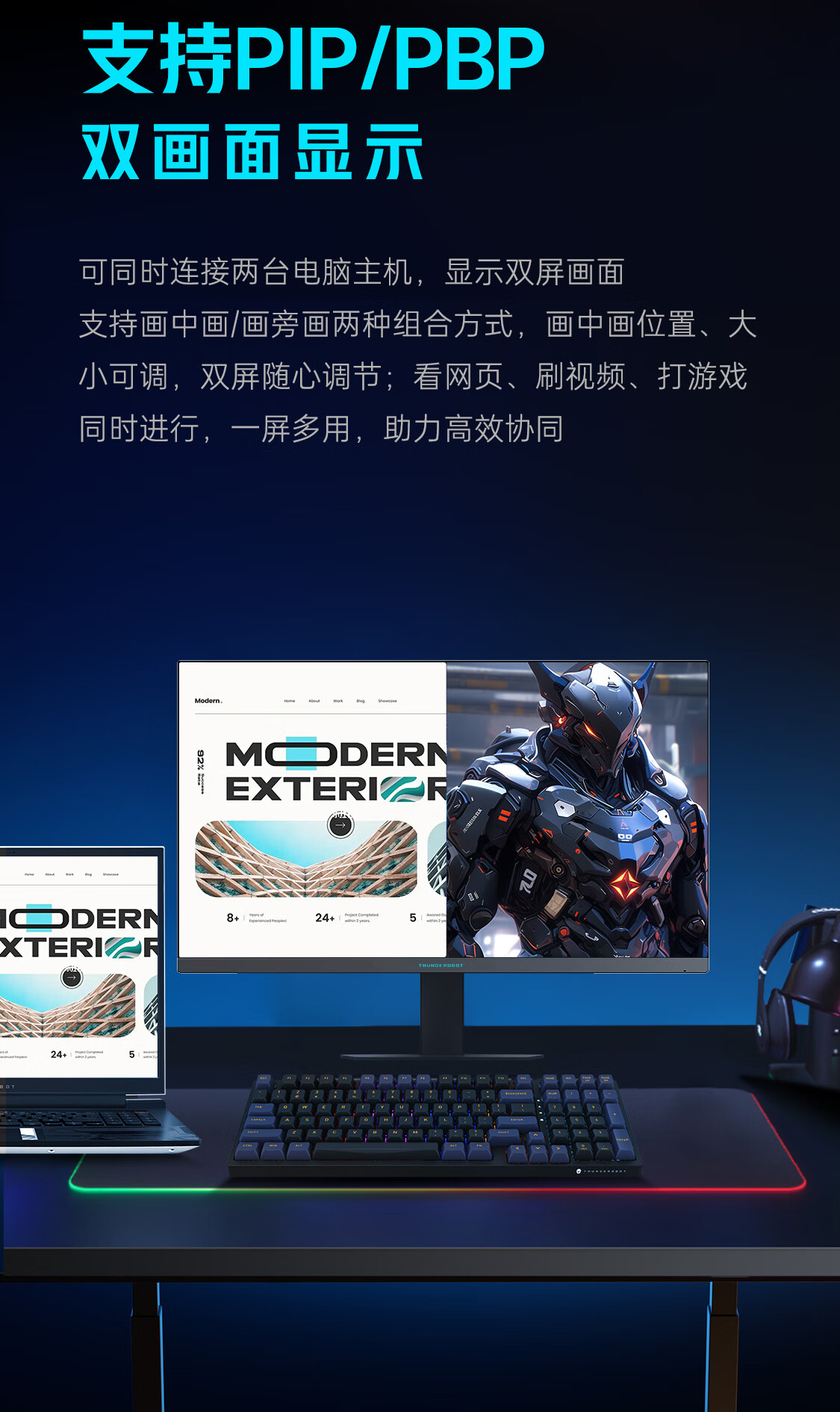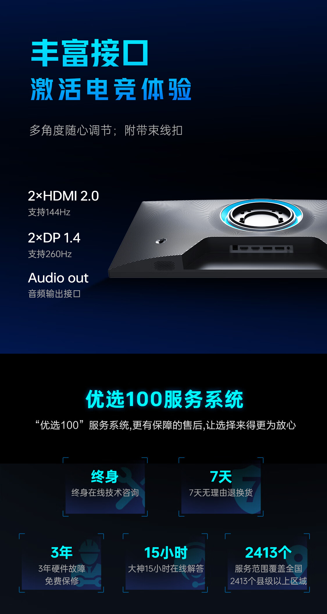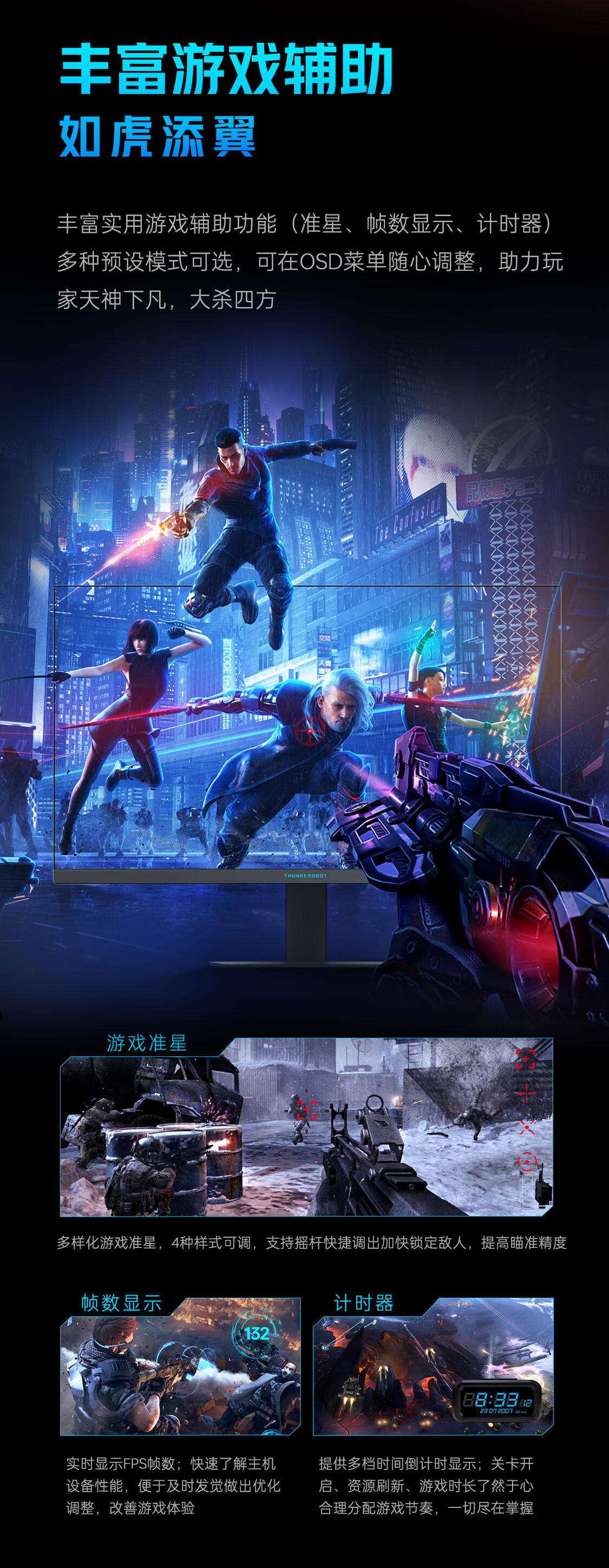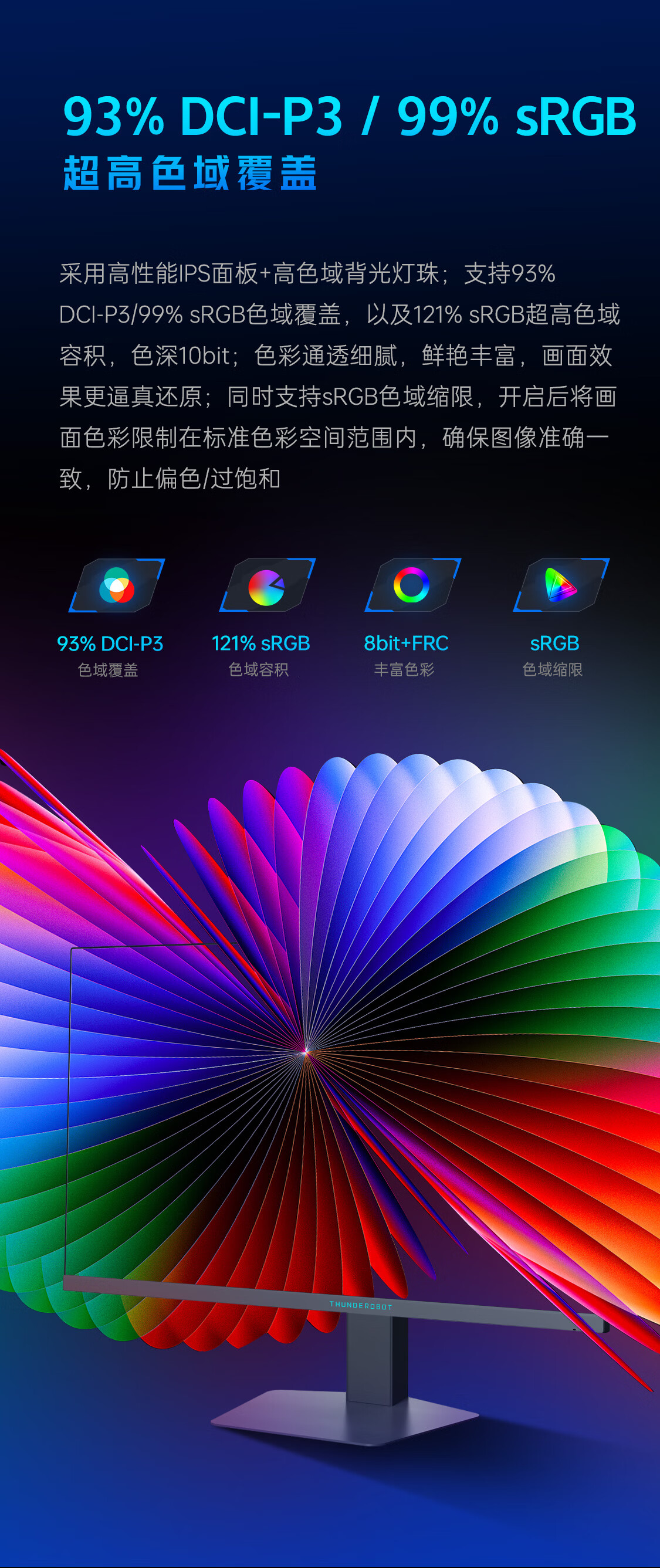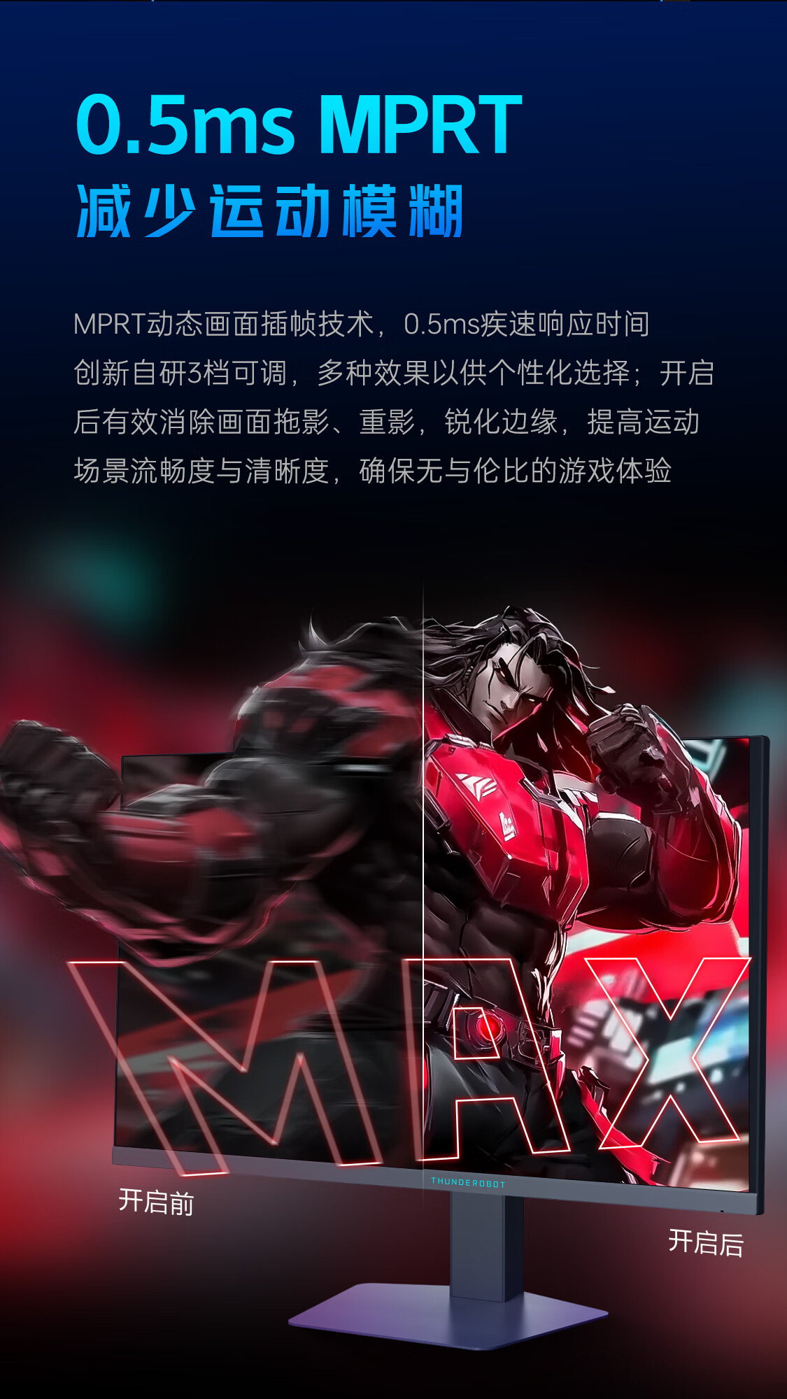 雷神27英寸2K 260Hz原生240 Fast IPS 450nit峰值 硬件低蓝光升降旋转电竞游戏电脑显示器CQ27F240L