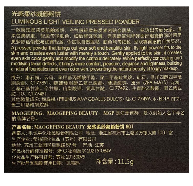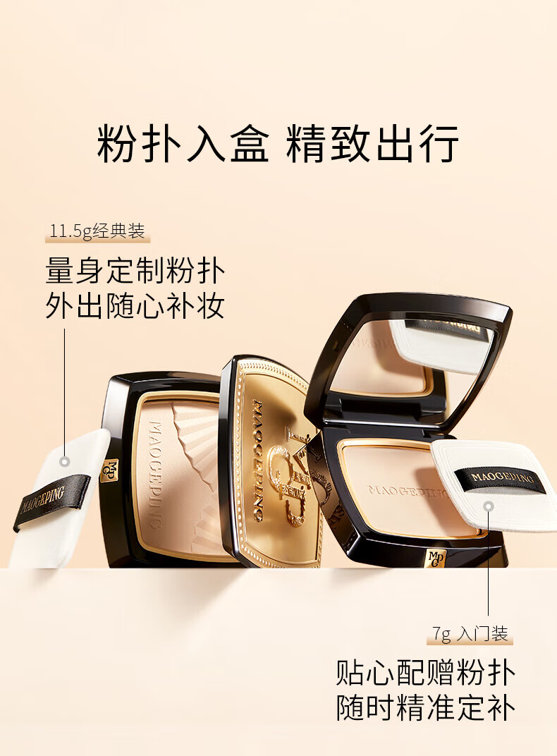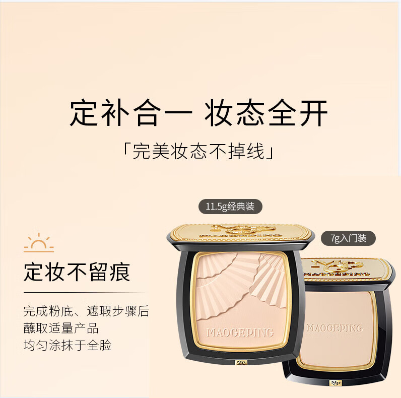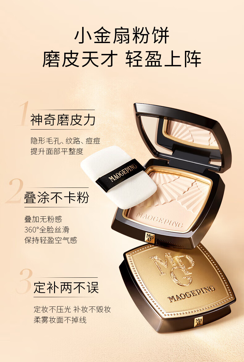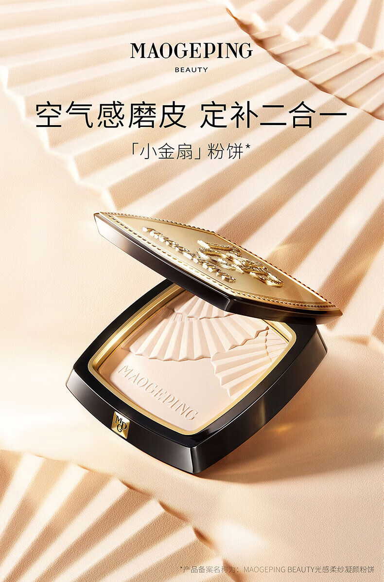 毛戈平(MAOGEPING)光感柔纱凝颜粉饼小金扇定妆801#白皙色11.5g 哑光提亮补妆+面膜