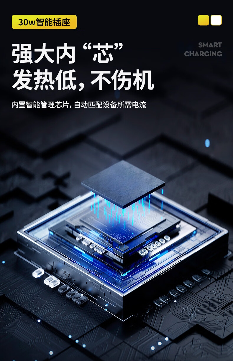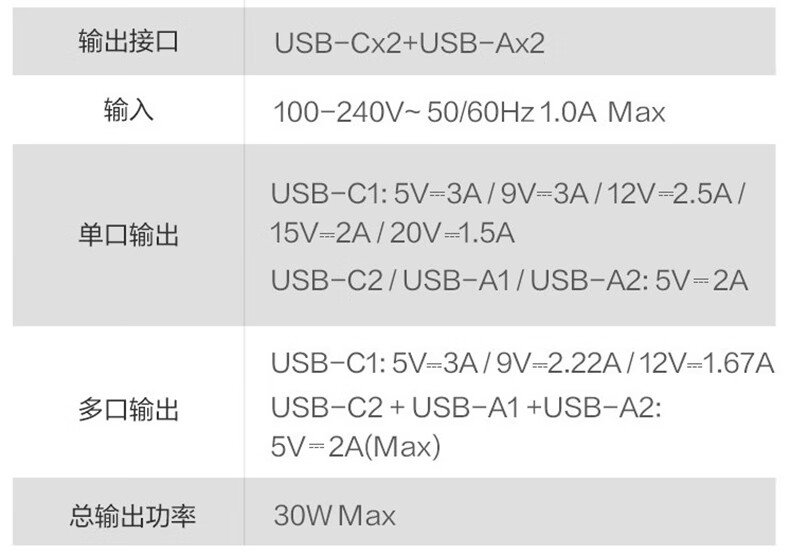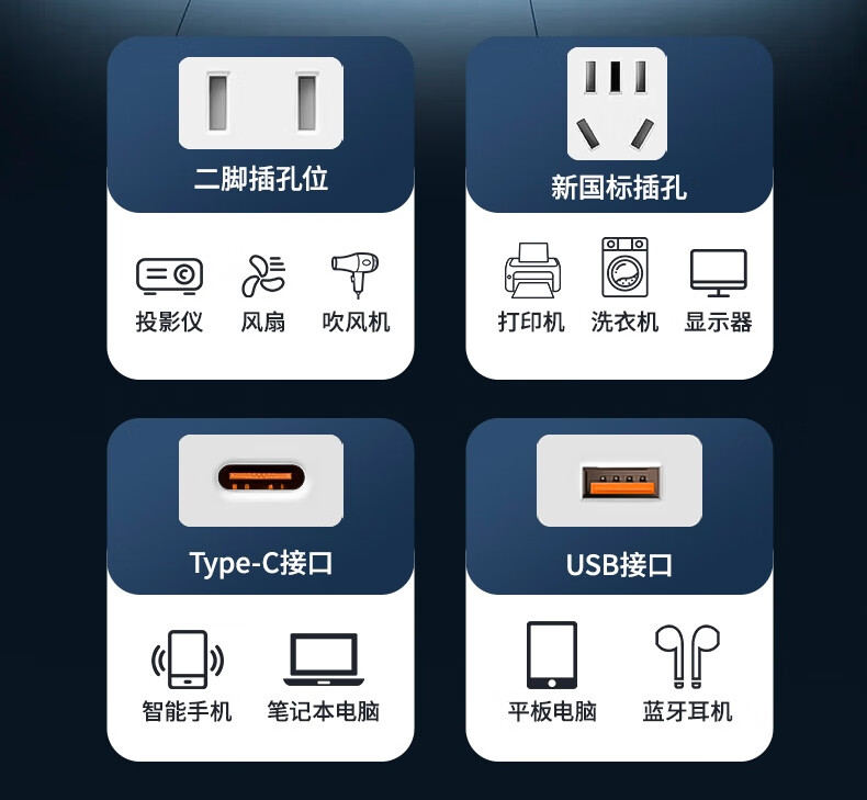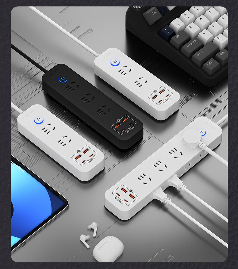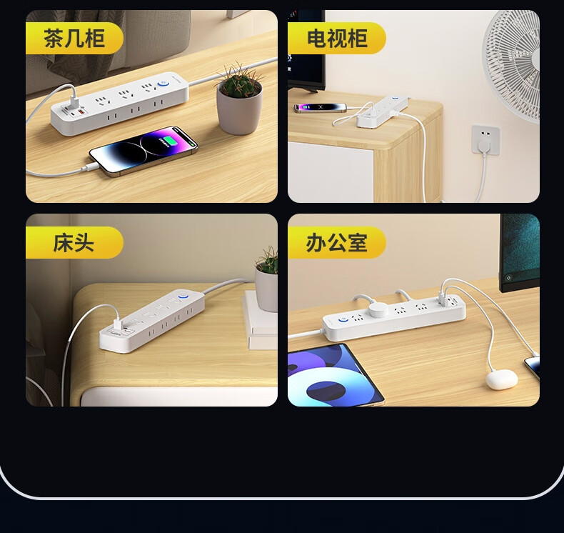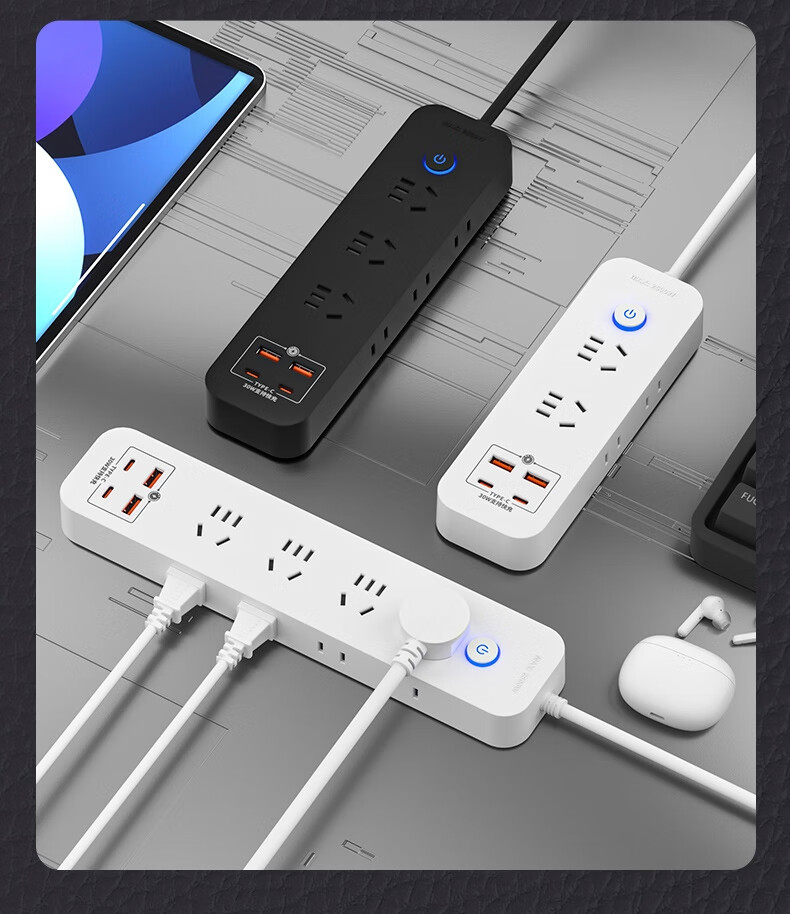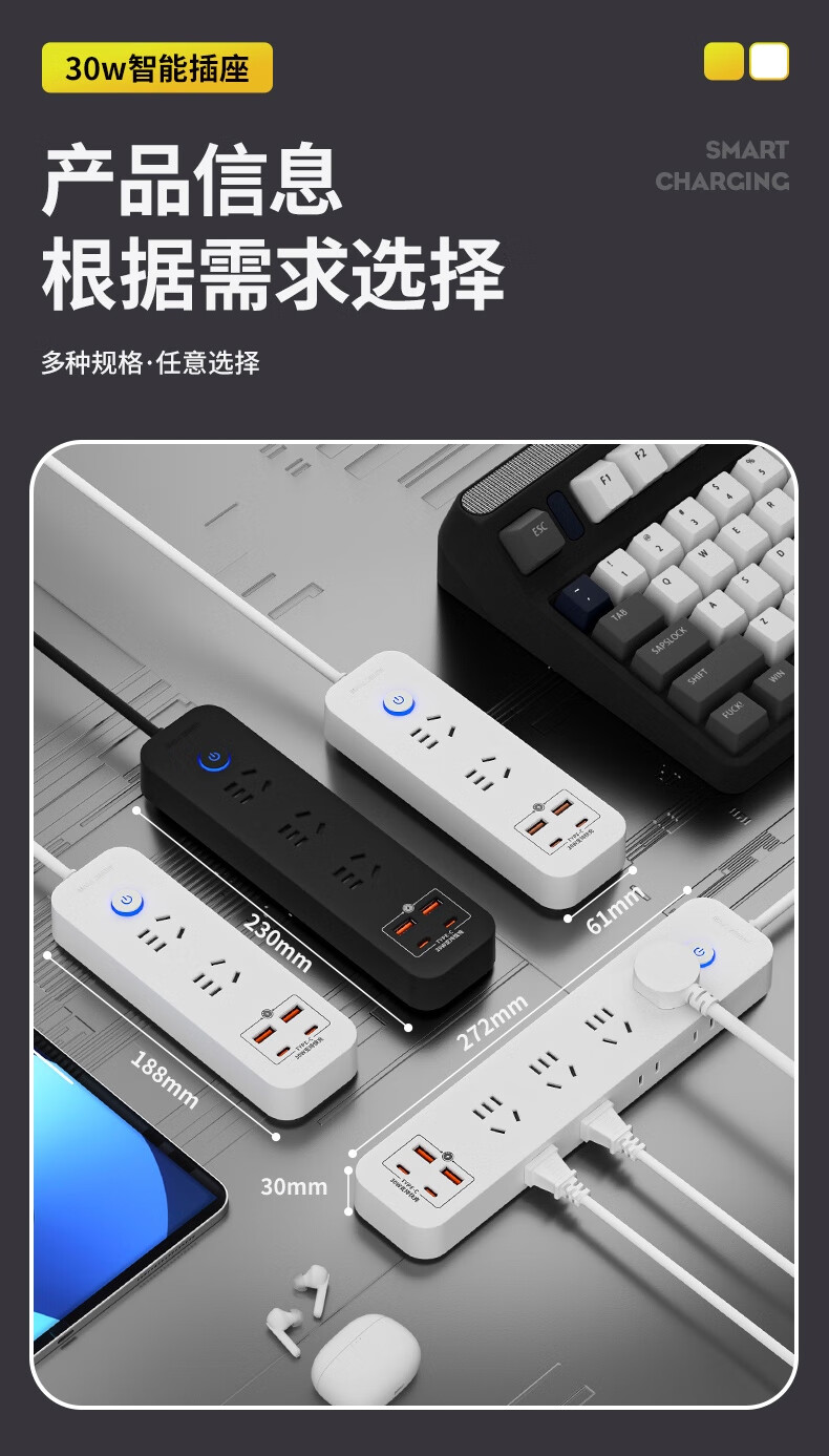 苏士赫尔摩【30W PD超级快充】扁头插排/插线板/排插/拖线板/接线板 2USB+2Type-C 4位总控 1.8米 白色便携款