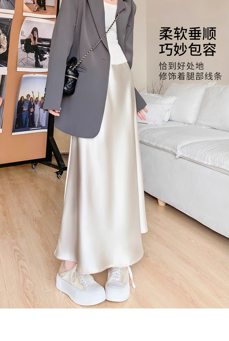雪茜曼醋酸缎面半身裙气质女初秋2025新款高级感丝滑御姐长裙包臀鱼尾裙