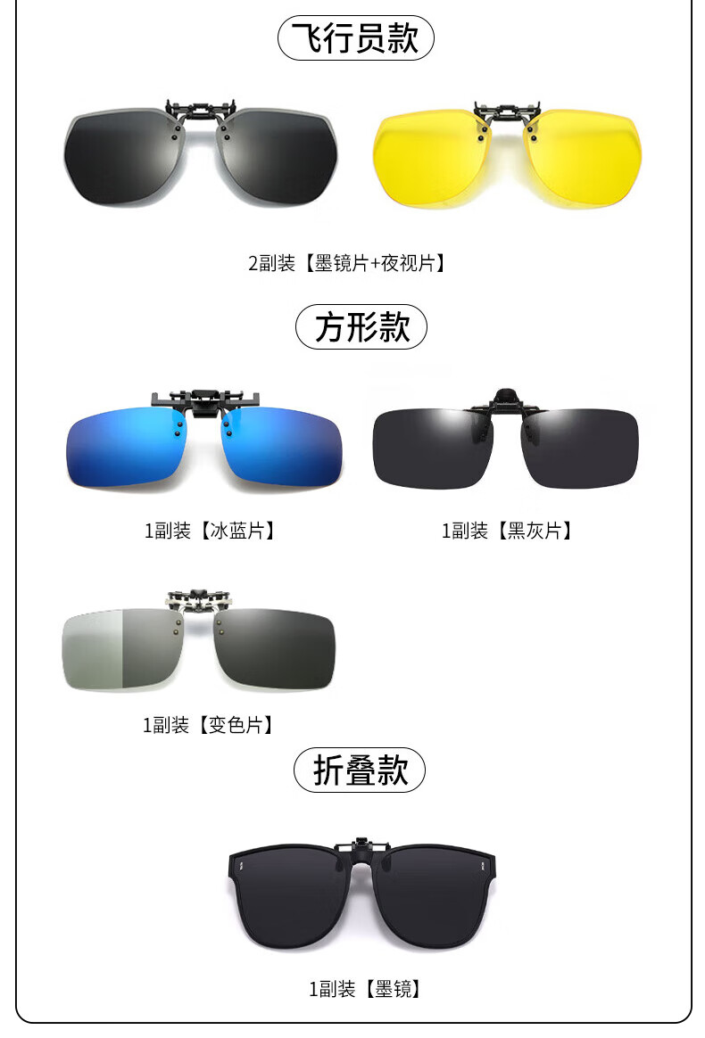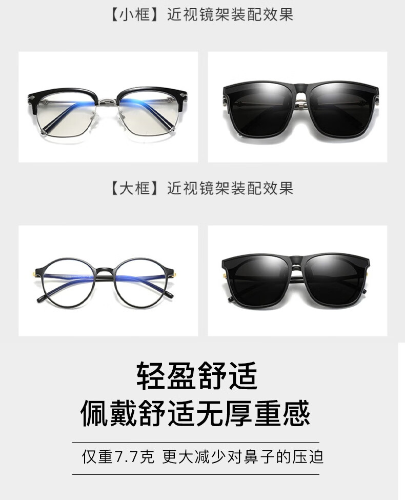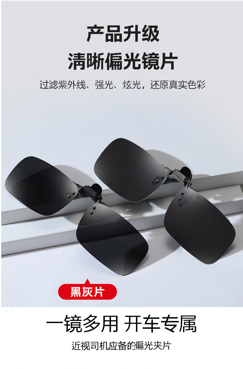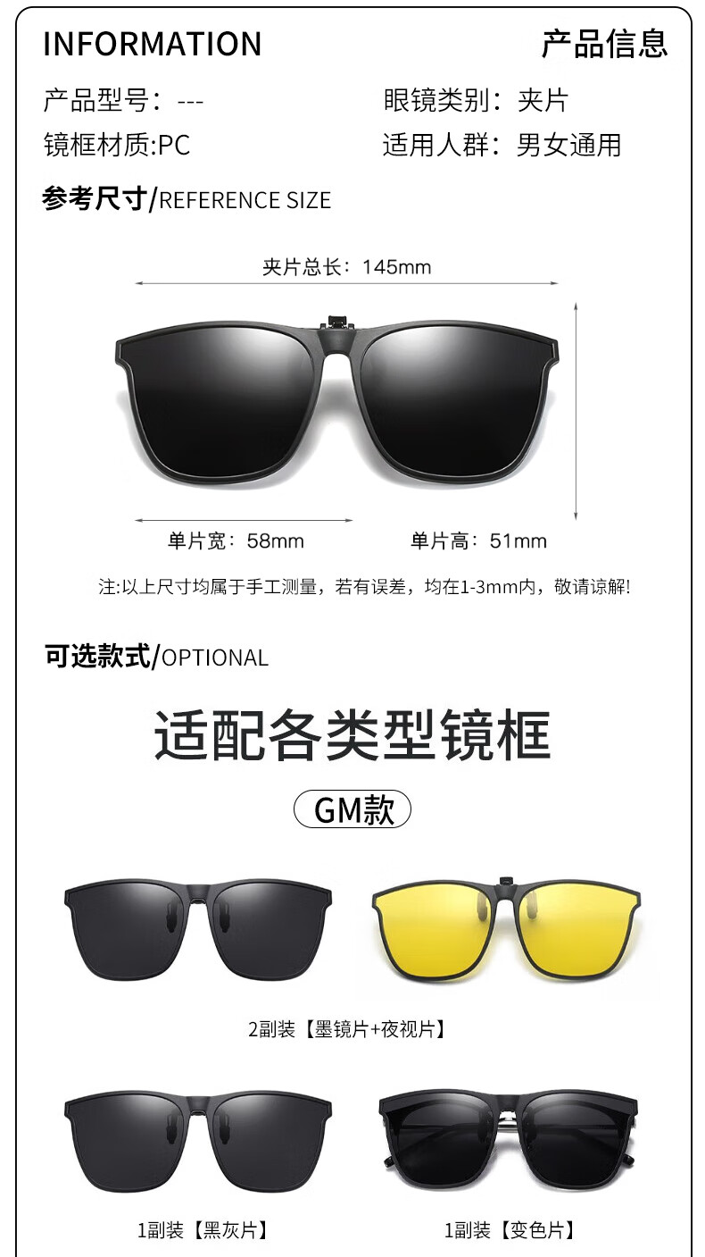 白小奢近视可戴GM款太阳镜夹片 1副装【墨镜】开车日夜两用男女通用