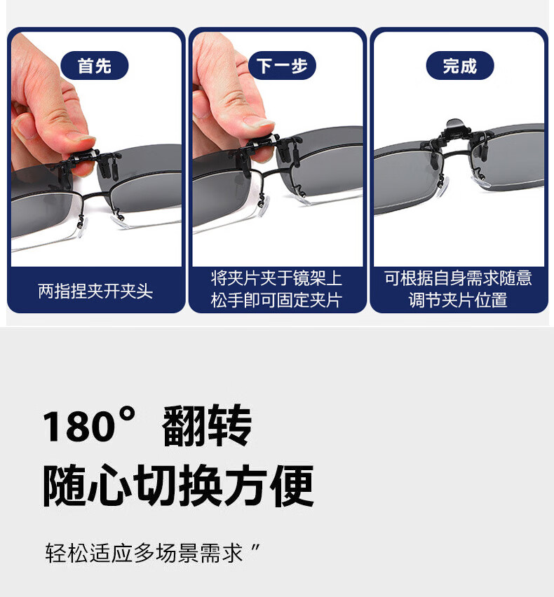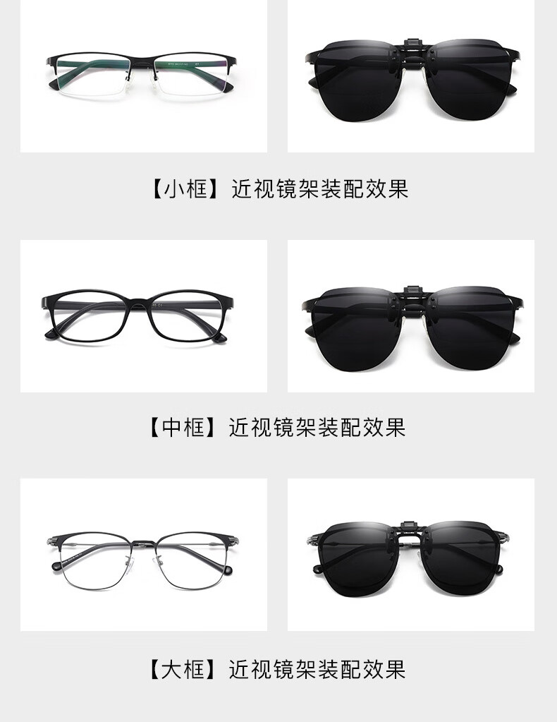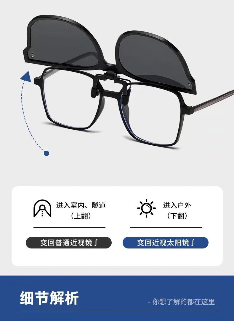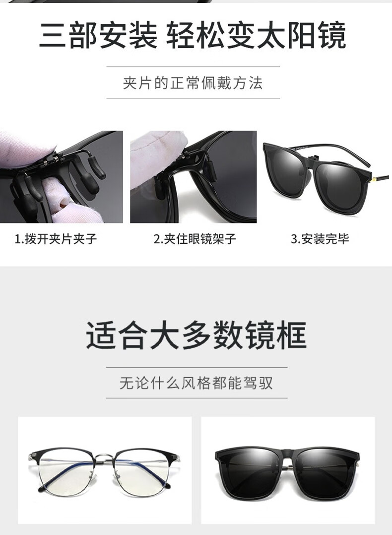 白小奢近视可戴GM款太阳镜夹片 1副装【墨镜】开车日夜两用男女通用
