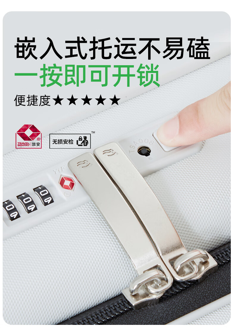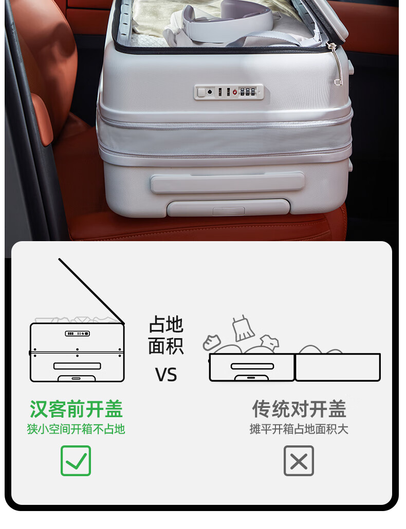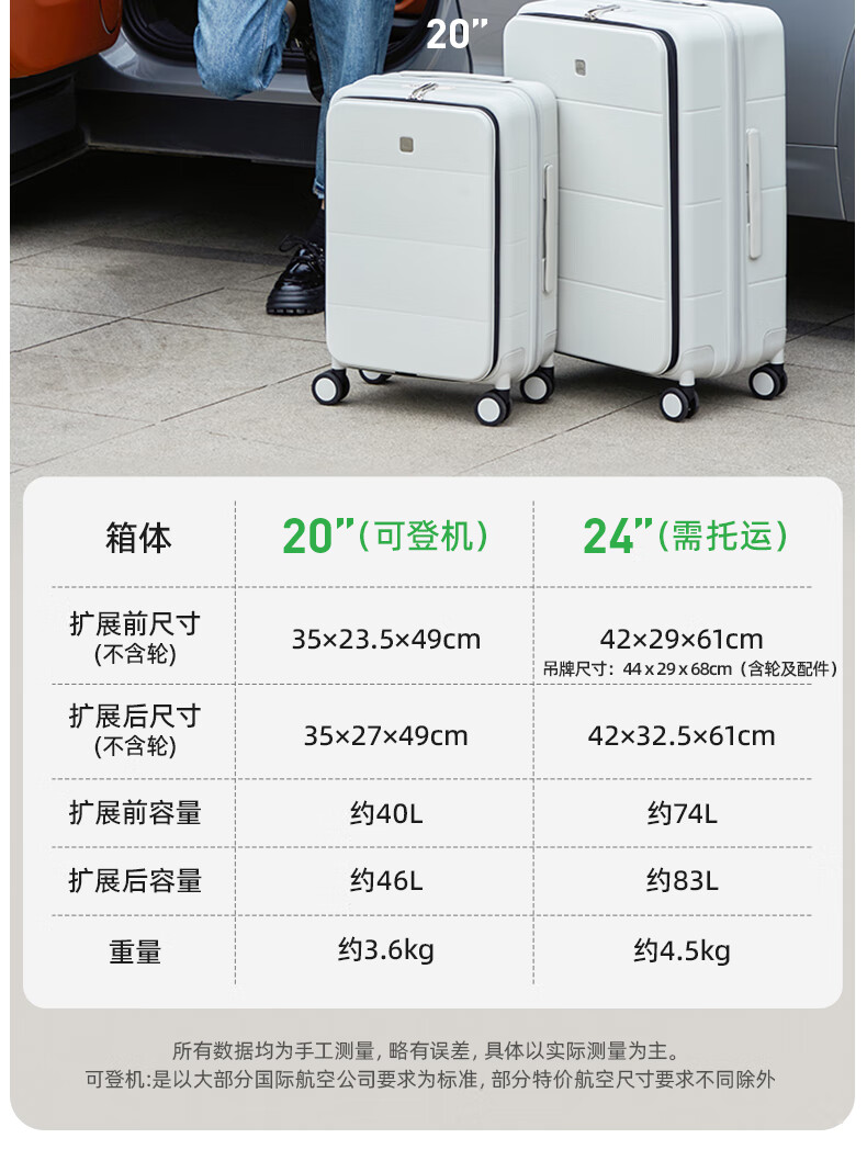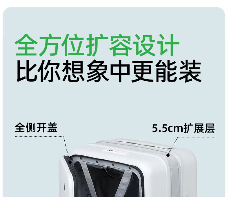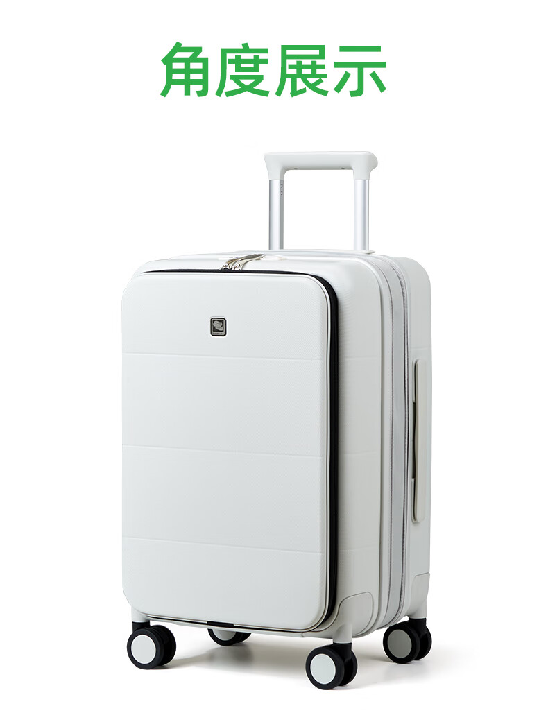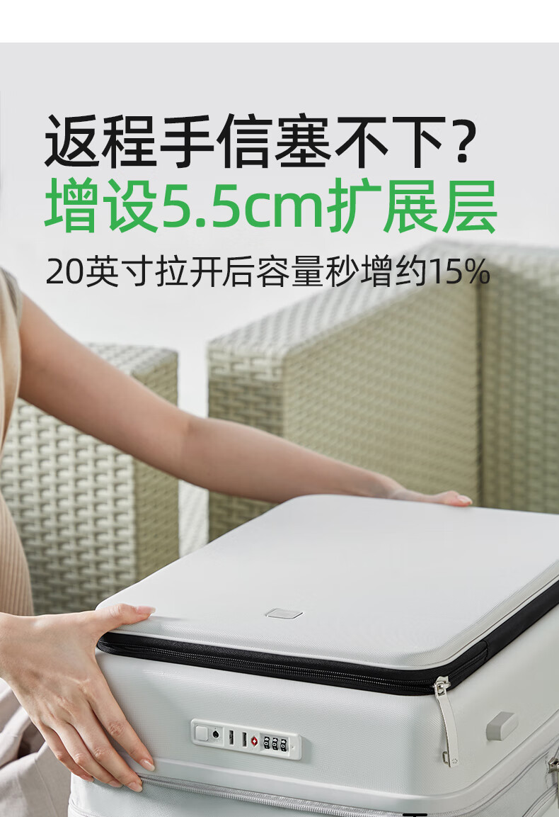 汉客扩容行李箱男拉杆箱女登机密码旅行箱46升大容量20英寸烟白色侧开