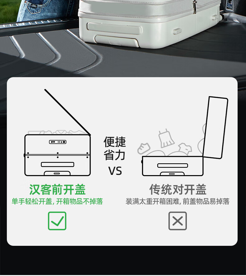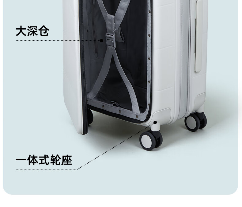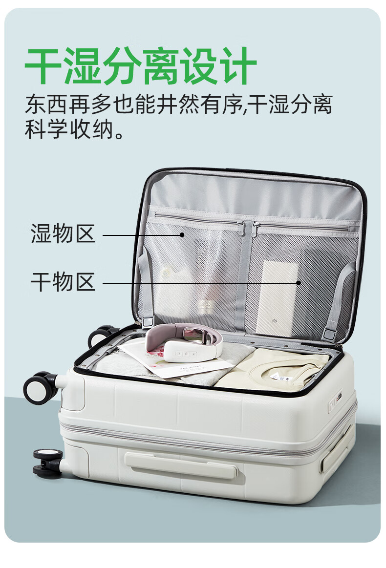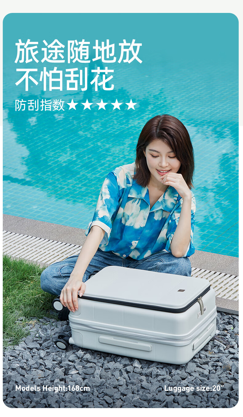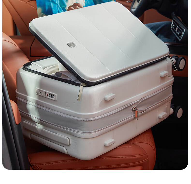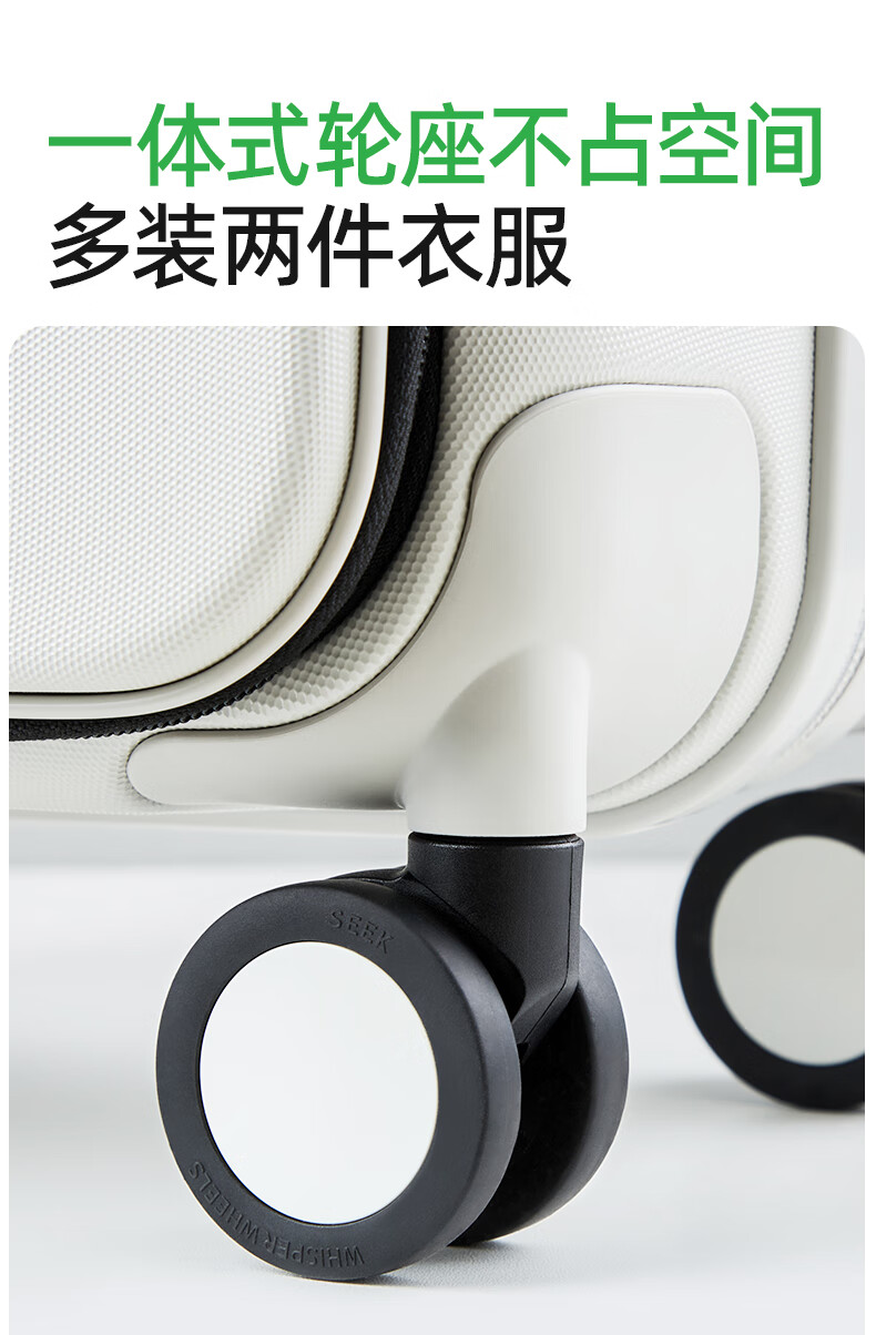 汉客扩容行李箱男拉杆箱女登机密码旅行箱46升大容量20英寸烟白色侧开
