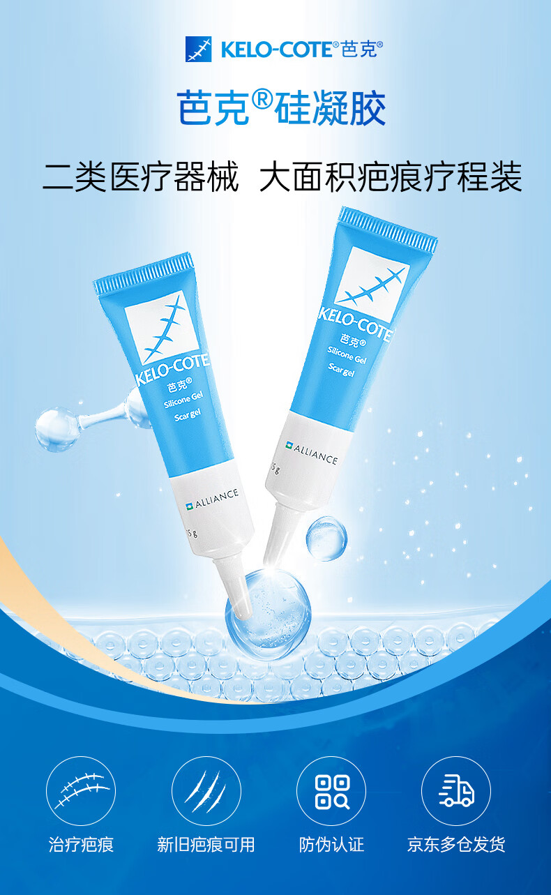 芭克kelocote美国疤克巴克硅凝胶改善祛 疤膏贴去疤痕15g*2支