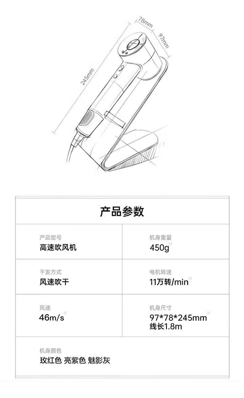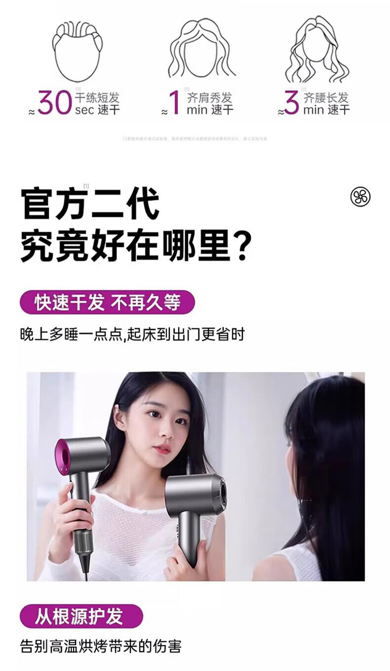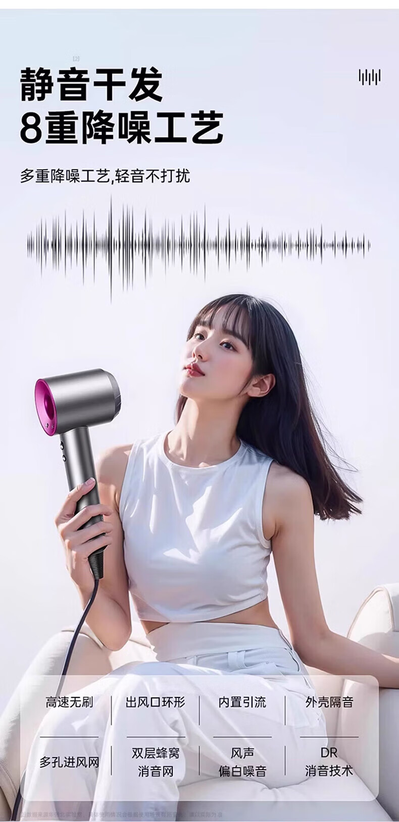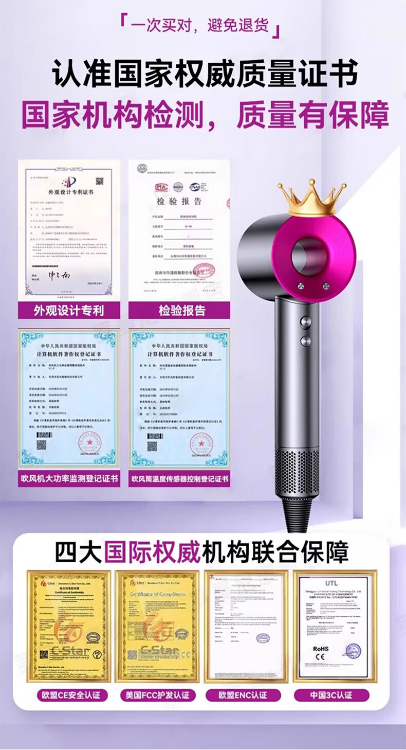 【国家3C认证丨45亿负离子护发】高速无叶吹风机家用负离子静音大功率不伤发恒温速干吹风筒华强北 【官方顶配-单风嘴】经典森红 45亿水润负离子护发 【2025新款丨顶配1:1版本】1.8米线长礼盒装