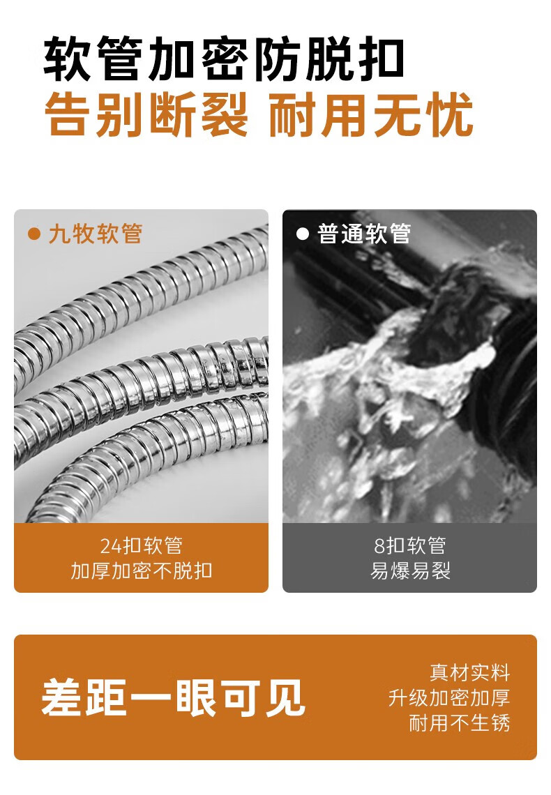 九牧(JOMOO)厨卫配件喷枪花洒软管不锈钢黄铜双扣防爆防缠绕淋浴软管 HG 2米