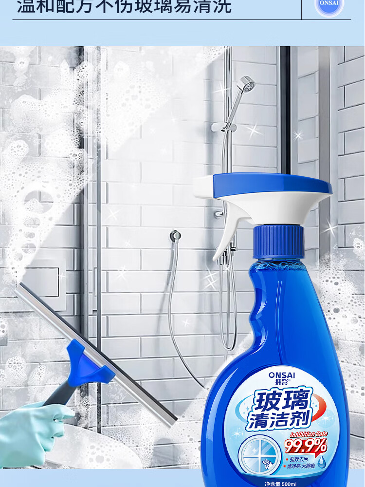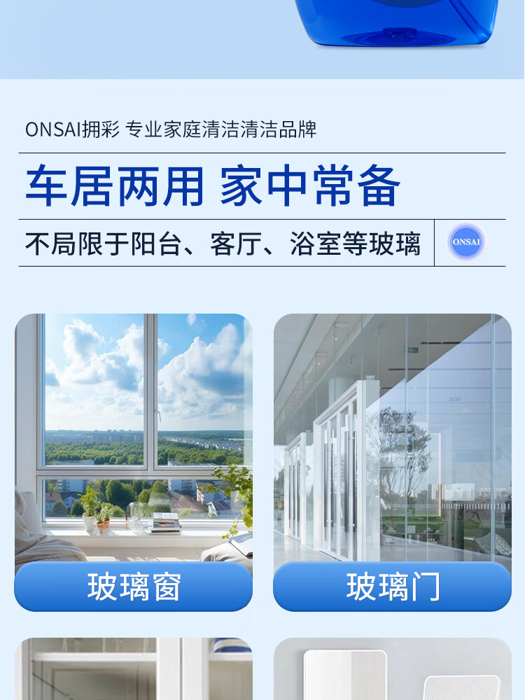 拥彩玻璃清洁剂家用强力去污去除水垢水渍油膜擦瓷砖汽车窗户清洗神器