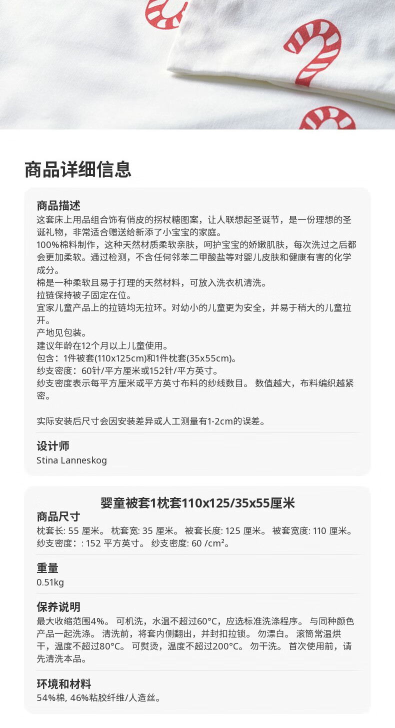 宜家(IKEA)【新品】LOVSANGARE洛弗桑雅被套枕套婴儿被子家用可机洗 被套枕套杖糖110x125cm