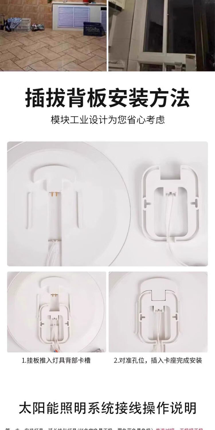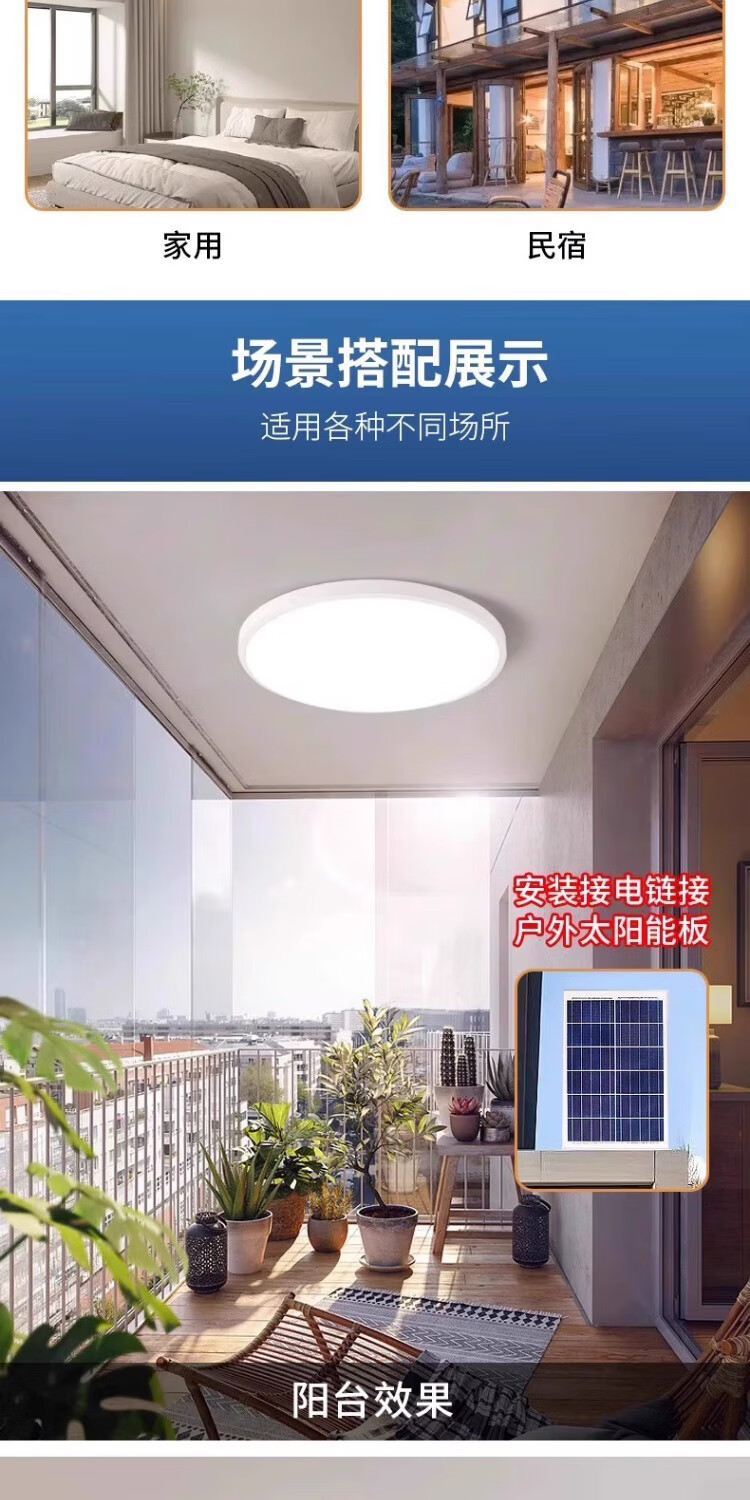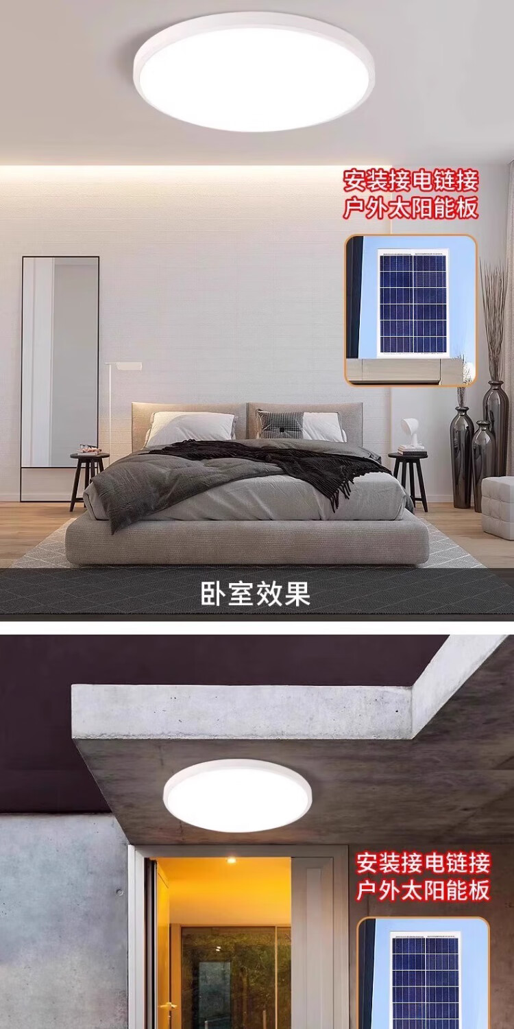 振牛太阳能室内照明灯家用阳台走廊灯户外庭院人体感应一拖多吸顶灯 一拖一【5米线】 太阳能+常亮+感应+市电互补