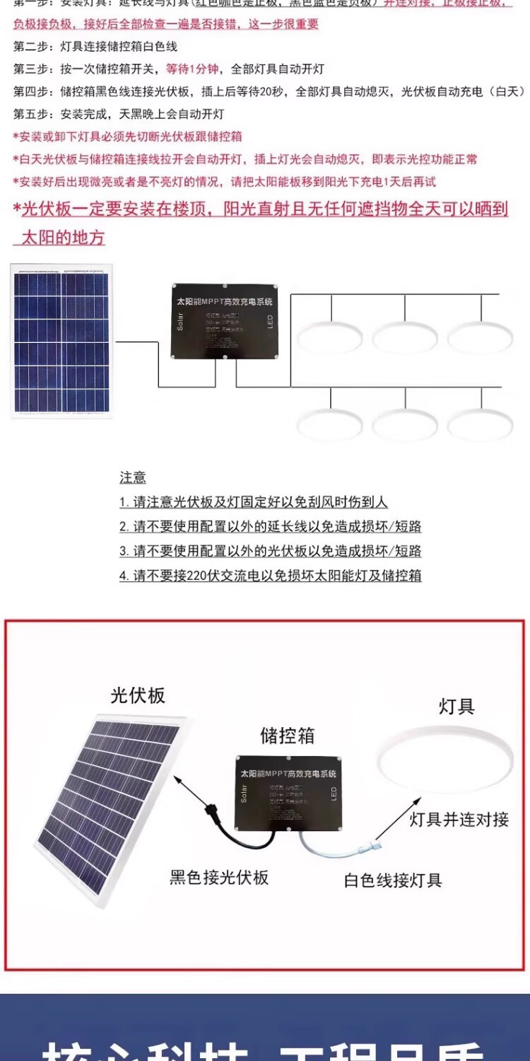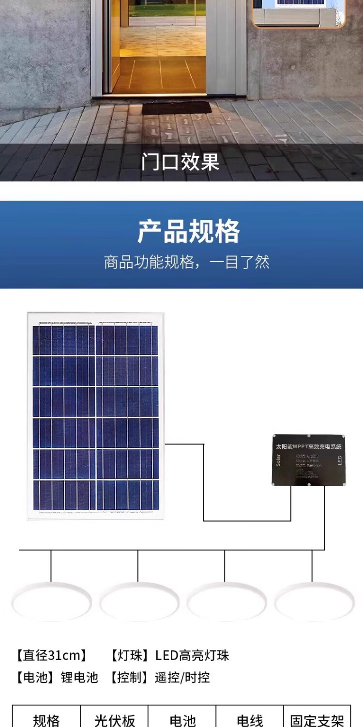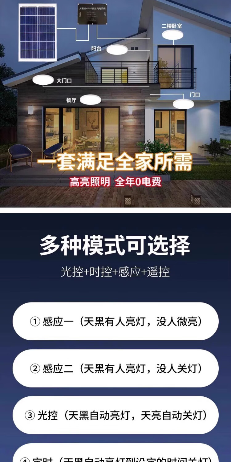 振牛太阳能室内照明灯家用阳台走廊灯户外庭院人体感应一拖多吸顶灯 一拖一【5米线】 太阳能+常亮+感应+市电互补