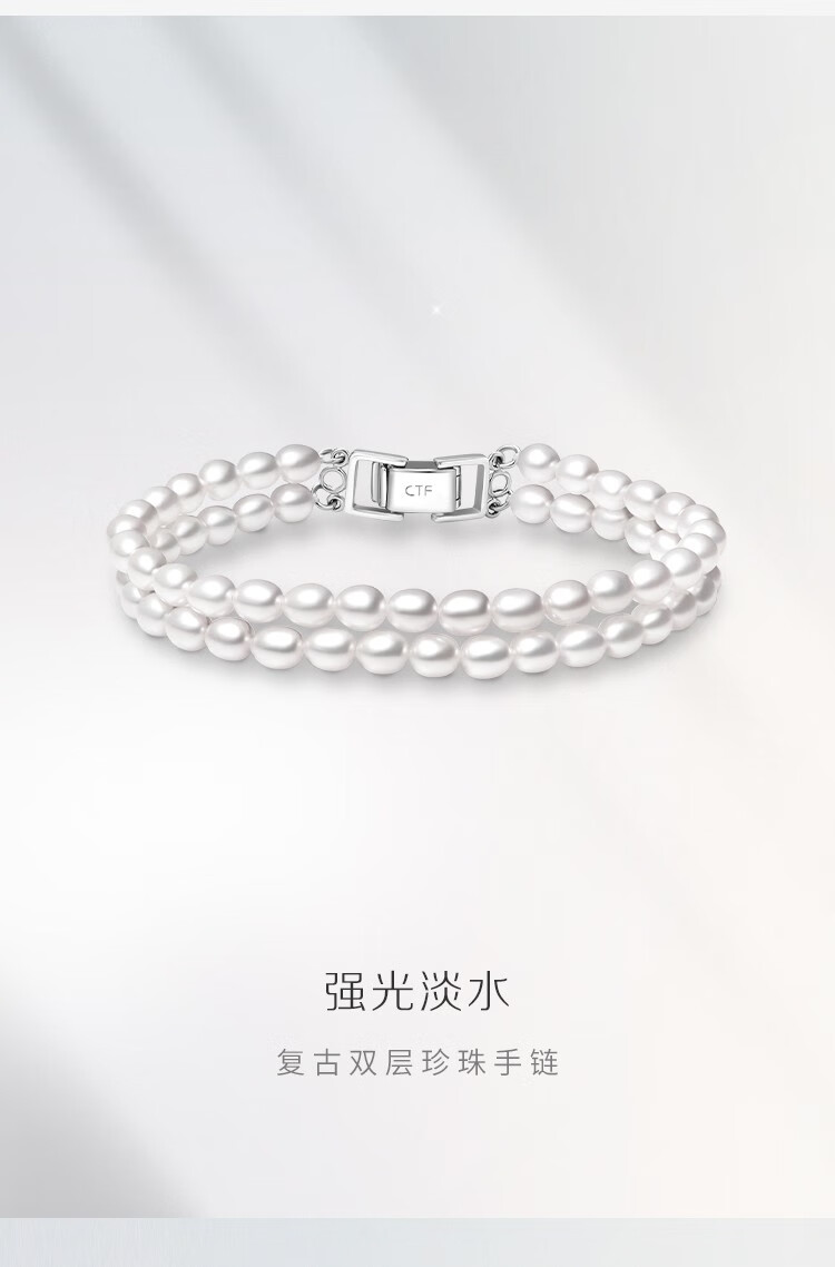 周大福 时尚 925银镶珍珠手链 17.5cm T70800