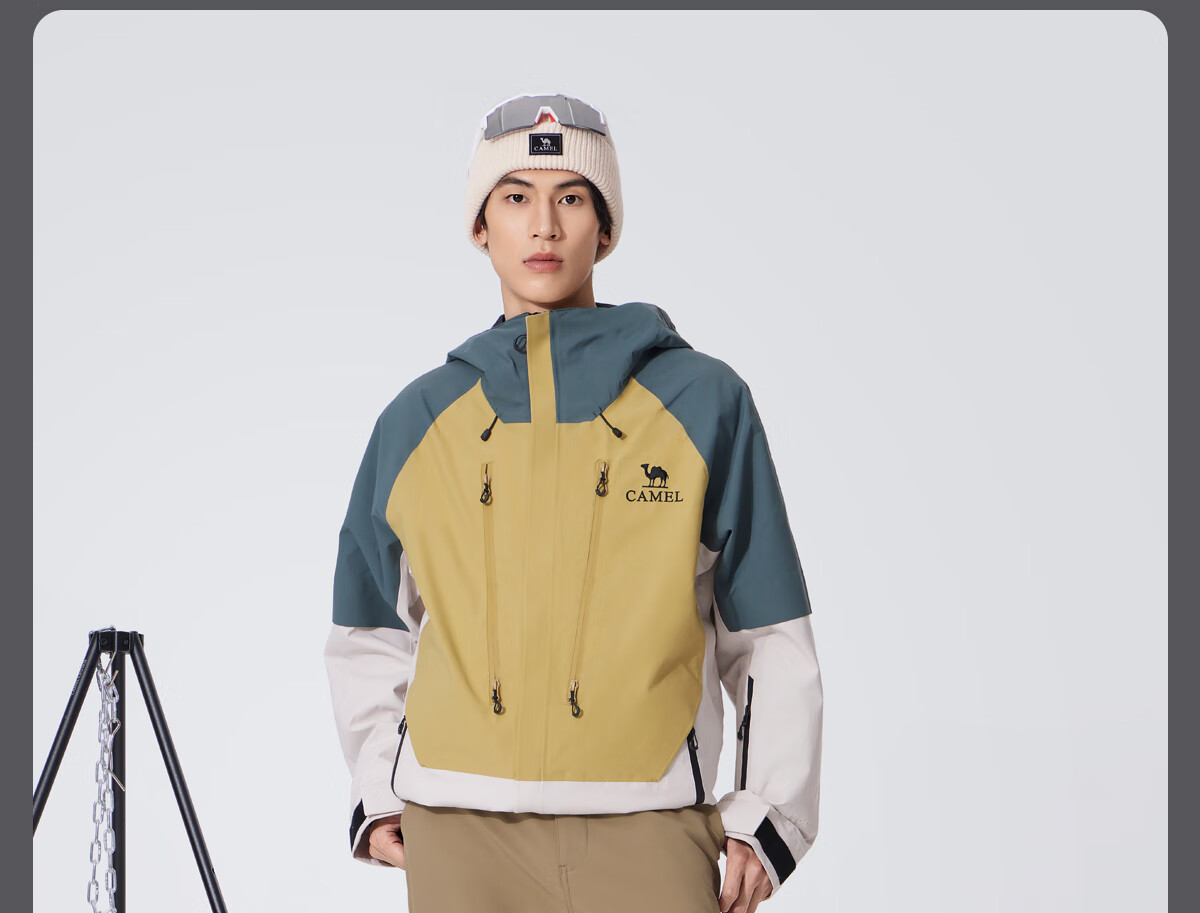 骆驼(CAMEL)冲锋衣硬壳单层男女外套中性风三防登山服女士短外套