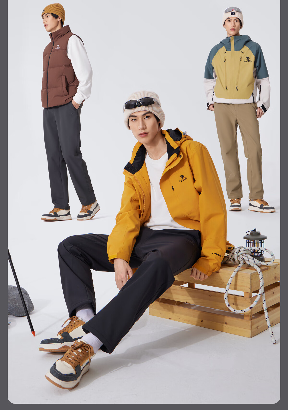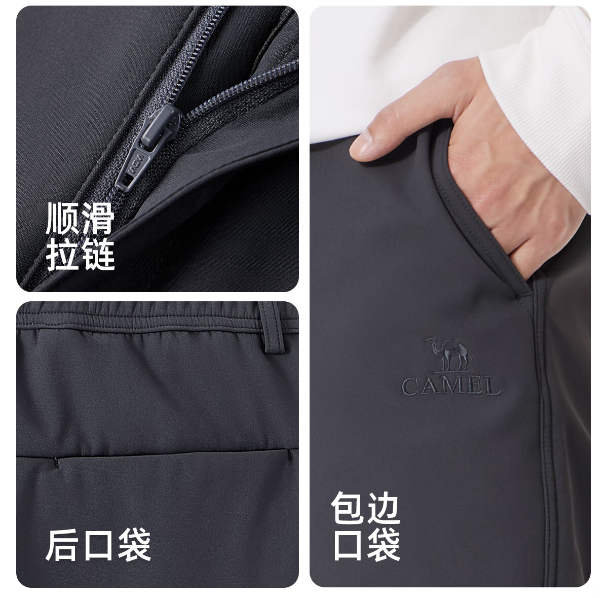 骆驼(CAMEL)男装梭织休闲裤男冬季加绒保暖弹力防泼水软壳长裤子M14CD05630