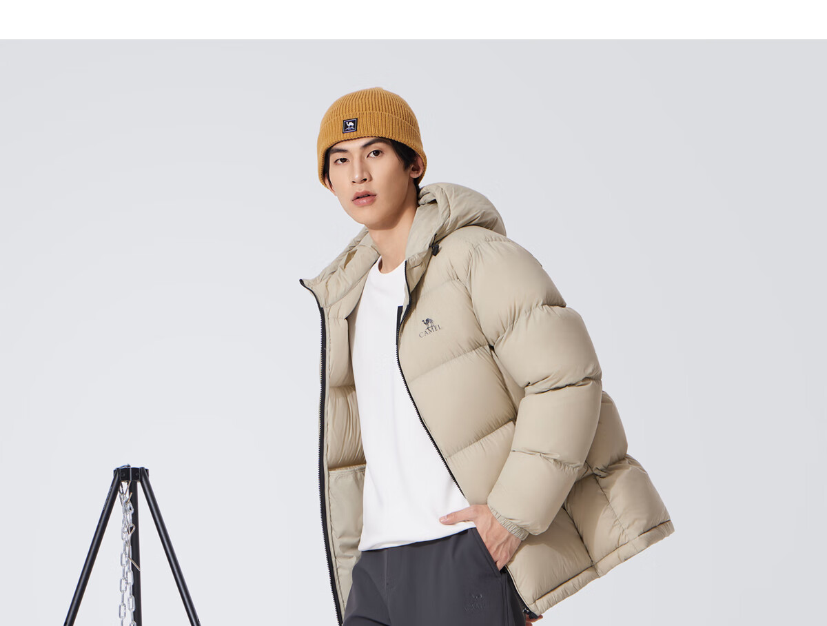 骆驼(CAMEL)男装大毛领羽绒服男冬季加厚工装户外保暖防寒外套M34CS01643