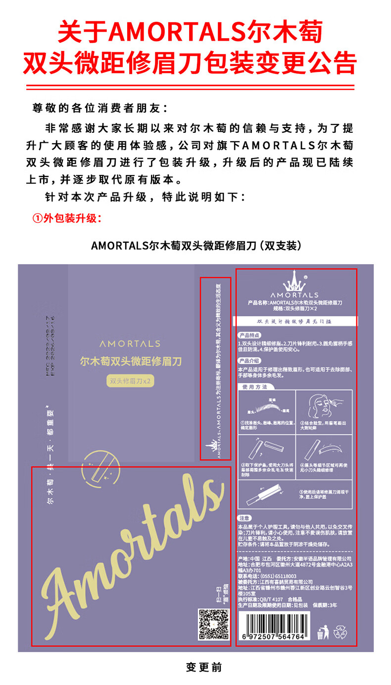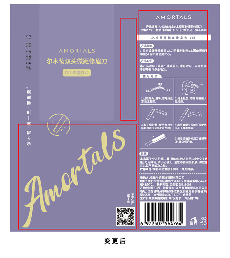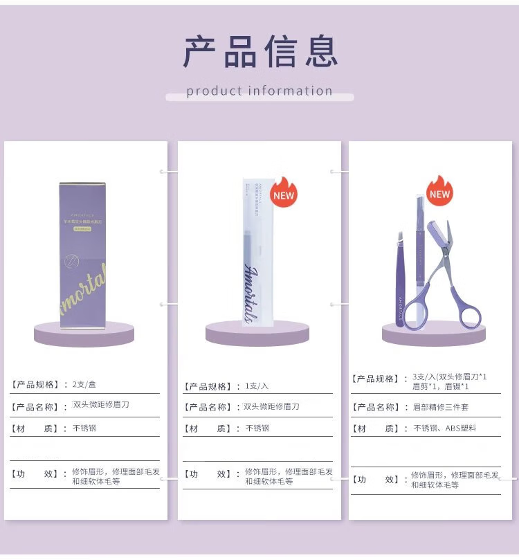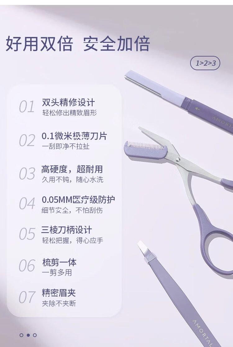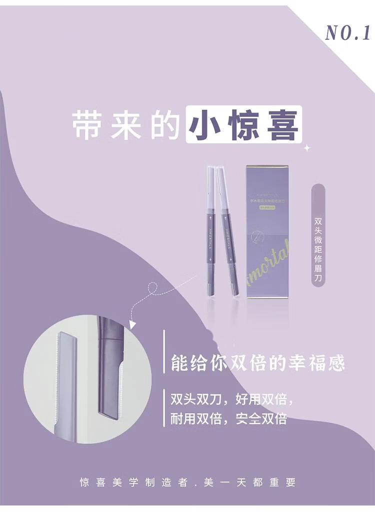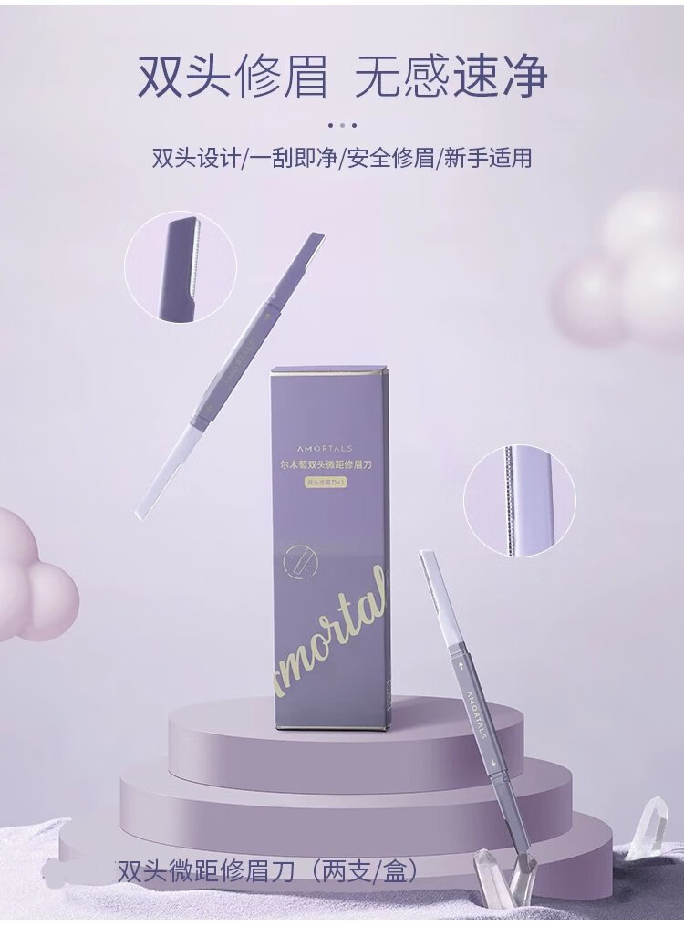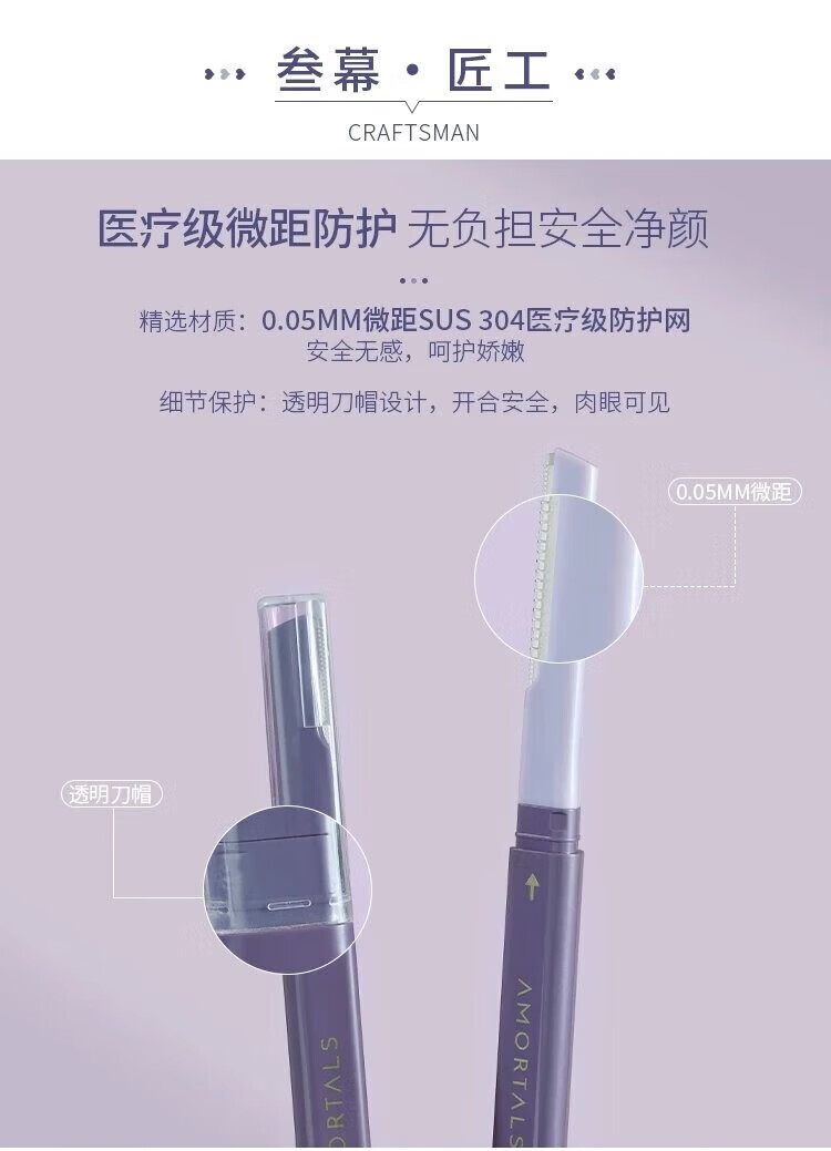 尔木萄(AMORTALS)双头微距修眉刀剃眉刀防护网不易伤肤初学者化妆师用节日礼物