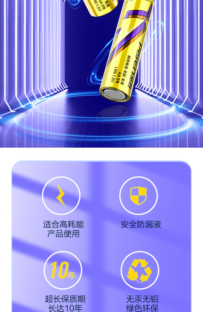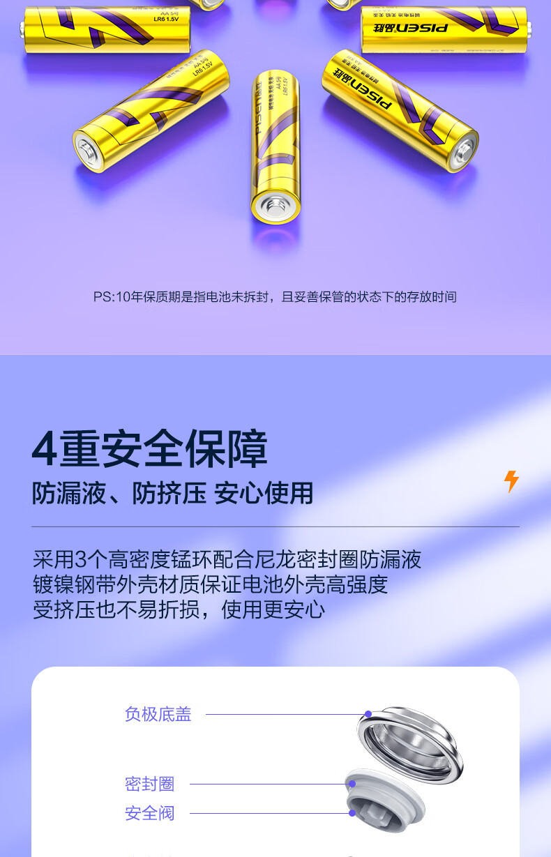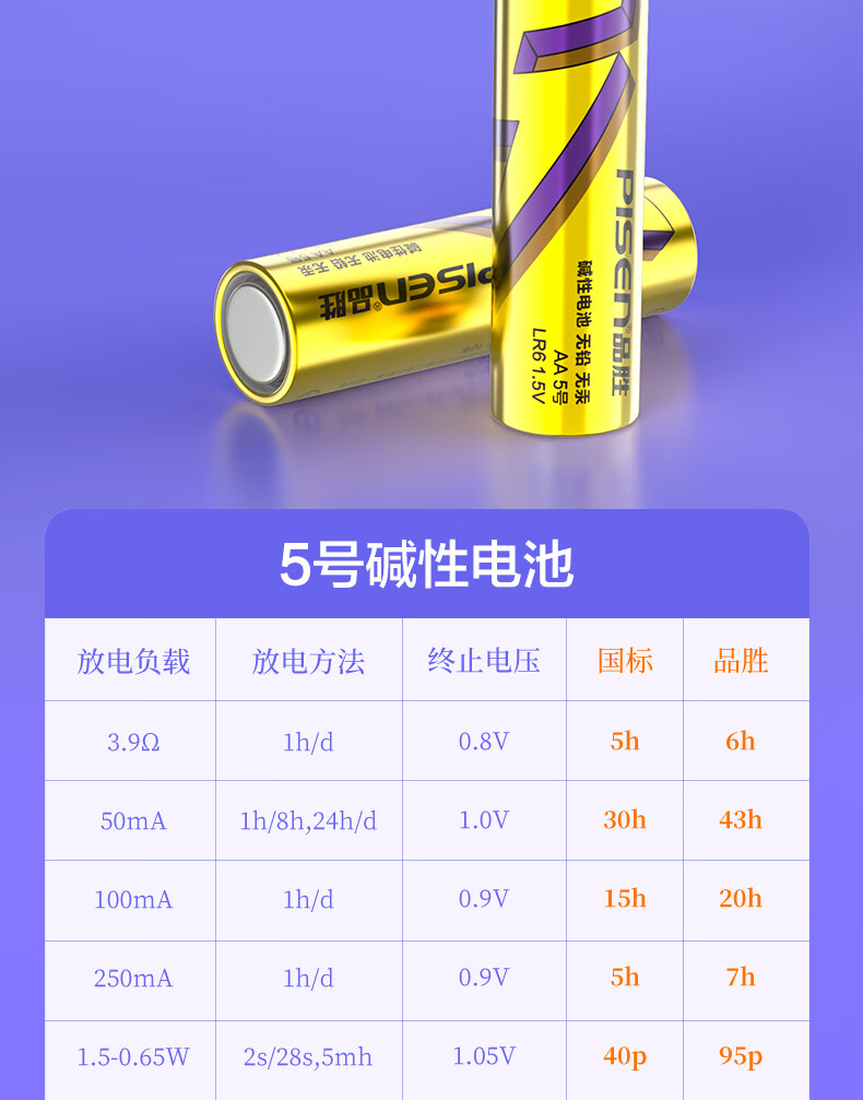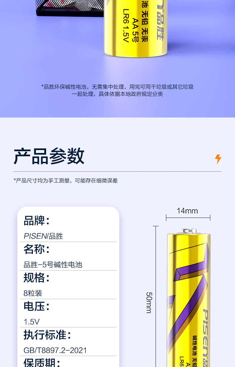 品胜(PISEN)5号电池五号碱性电池8粒装适用耳温枪/儿童玩具/血糖仪/鼠标/遥控器/血压计/挂钟等【单件包邮】