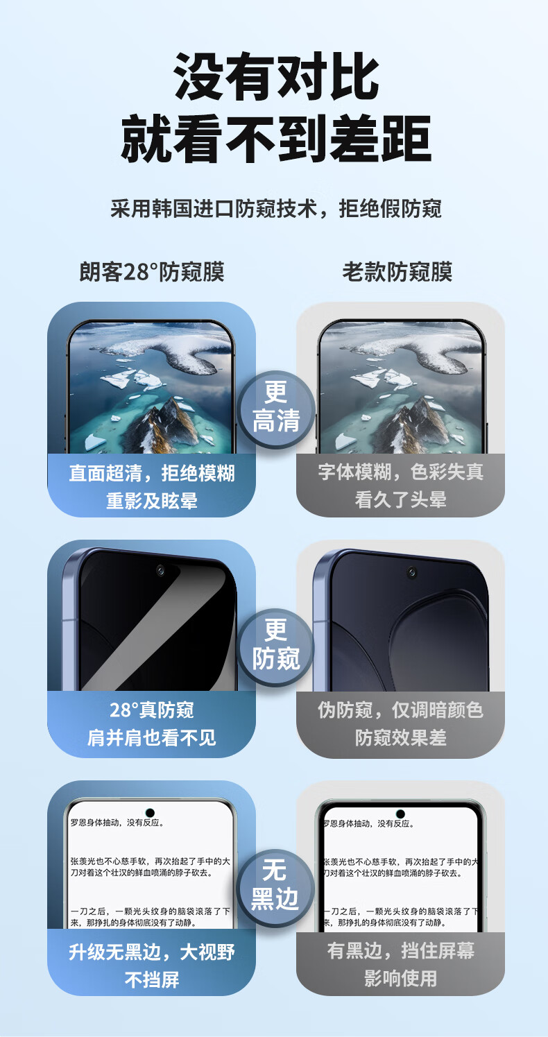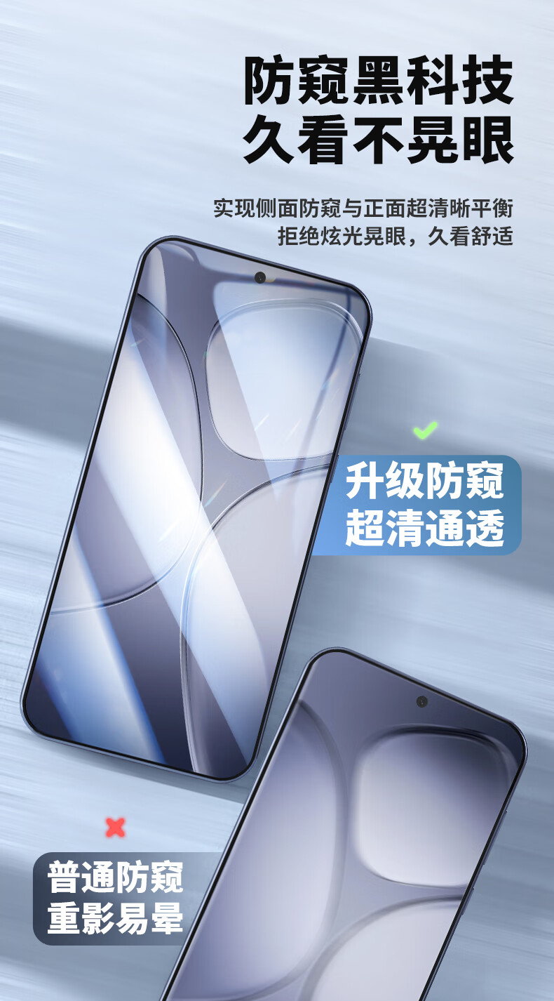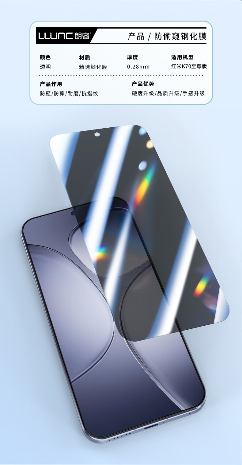 朗客【2片装】 适用红米K70至尊版防窥钢化膜Redmi k70Ultra手机膜28°防窥全屏覆盖防摔保护贴膜