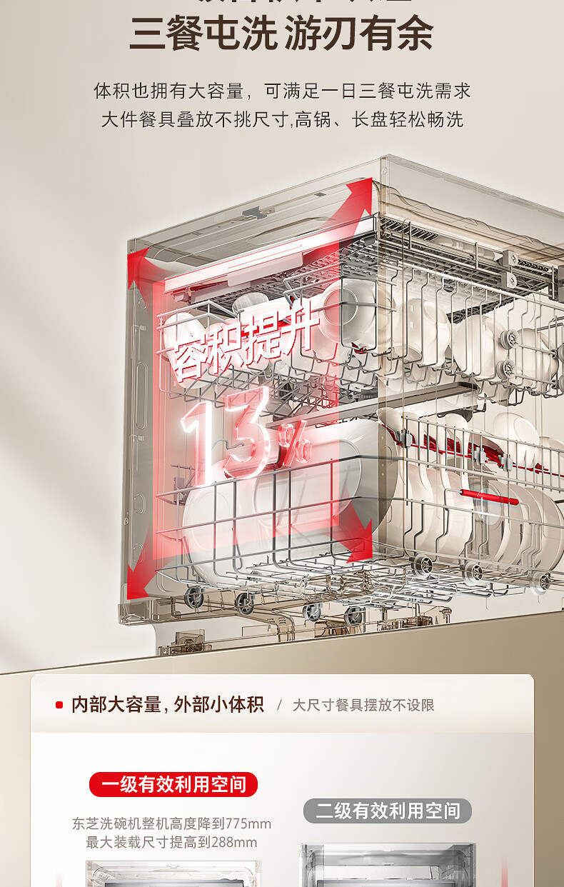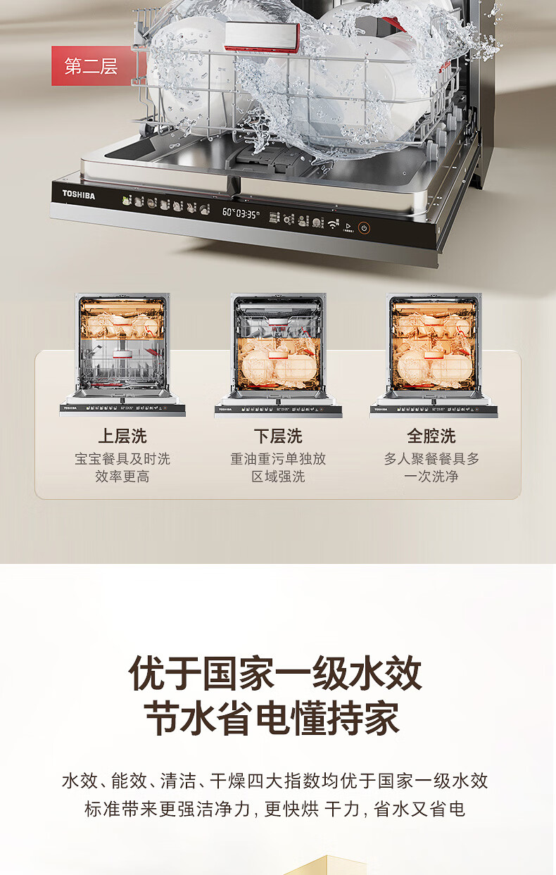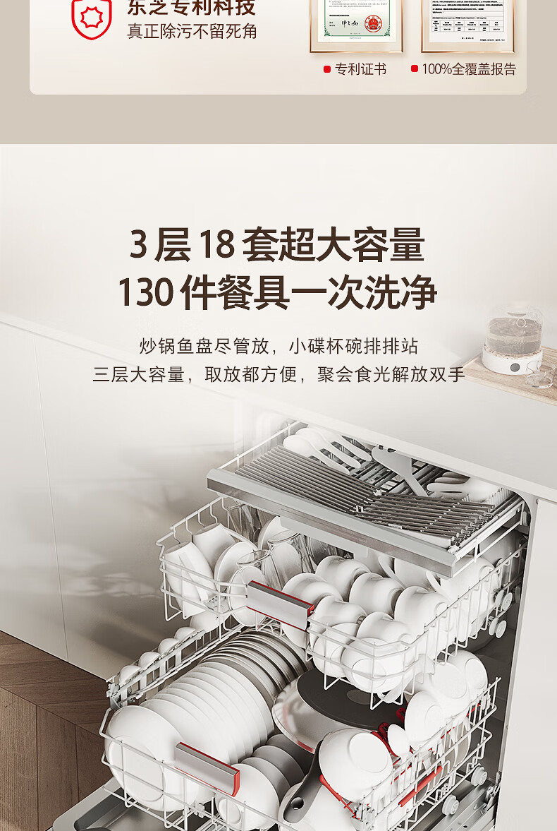 东芝(TOSHIBA)TH0max白玉洗碗机嵌入式家用18套五星消毒 卫星喷臂双变频分层洗105℃热风烘干一体机 【白玉微泡洗】可单消毒+双变频电机
