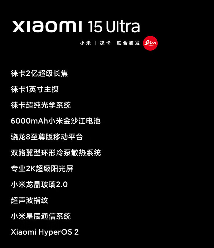 小米(MI)15 Ultra 12+256 经典黑银 徕卡2亿超级长焦 6000mAh小米金沙江电池 小米红米手机【赠话费券】
