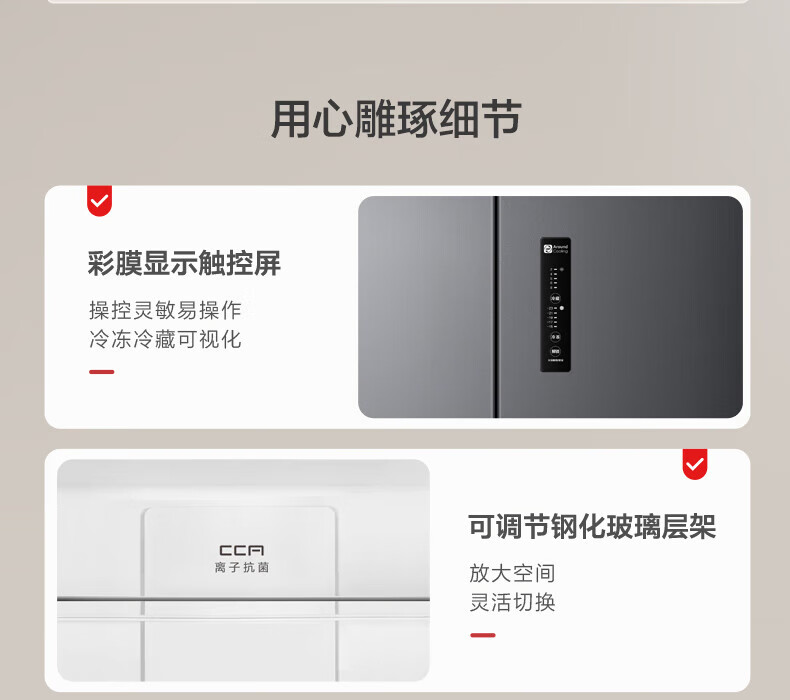 荣事达(Royalstar)【国家补贴20%】215升三门冰箱家用小型大容量三开门 节能低噪租房中门软冷冻超薄低音保鲜电冰箱 72L【一级能效】三天一度电 银色