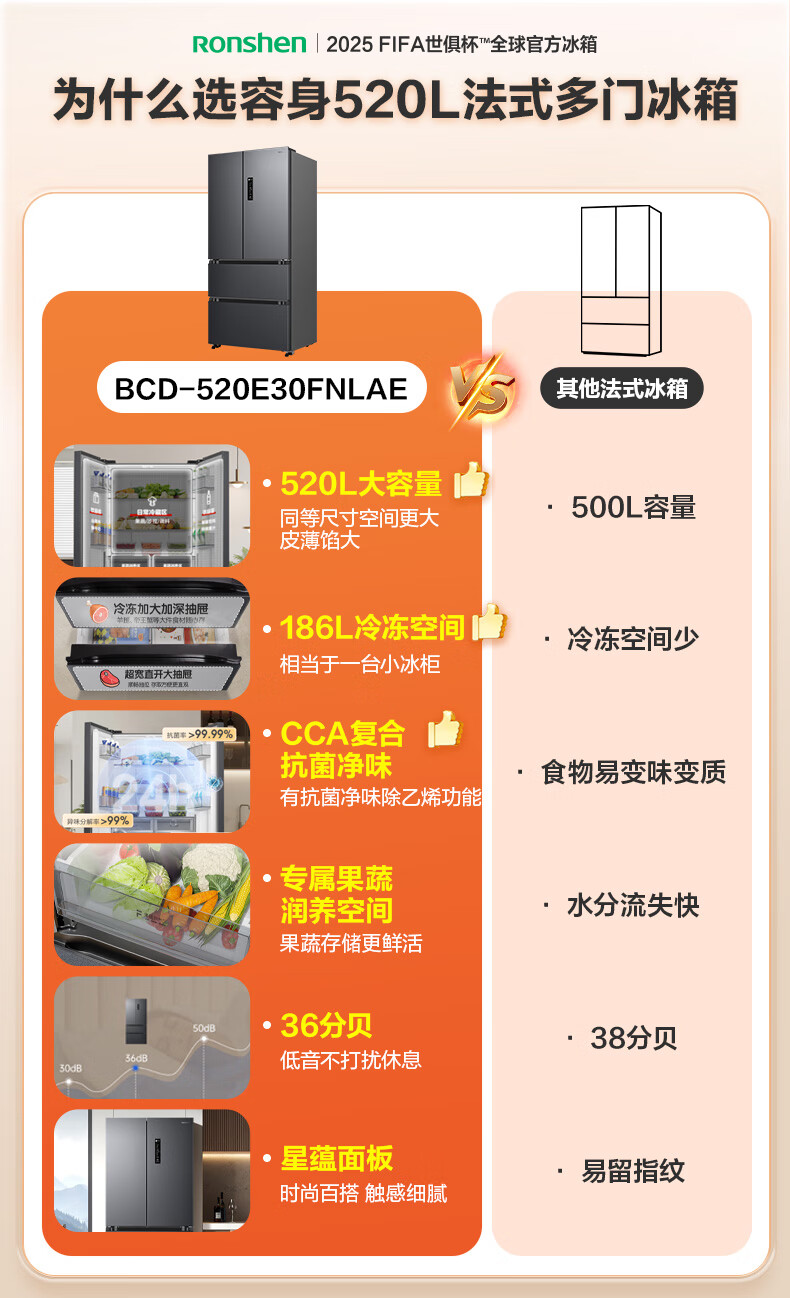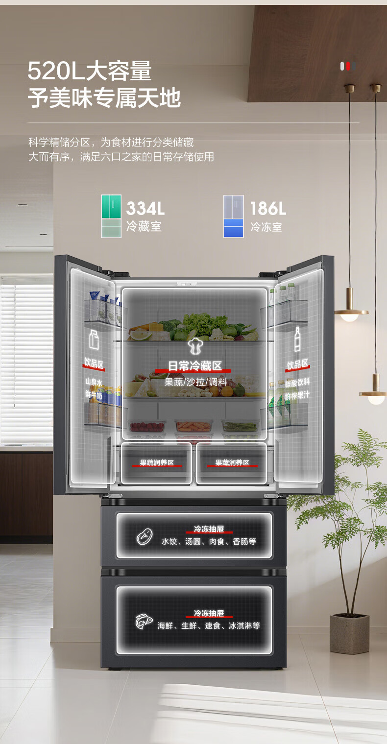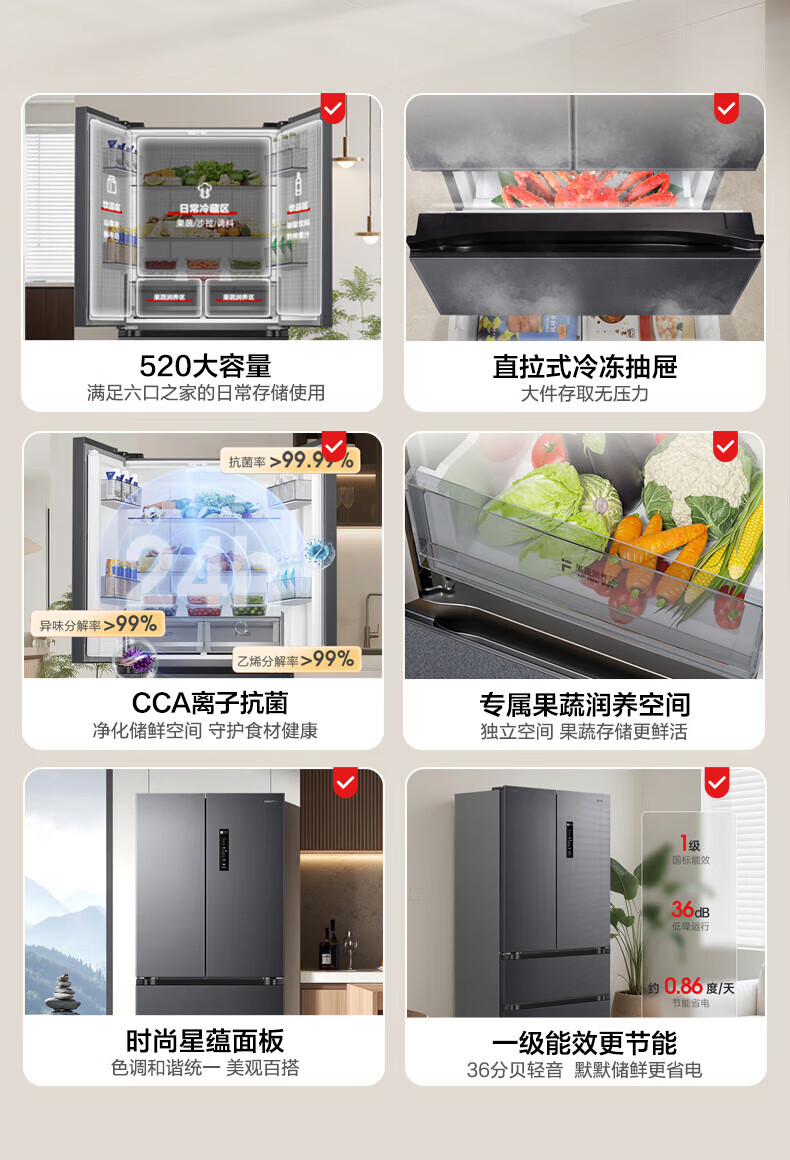 容声520升冰箱法式多门一级能效变频风冷无霜超大容量超薄电冰箱以旧换新BCD-520E30FNLAE国家补贴 520升法式多门冰箱