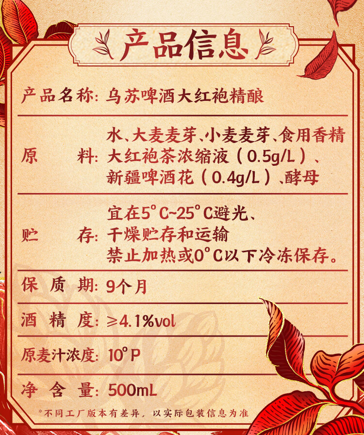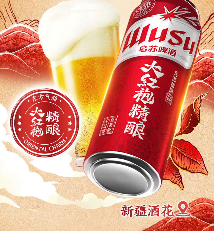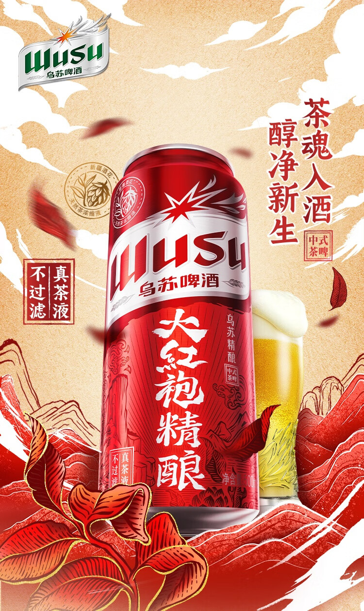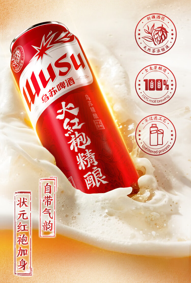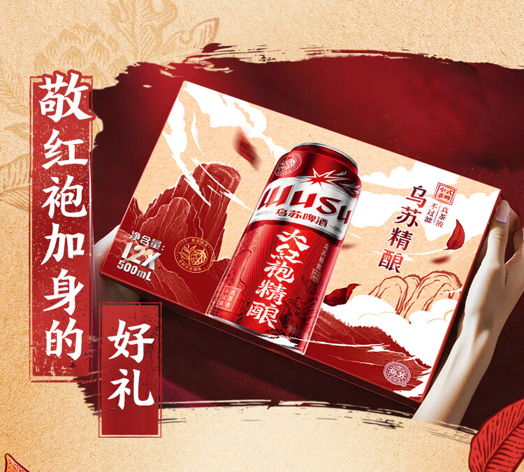 乌苏啤酒(wusu)京东自营大红袍精酿茶啤500ml*12罐整箱装京东自营