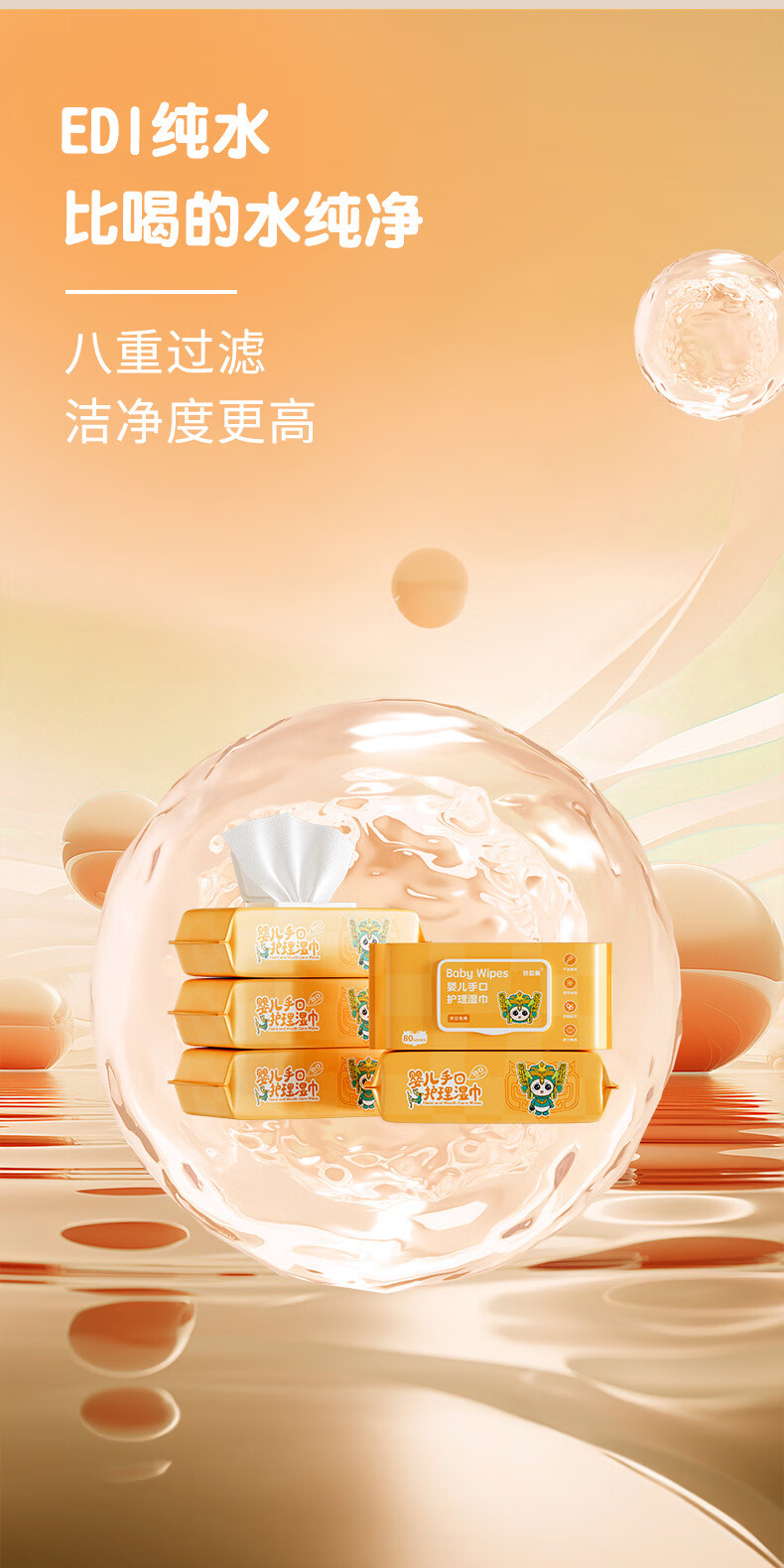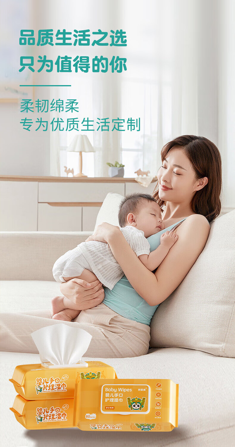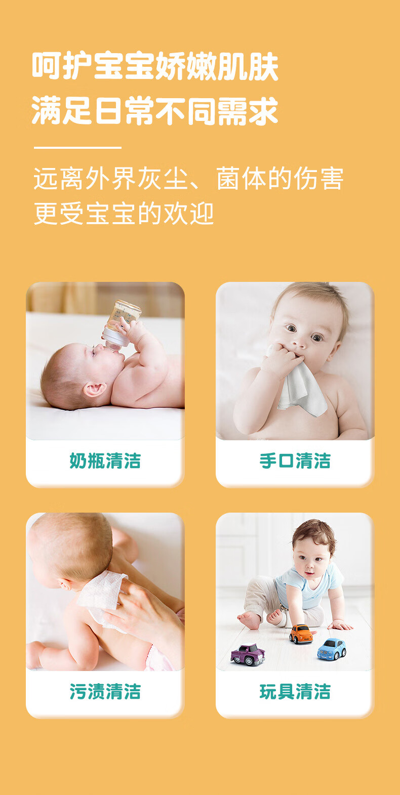 简禾一次性手口湿巾婴儿成人擦脸清洁宝宝湿巾儿童学生湿巾纸便捷 常规款 60抽*3包 小黄湿巾