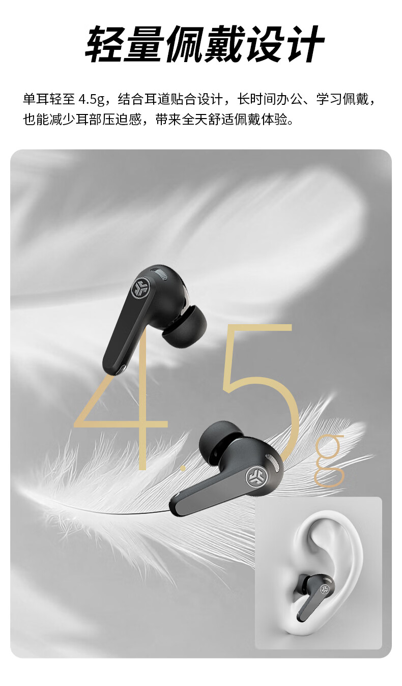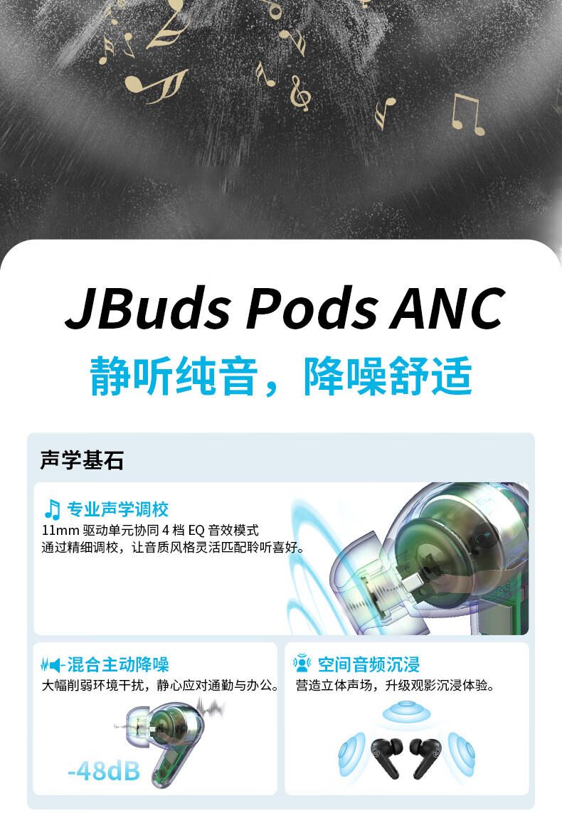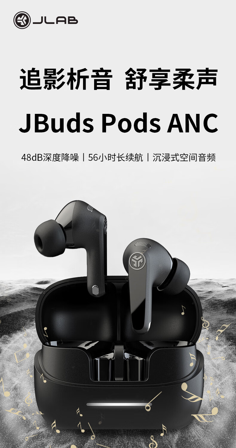 JLab JBuds Pods ANC 真无线降噪蓝牙耳机游戏音乐入耳式超长续航 适用于安卓苹果 礼物 曜石黑