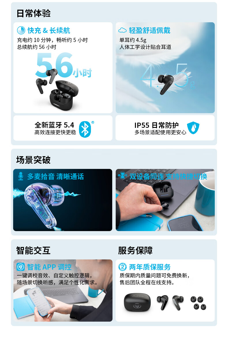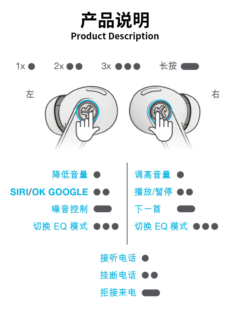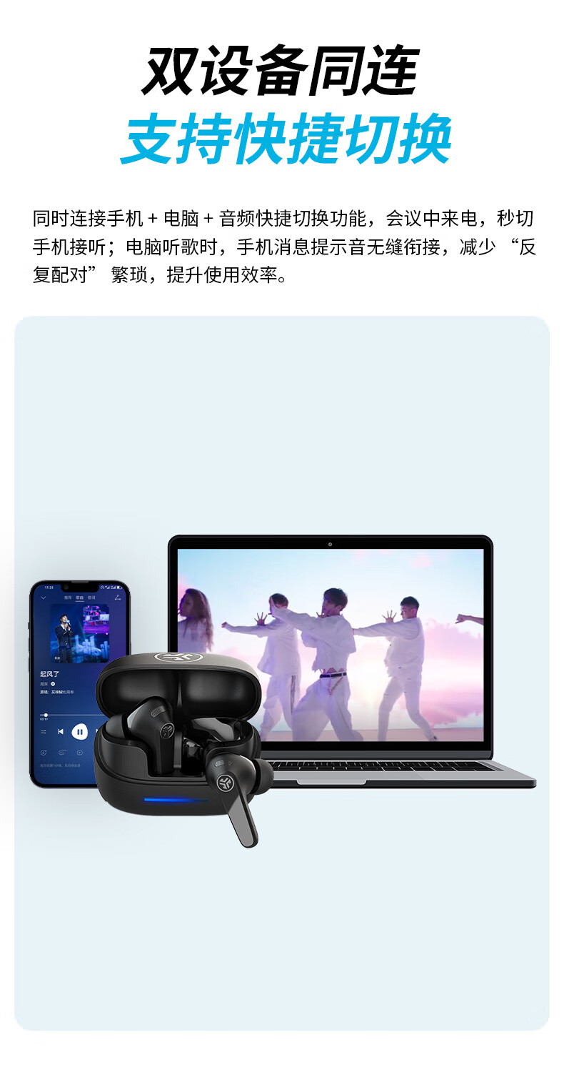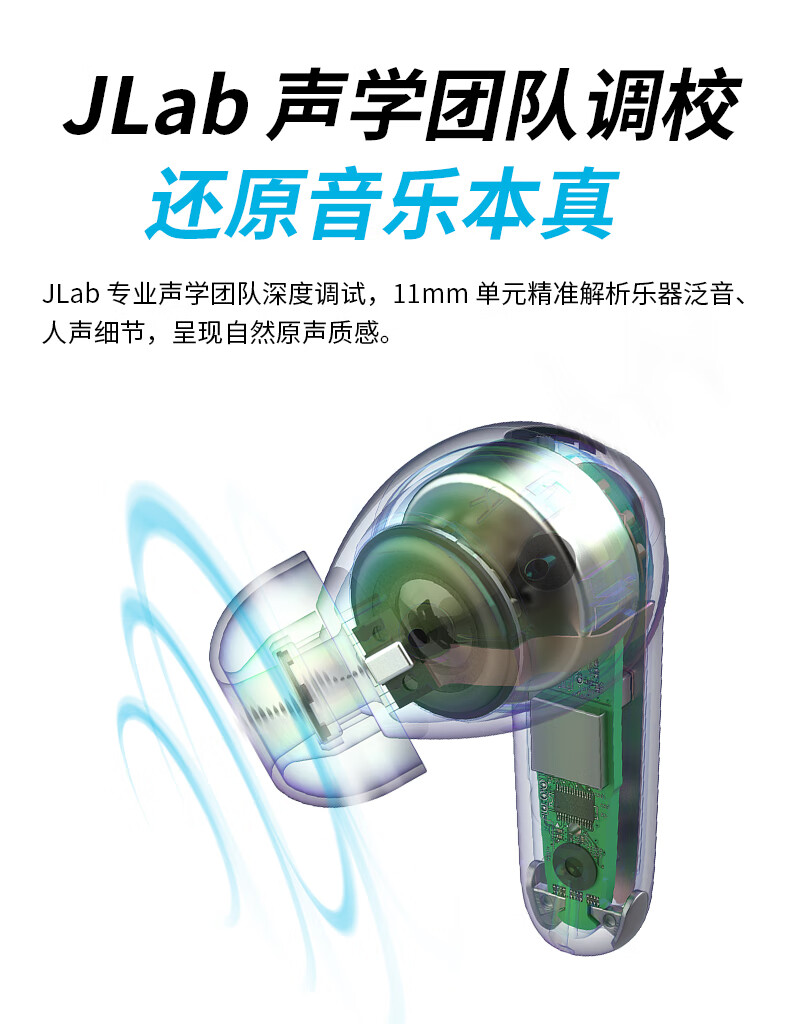 JLab JBuds Pods ANC 真无线降噪蓝牙耳机游戏音乐入耳式超长续航 适用于安卓苹果 礼物 曜石黑