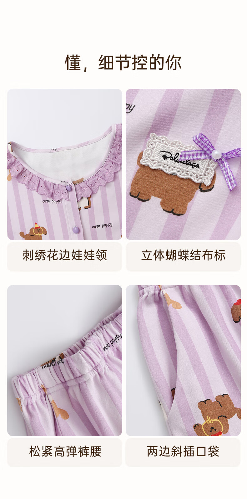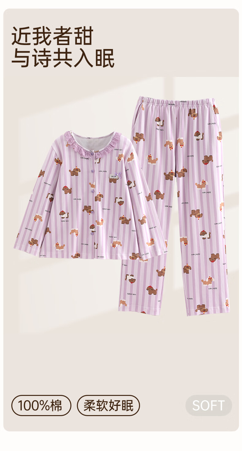 玛伦萨纯棉睡衣女2025新款春秋季长袖长裤大码女士家居服套装外穿 萌粉 M