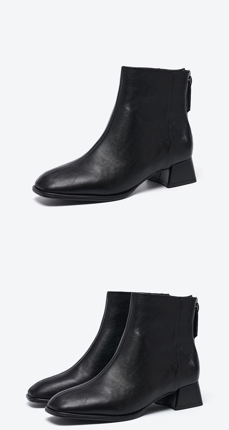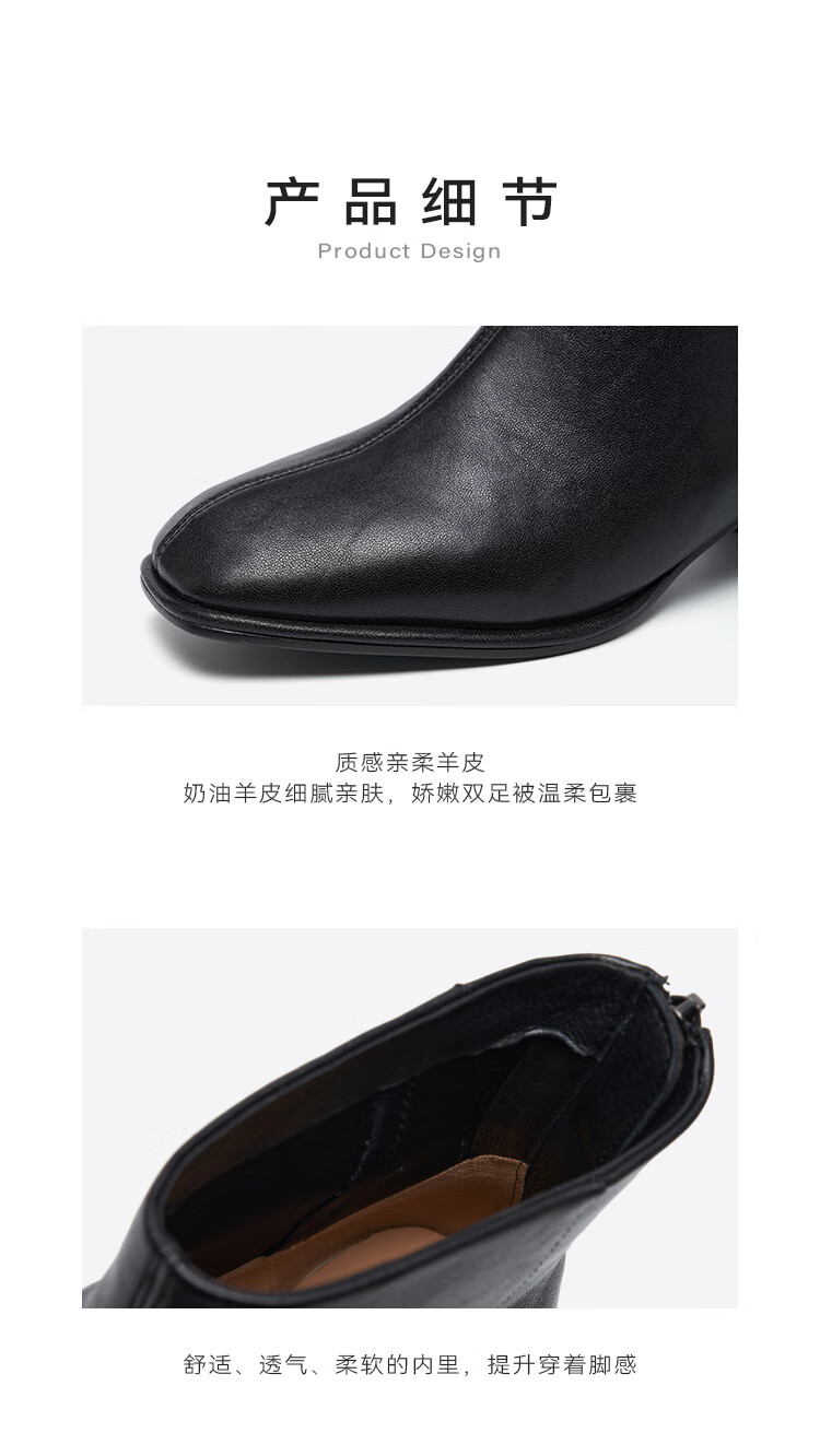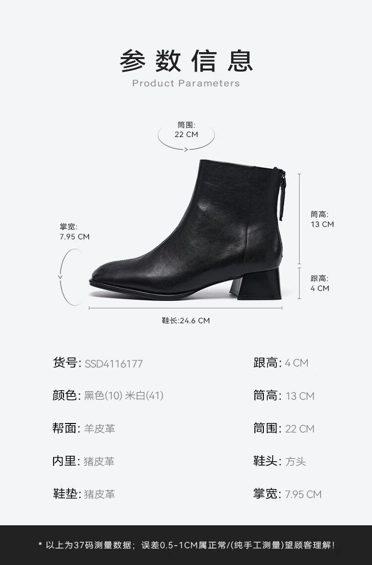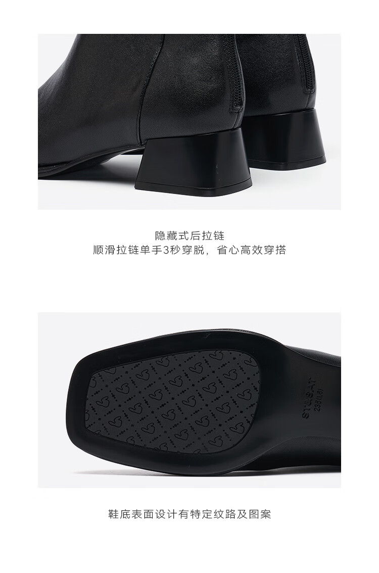 St&Sat星期六短靴女2025冬季新款保暖时装靴厚底休闲舒适靴子SSD4116177 黑色 34