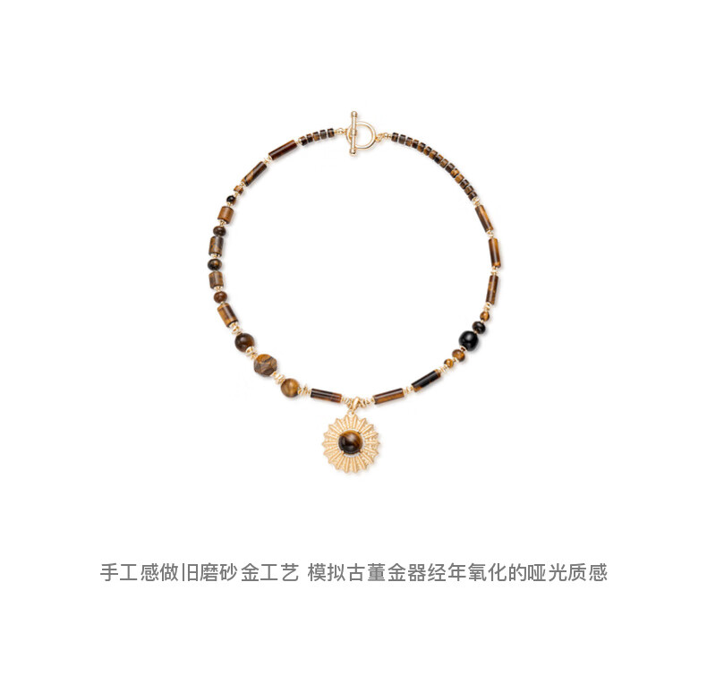 lost in echo马君妍同款2025早秋新款异域复古虎眼石玛瑙吊坠锁骨项链 虎眼石 42cm