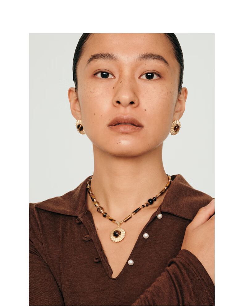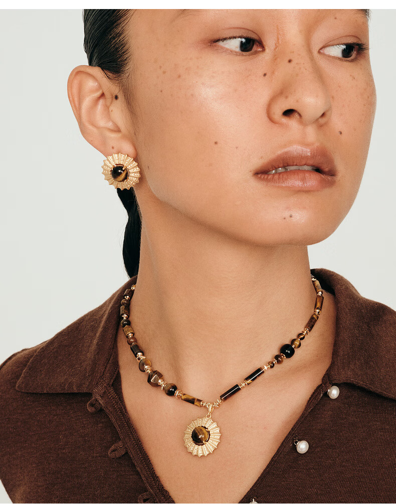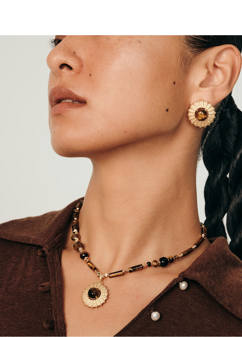 lost in echo送女友2025早秋新款异域独特复古太阳珍珠耳钉耳饰 虎眼石 2个