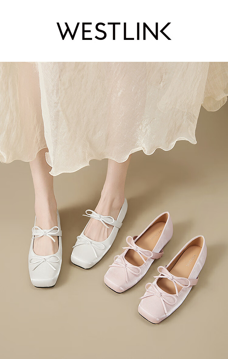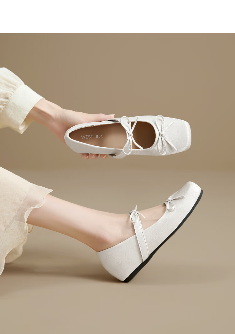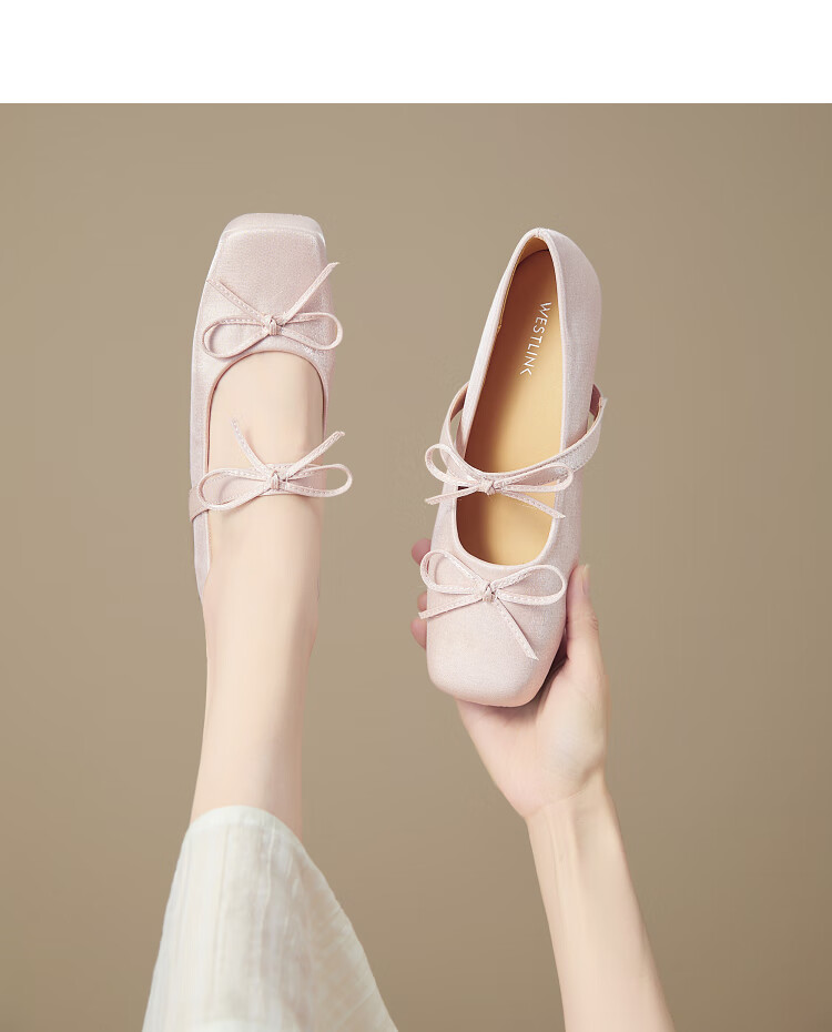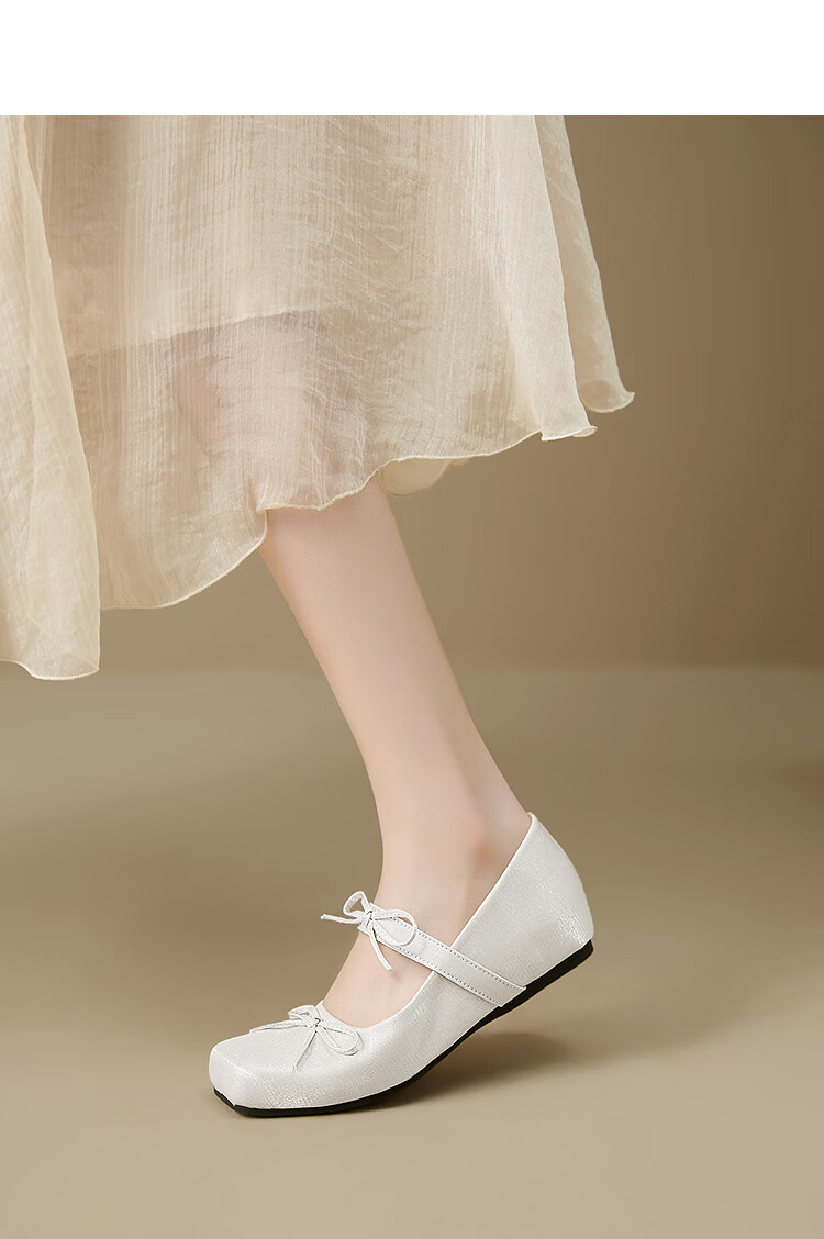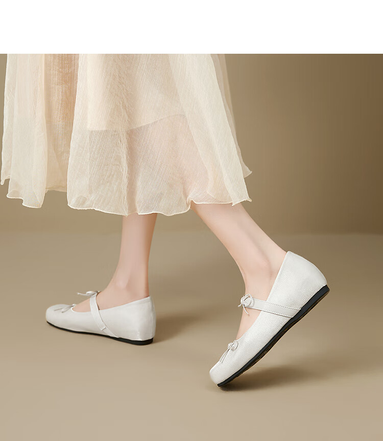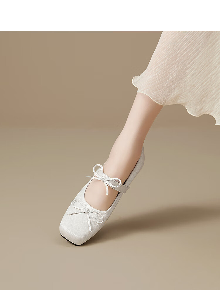 西遇内增高芭蕾鞋女2025新款秋季法式绝美蝴蝶结玛丽珍鞋软底单鞋 米色 39 (245)